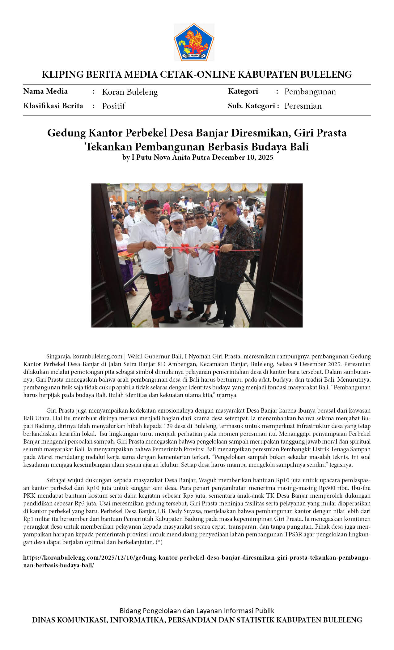 Kliping Kategori Pembangunan Edisi 11 Desember 2025