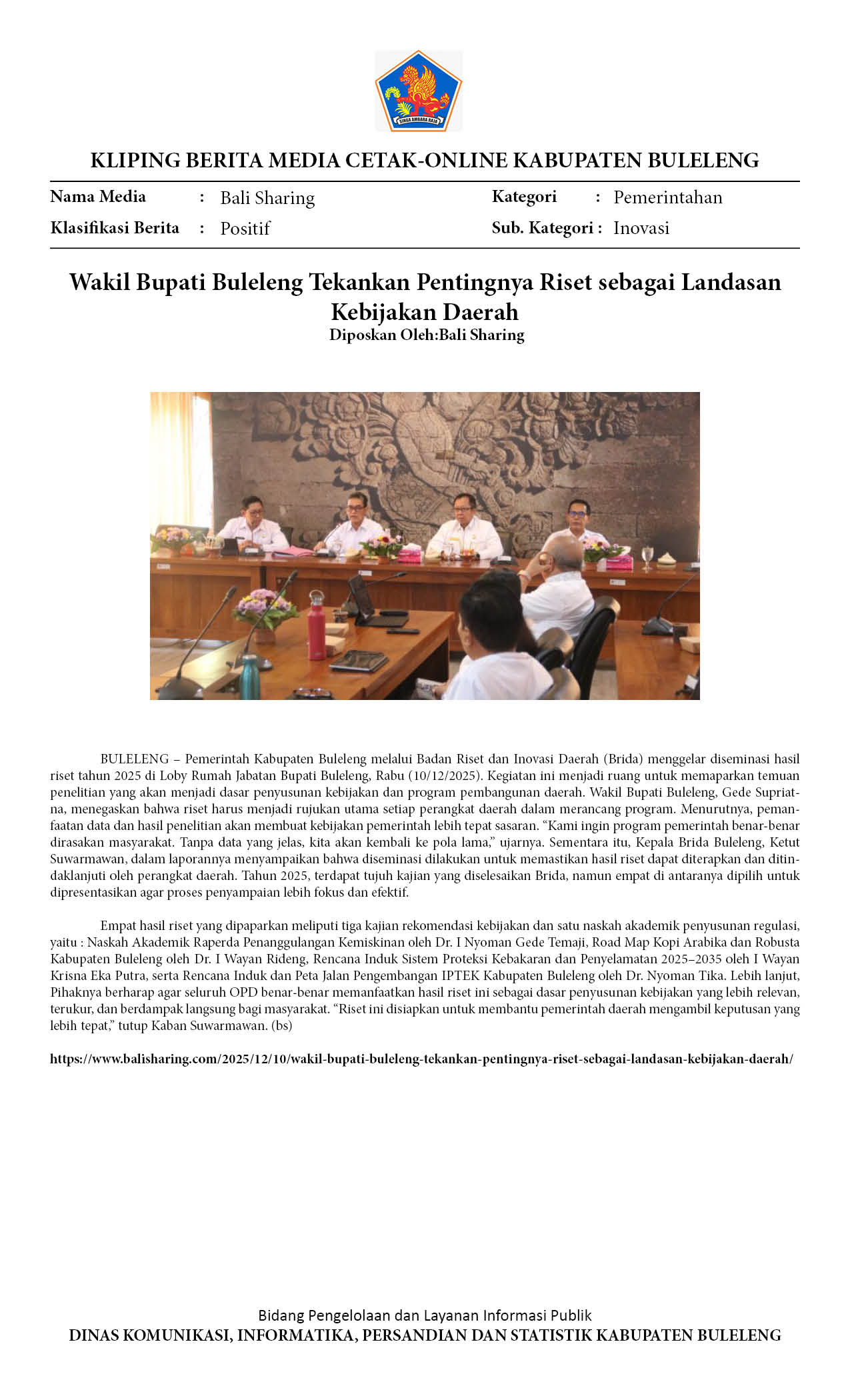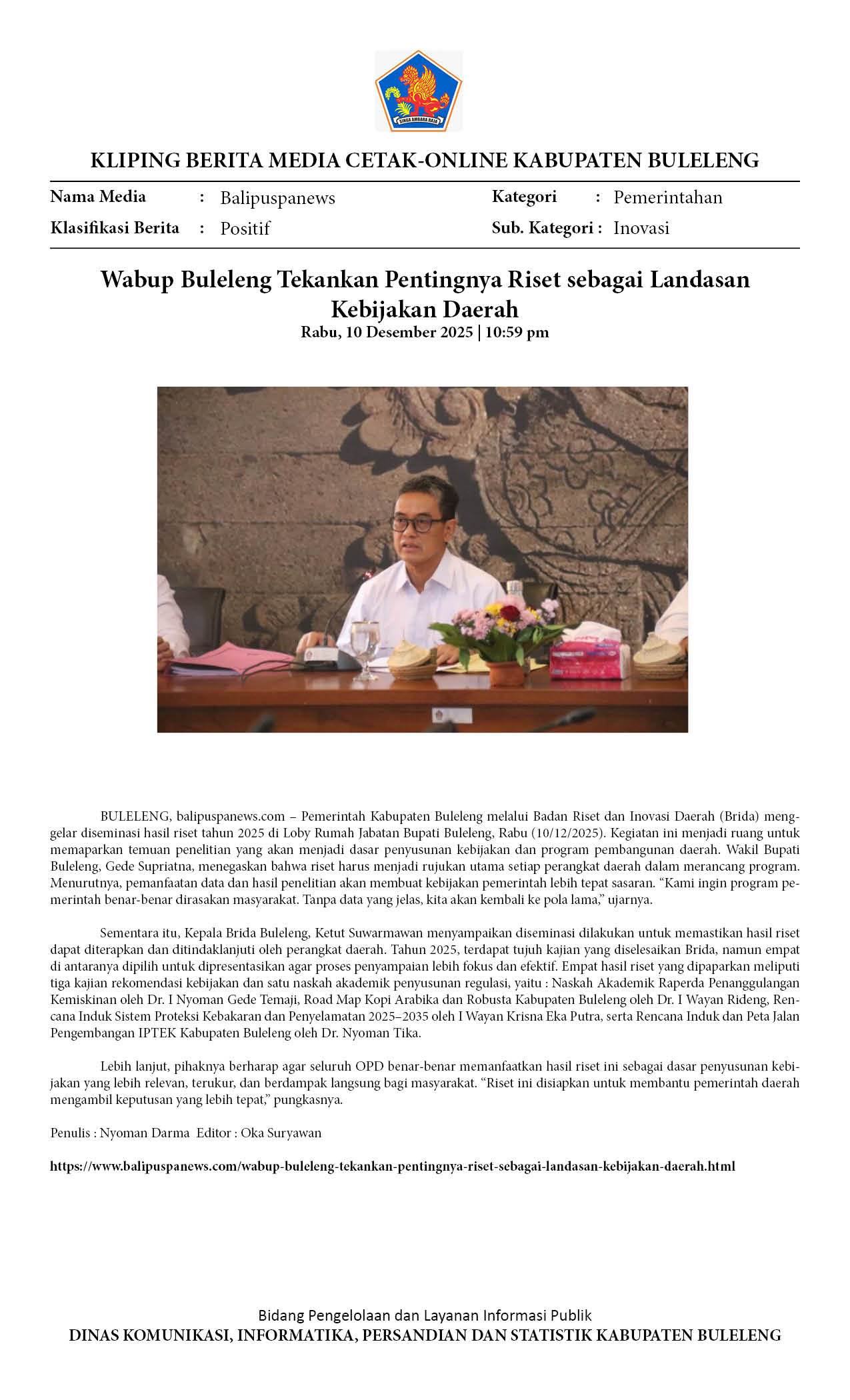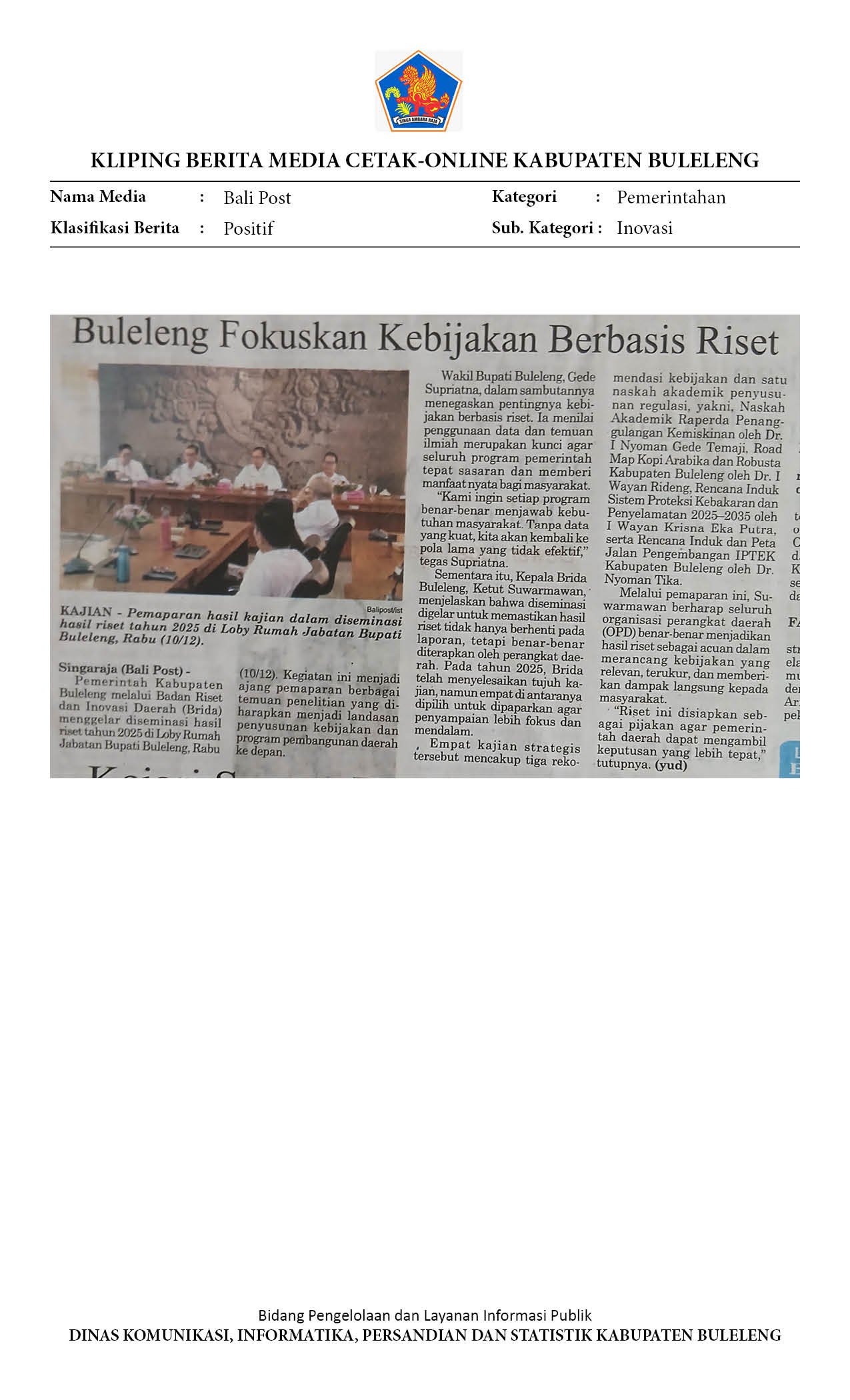 BULELENG FOKUSKAN KEBIJAKAN BERBASIS RISET