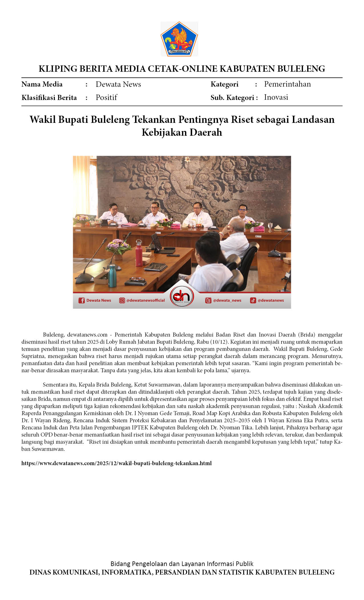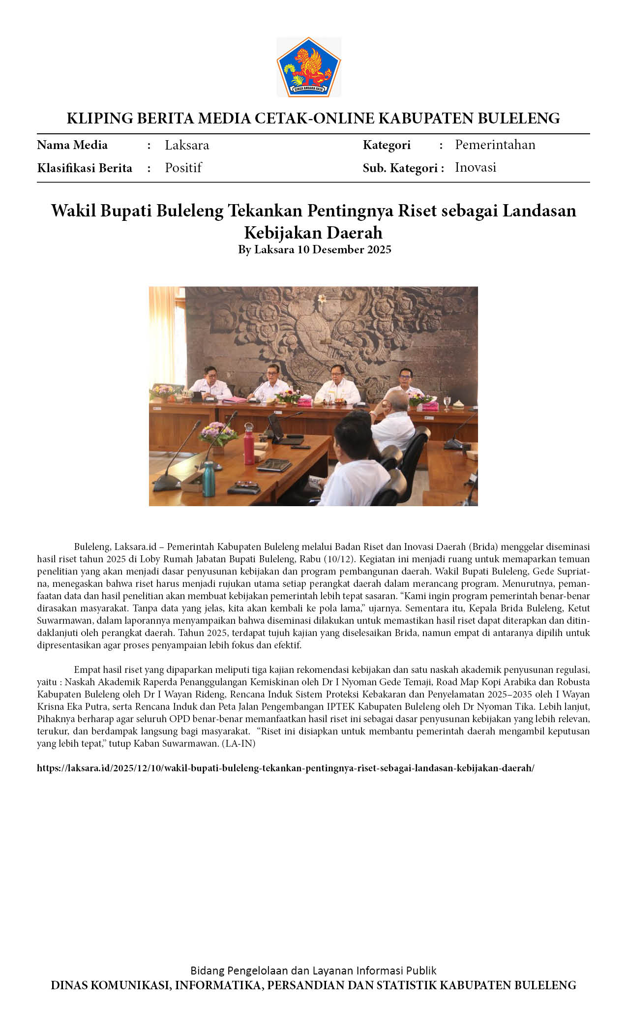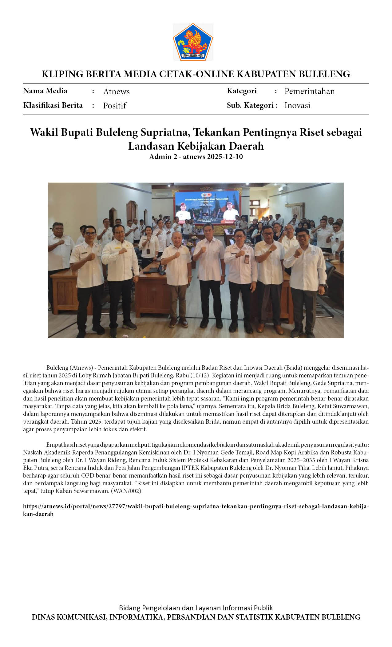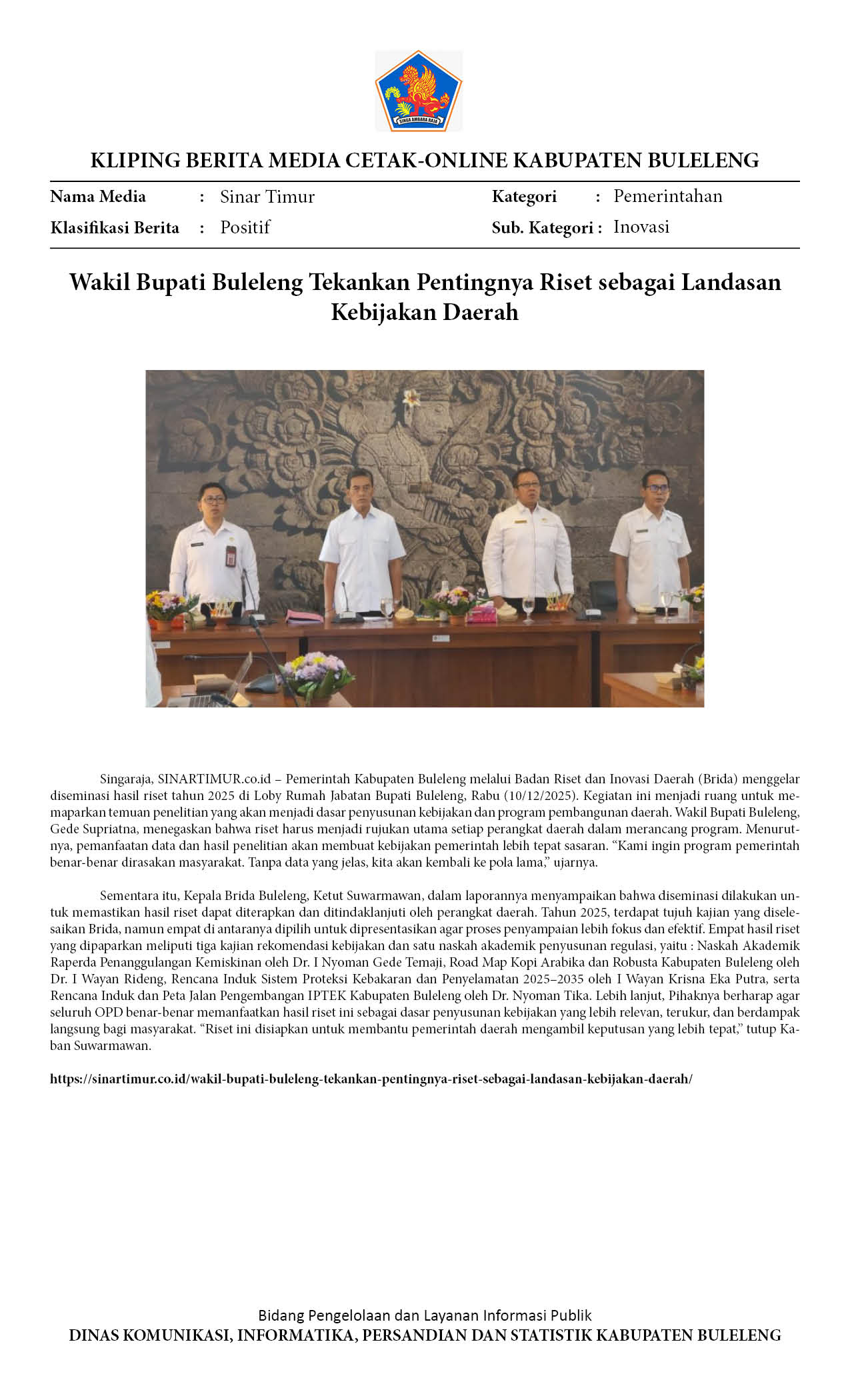 BULELENG FOKUSKAN KEBIJAKAN BERBASIS RISET