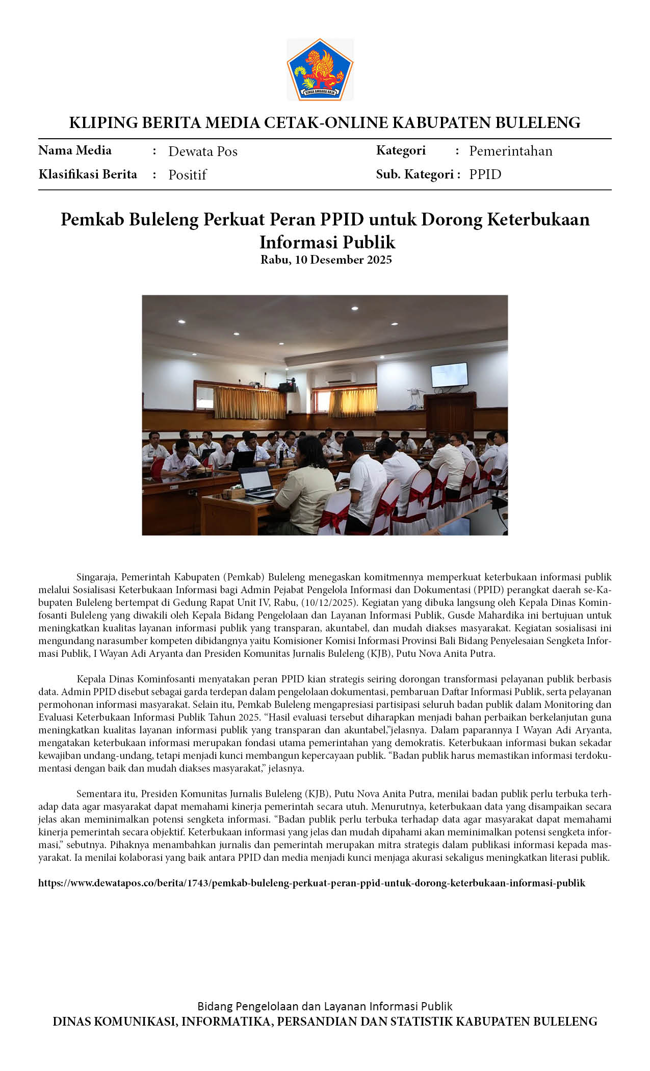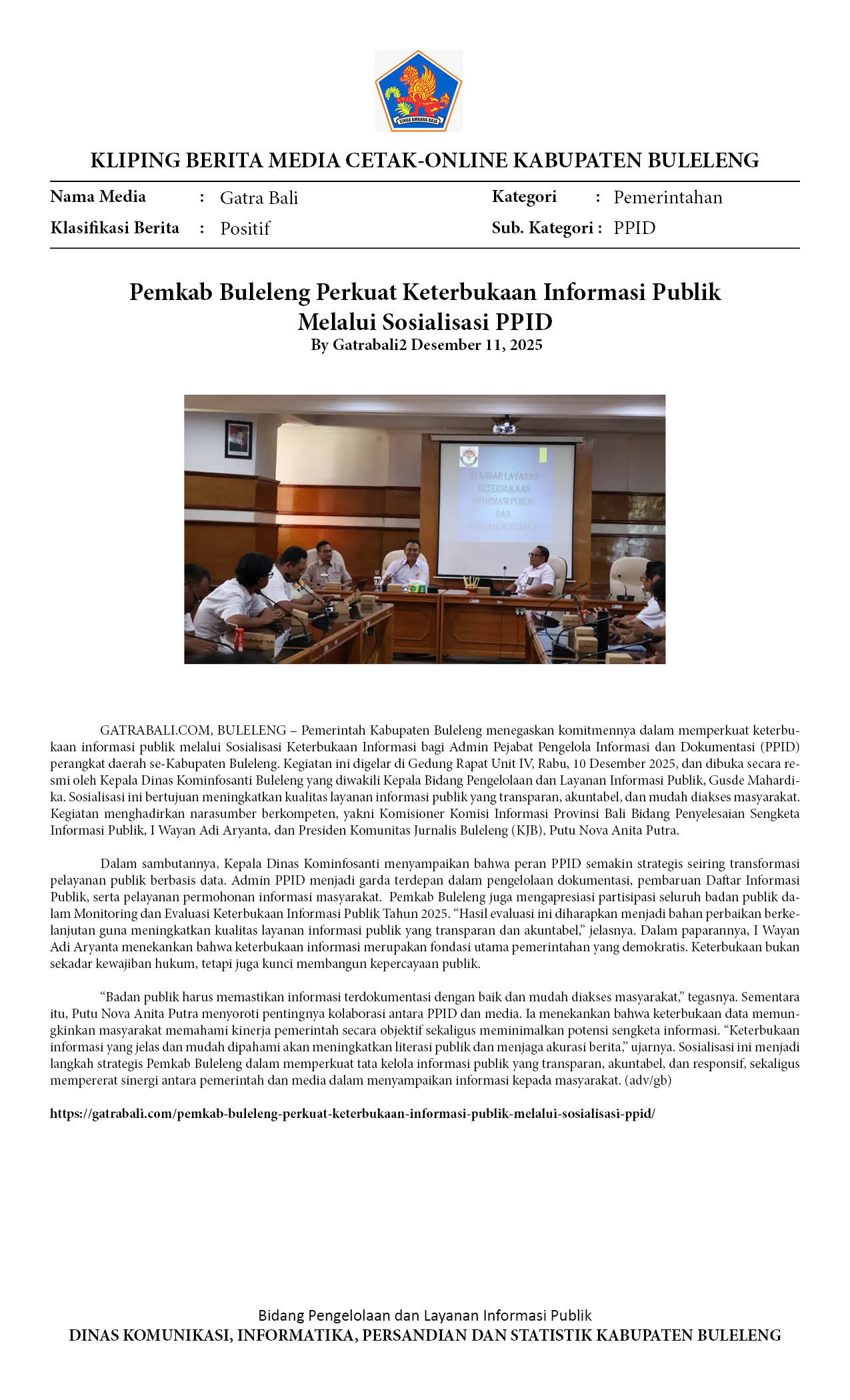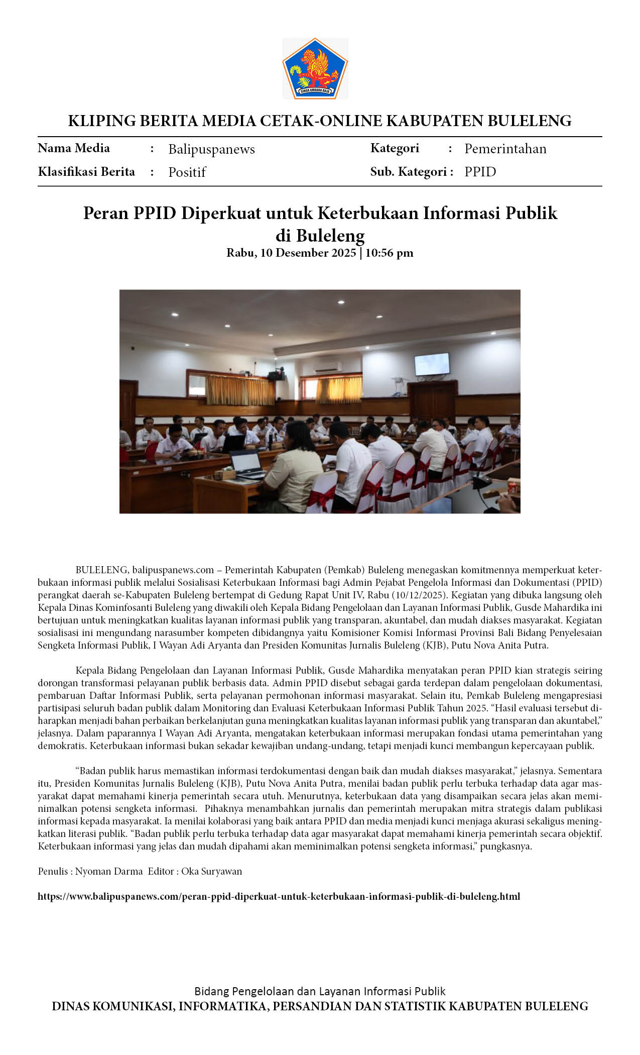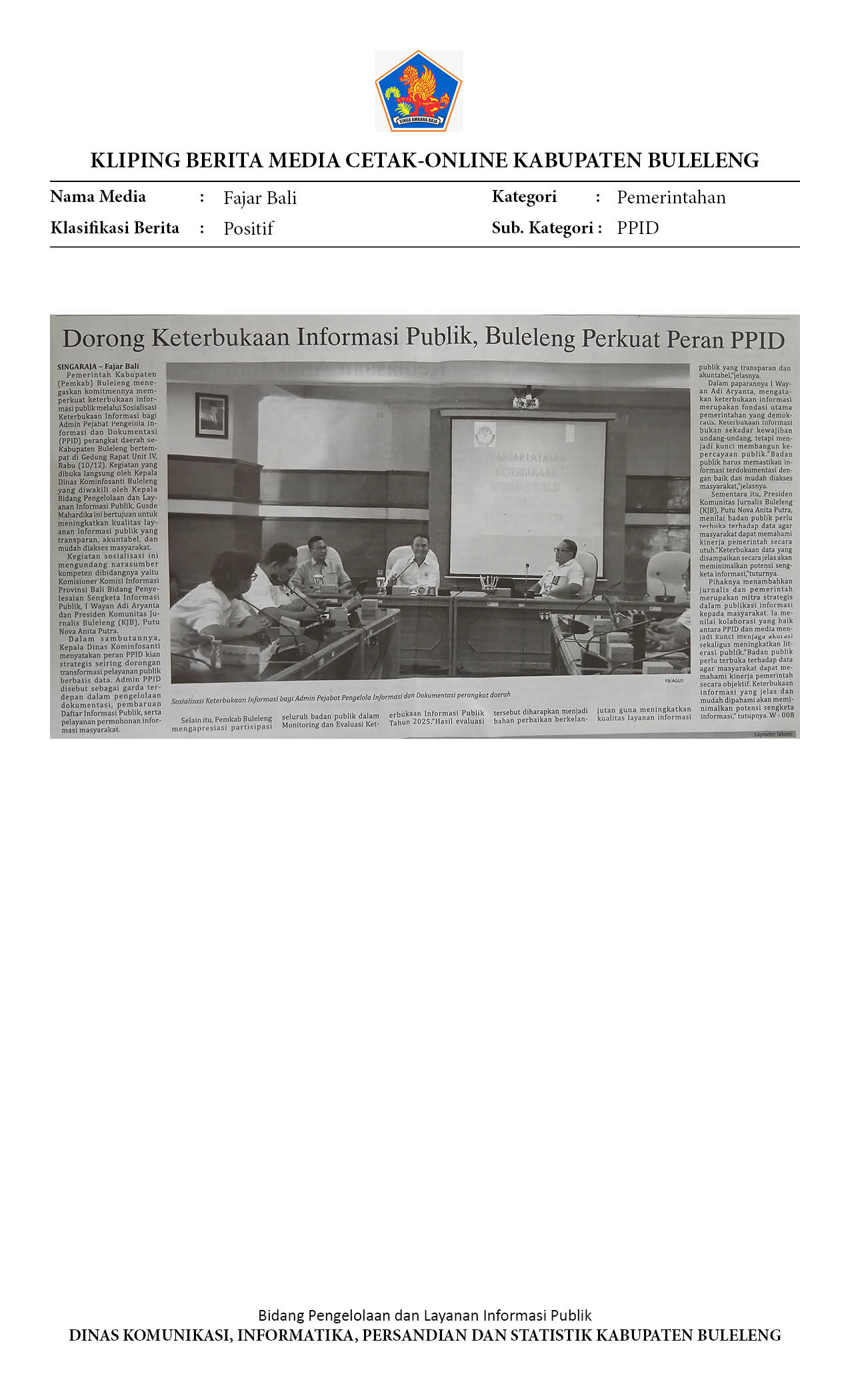 PERAN PPID DIPERKUAT UNTUK KETERBUKAAN INFORMASI PUBLIK DI BULELENG
