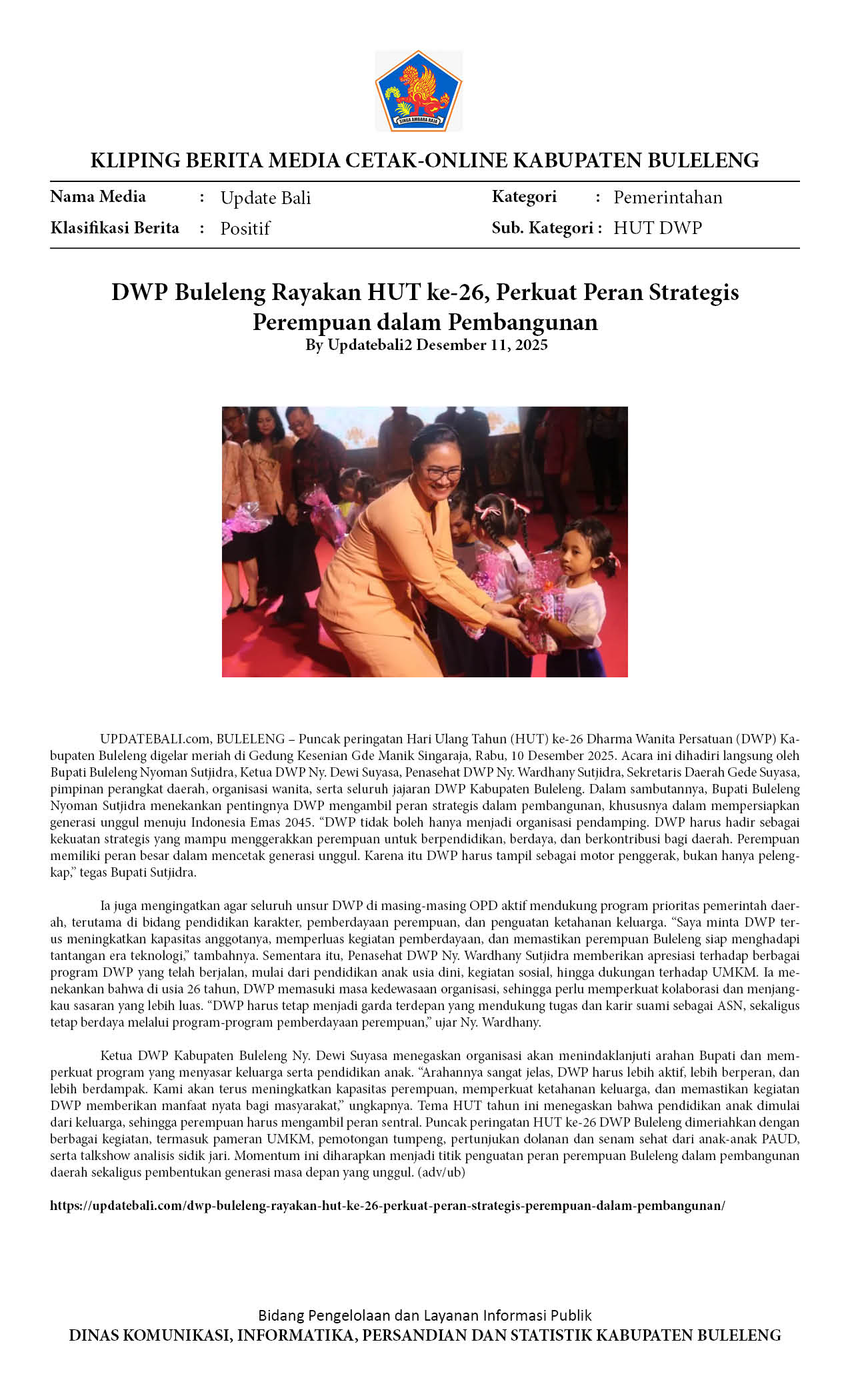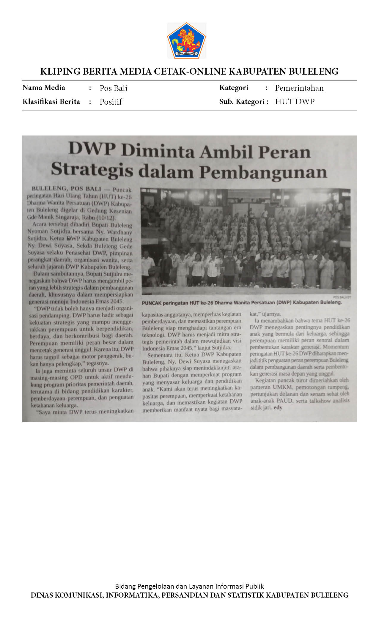 DWP BULELENG RAYAKAN HUT KE-26, PERKUAT PERAN STRATEGIS PEREMPUAN DALAM PEMBANGUNAN