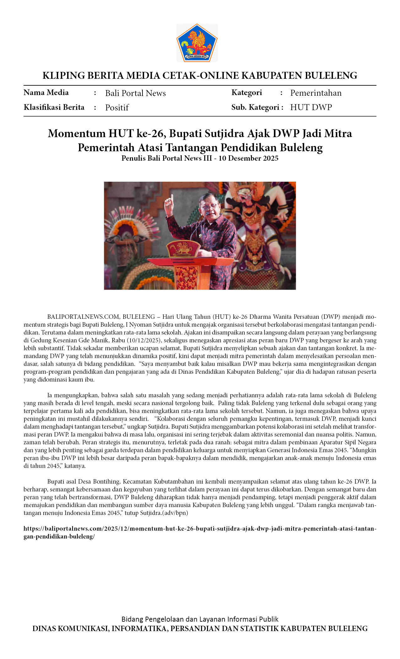 Kliping Kategori Pemerintahan Edisi 11 Desember 2025