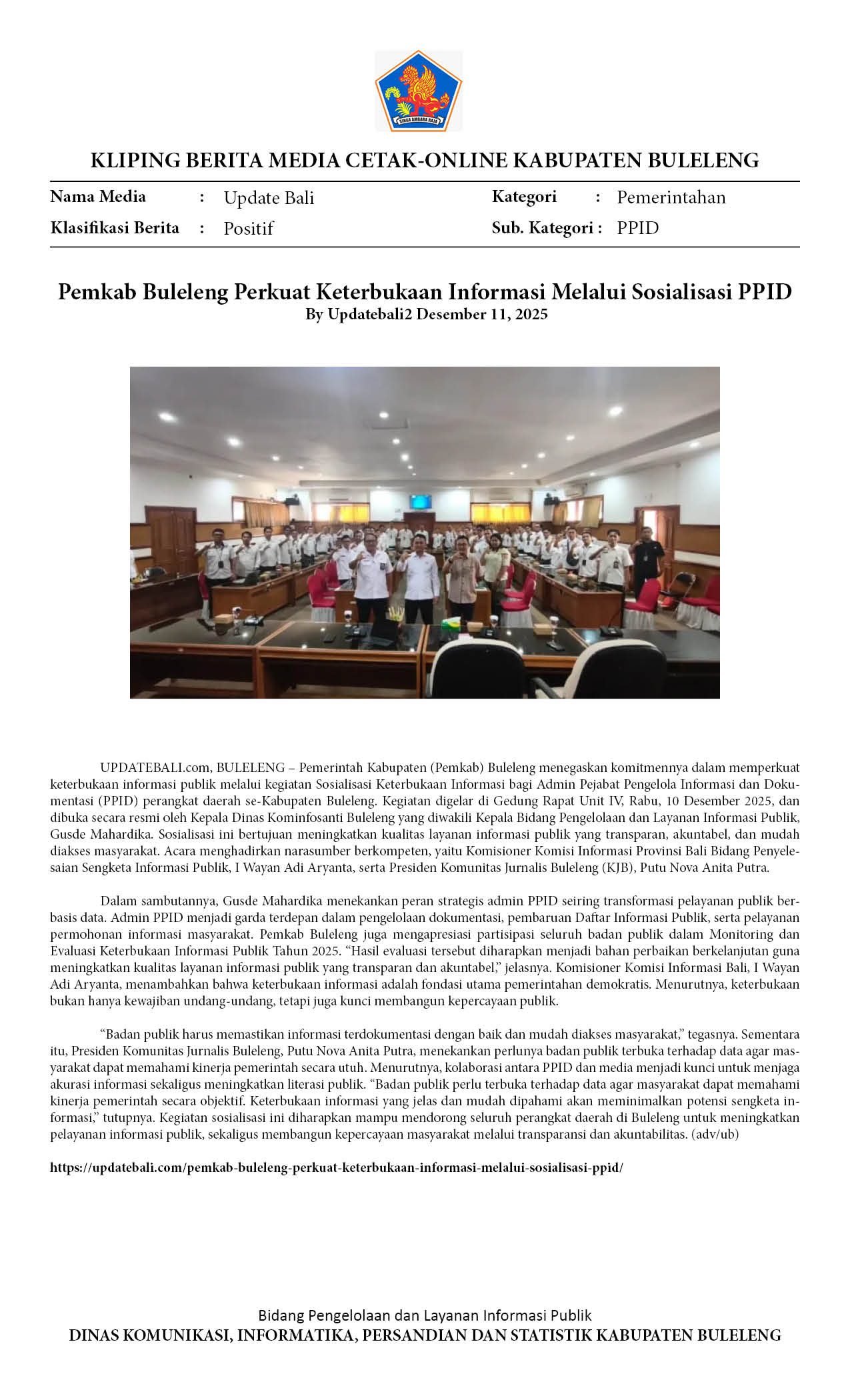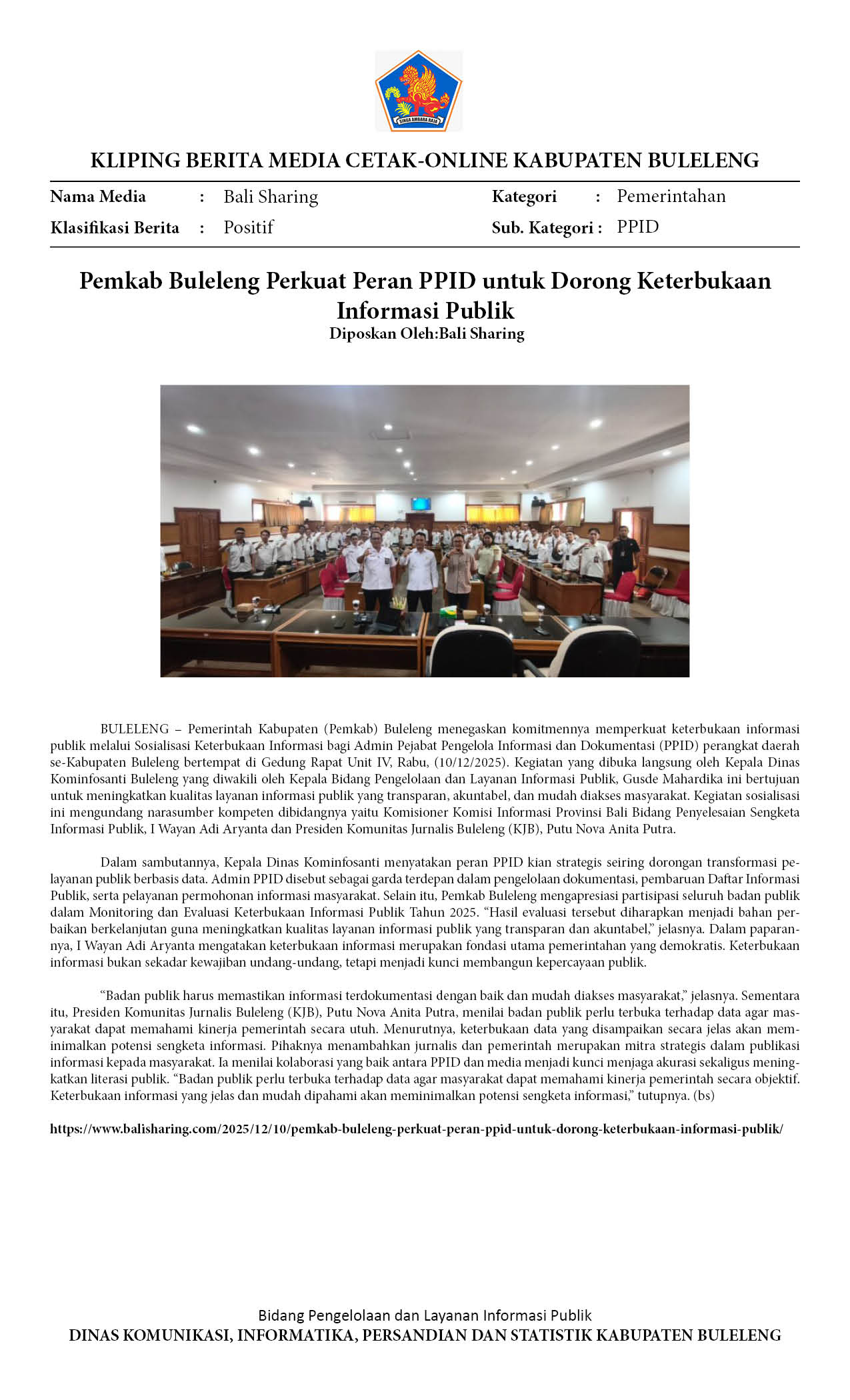 PEMKAB BULELENG PERKUAT KETERBUKAAN INFORMASI PUBLIK MELALUI SOSIALISASI PPID