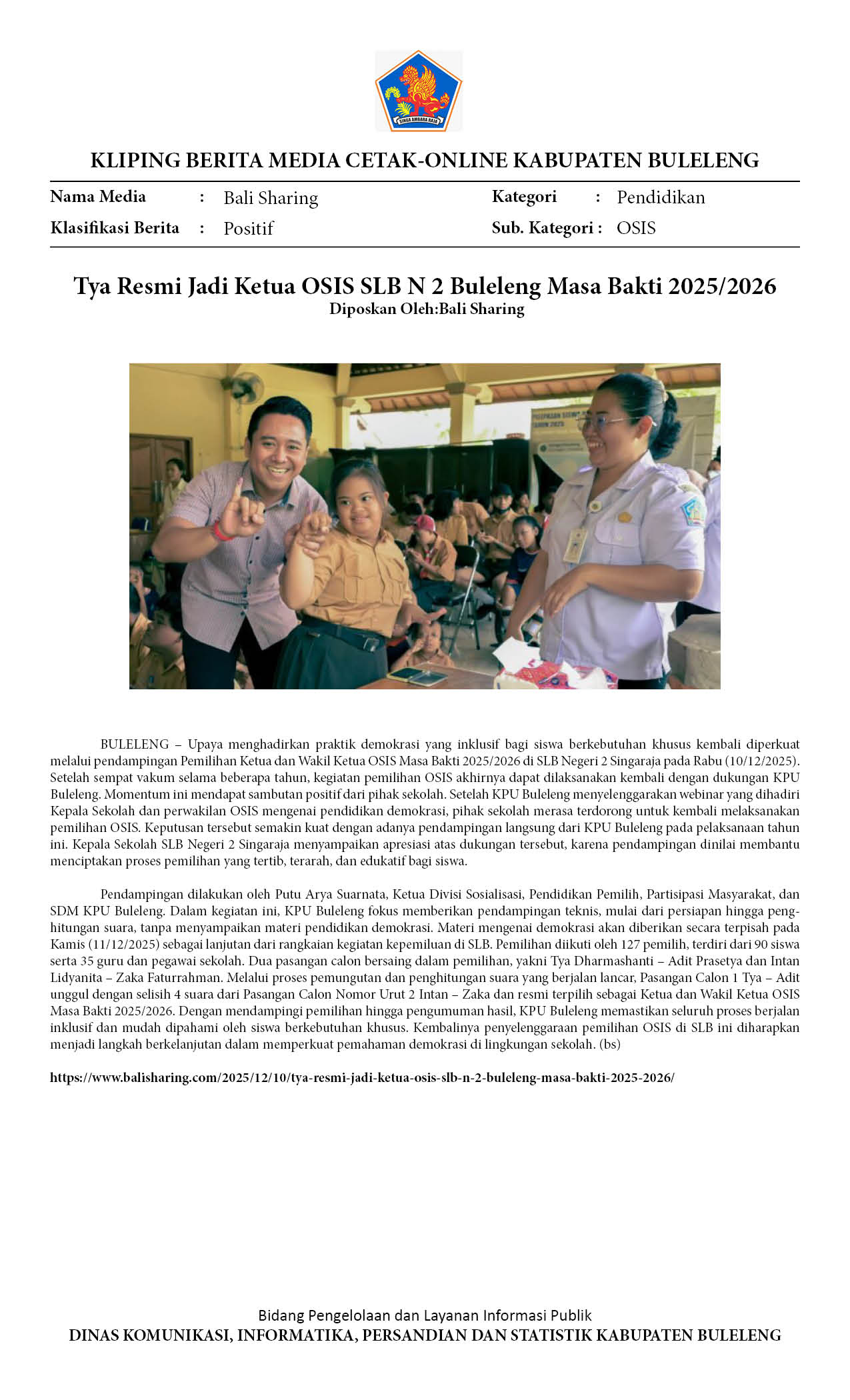 TYA RESMI JADI KETUA OSIS SLB N 2 BULELENG MASA BAKTI 2025/2026