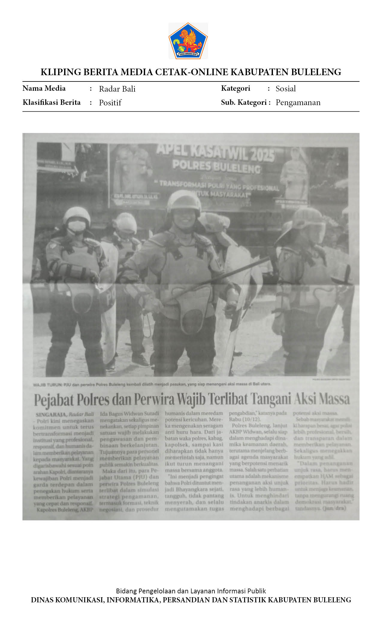 PEJABAT POLRES DAN PERWIRA WAJIB TERLIBAT TANGANI AKSI MASSA
