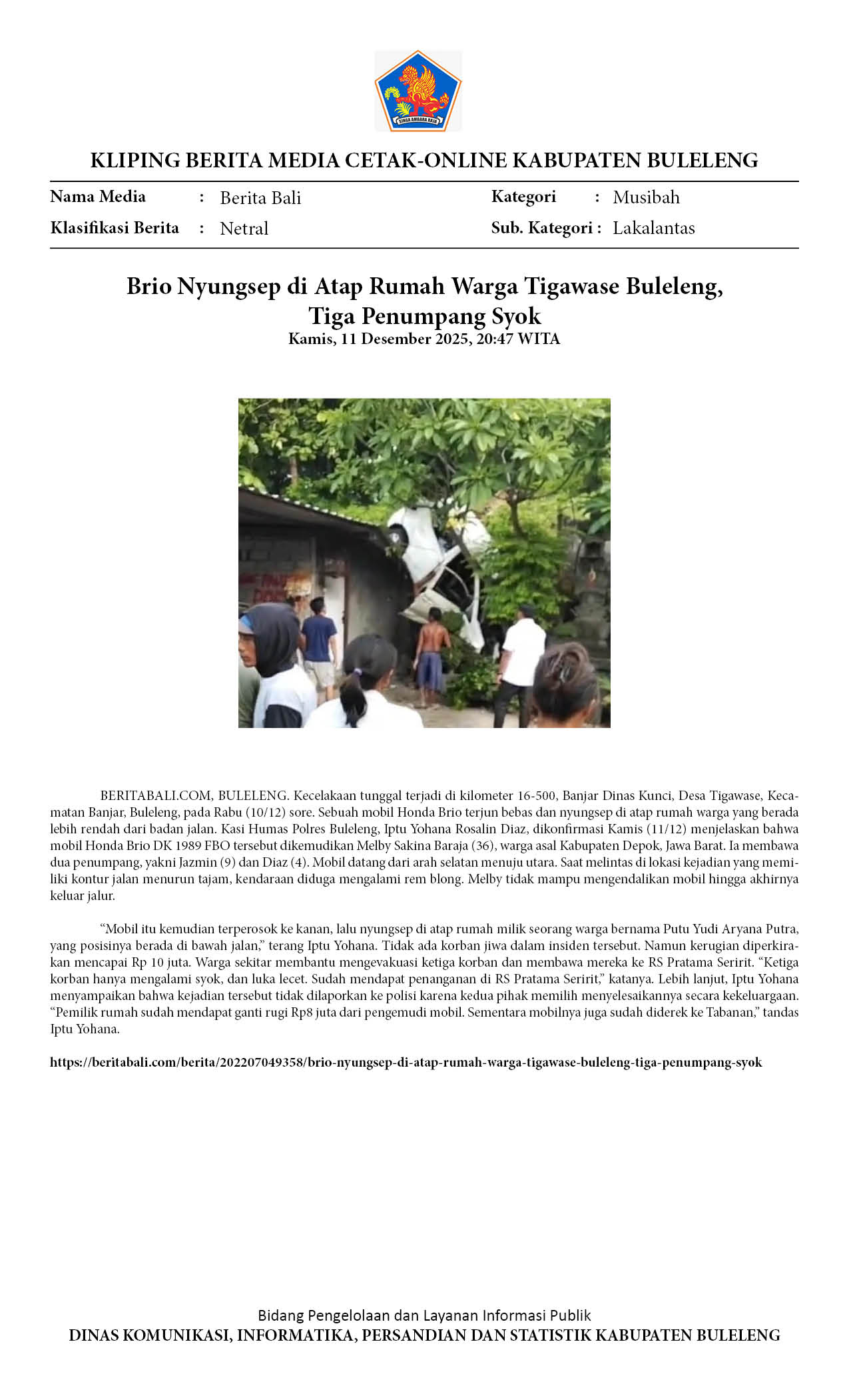 BRIO NYUNGSEP DI ATAP RUMAH WARGA TIGAWASE BULELENG, TIGA PENUMPANG SYOK