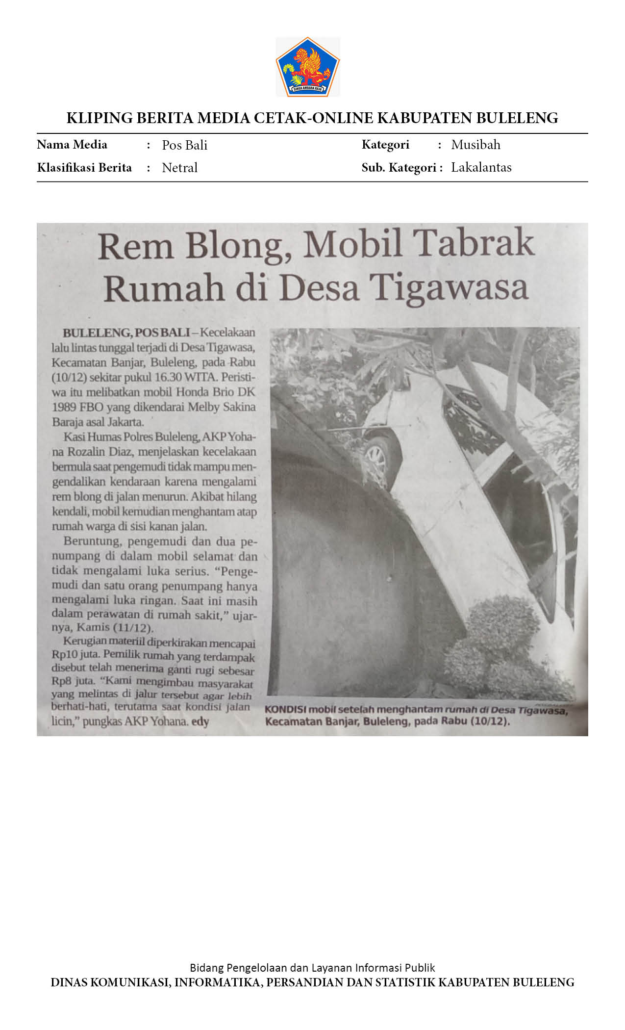 REM BLONG, MOBIL TANRAK RUMAH DI DESA TIGAWASA
