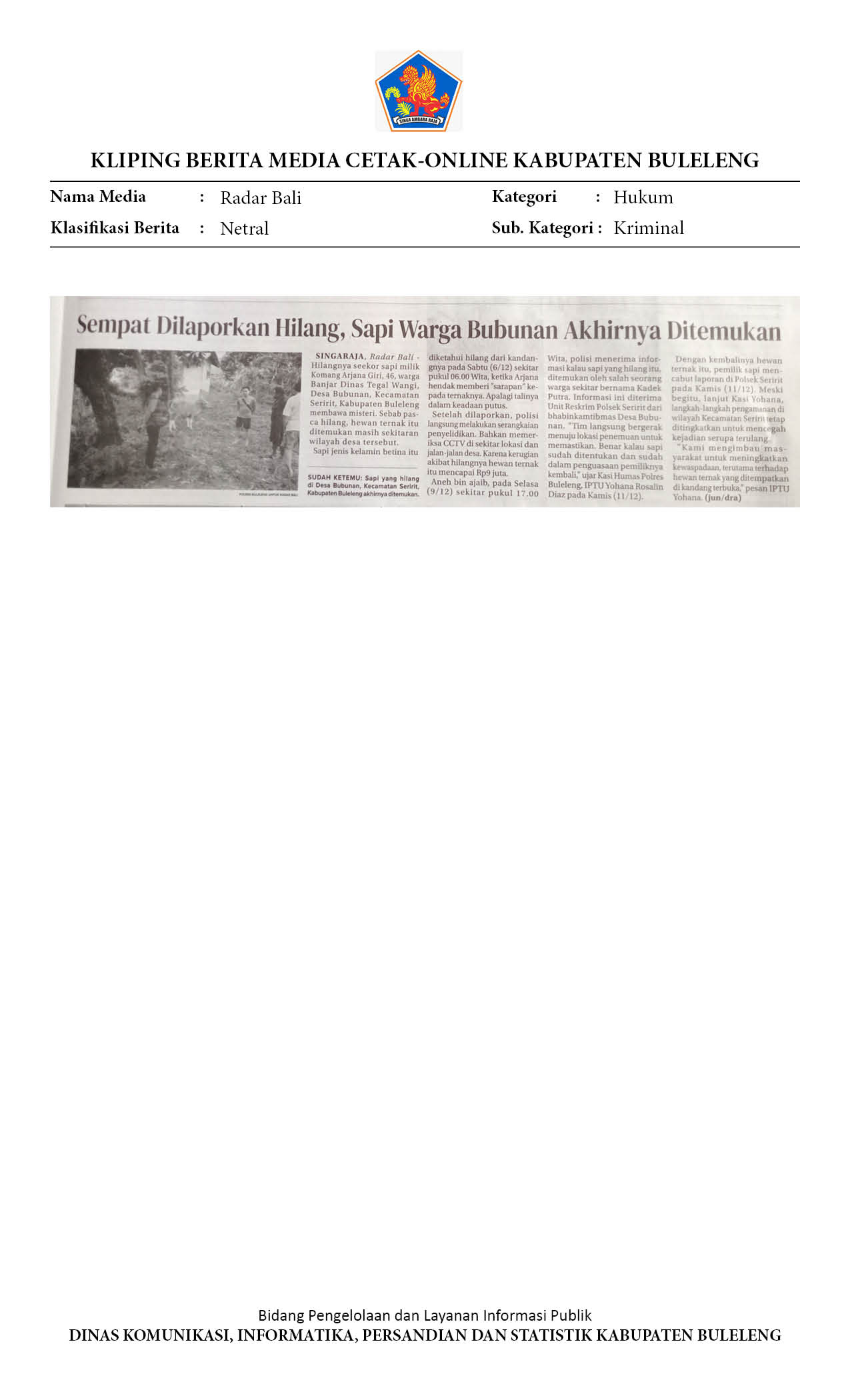 SEMPAT DILAPORKAN HILANG, SAPI WARGA BUBUNAN AKHIRNYA DITEMUKAN