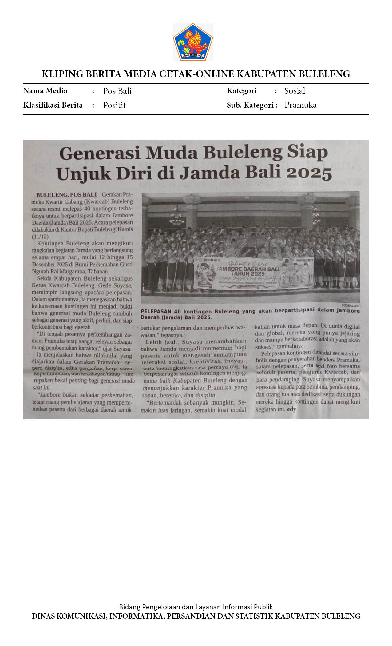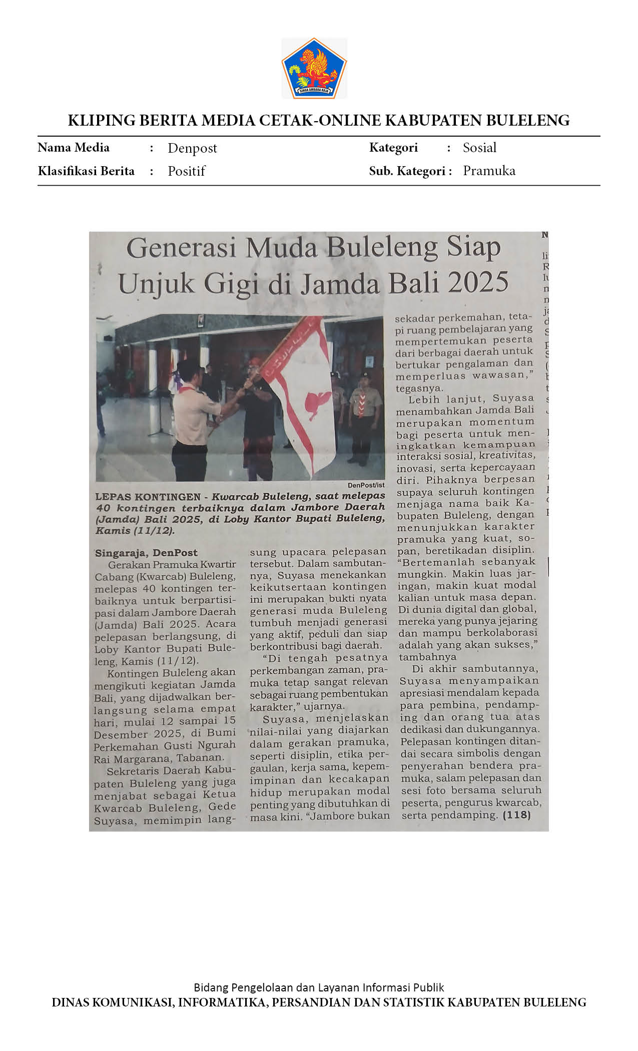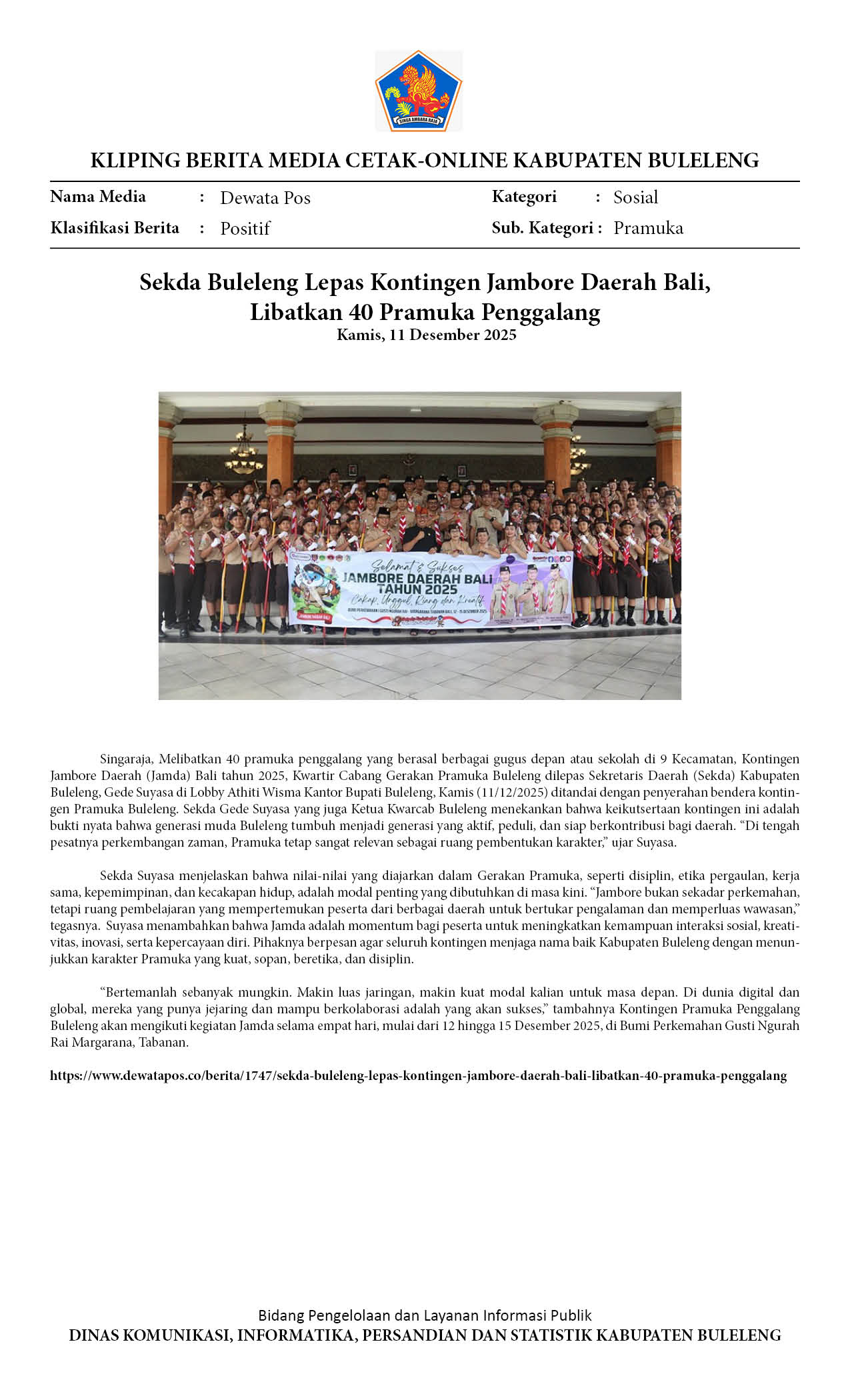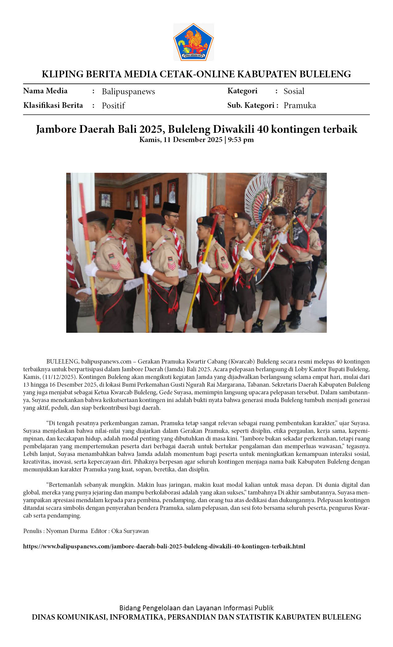 JAMBORE DAERAH BALI 2025, BULELENG DIWAKILI 40 KONTINGEN TERBAIK