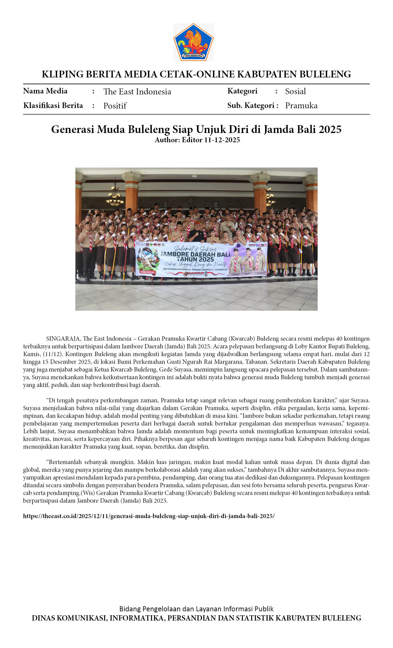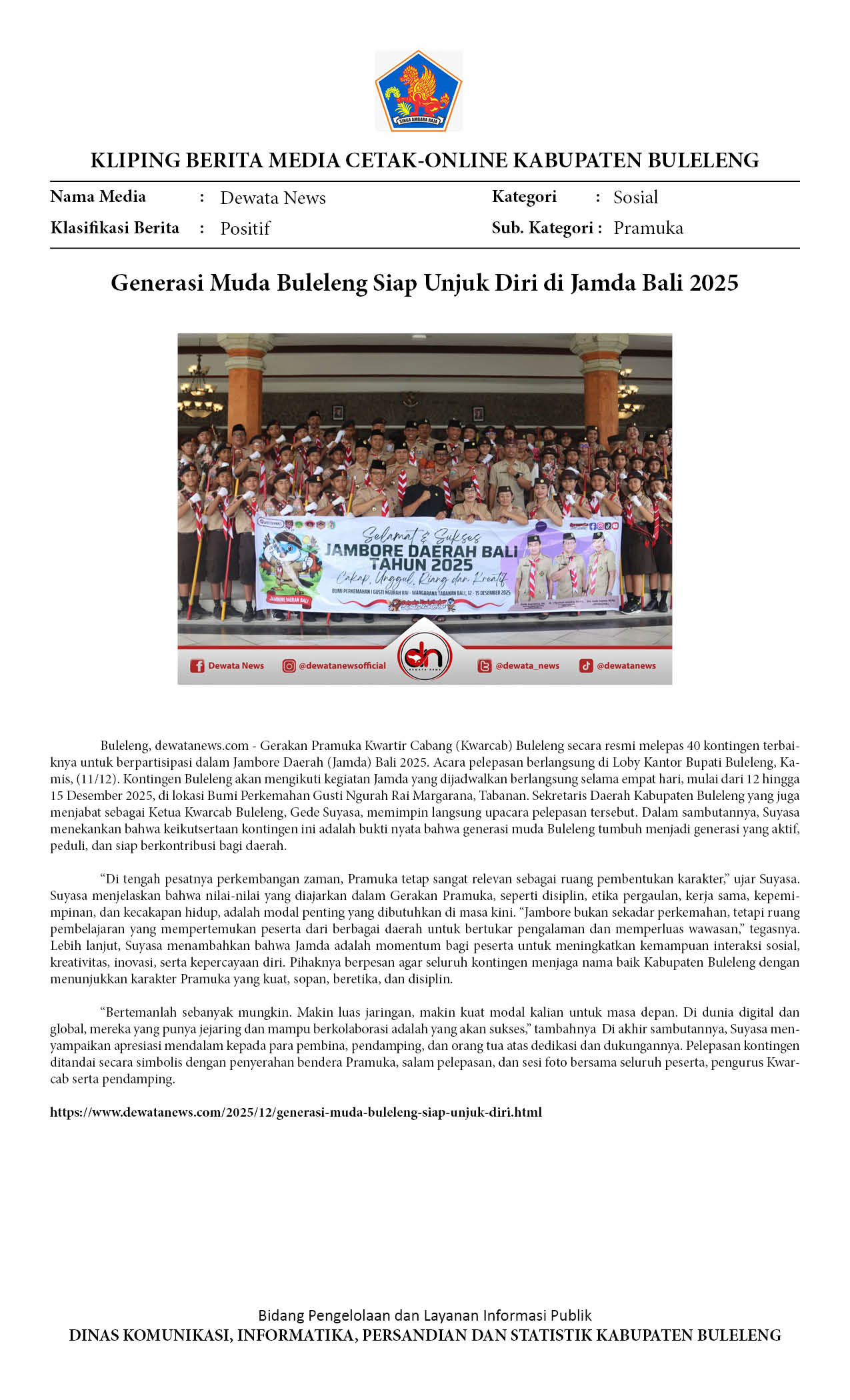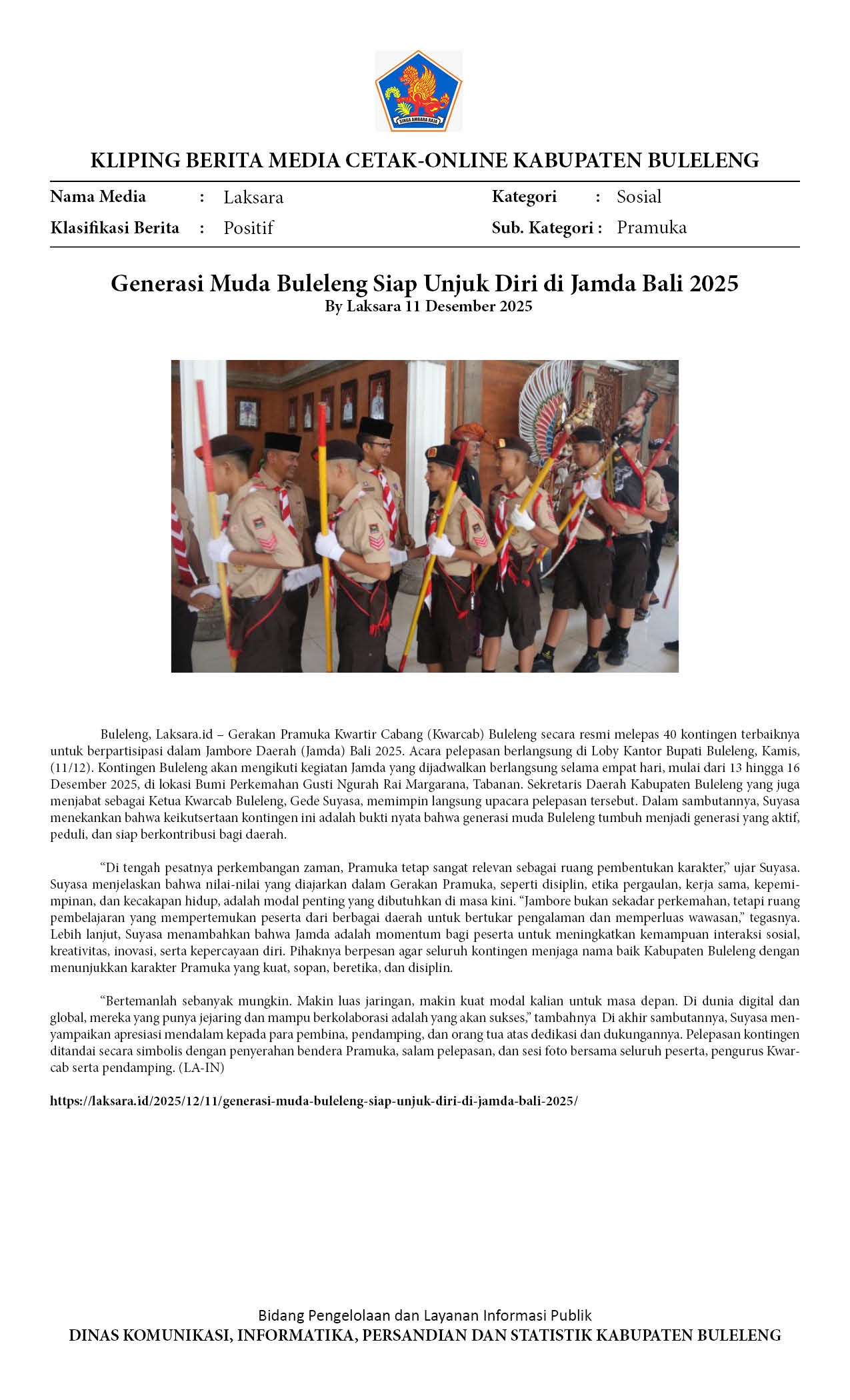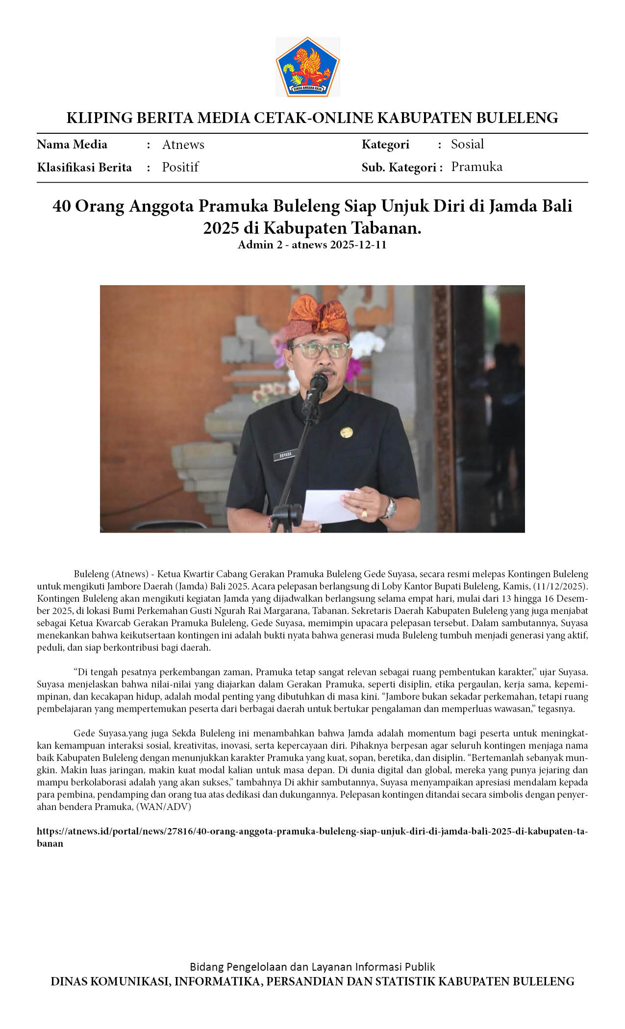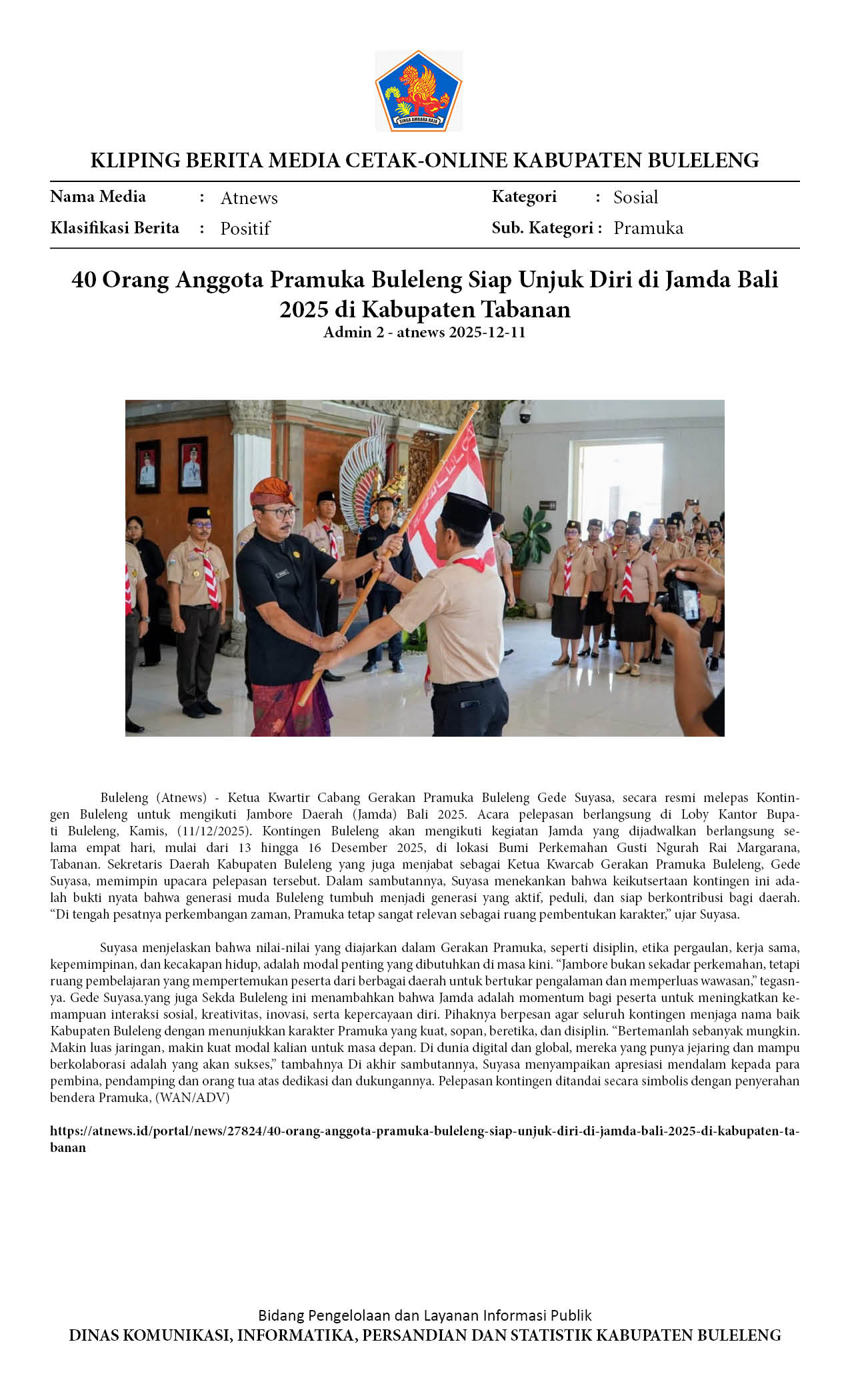 JAMBORE DAERAH BALI 2025, BULELENG DIWAKILI 40 KONTINGEN TERBAIK