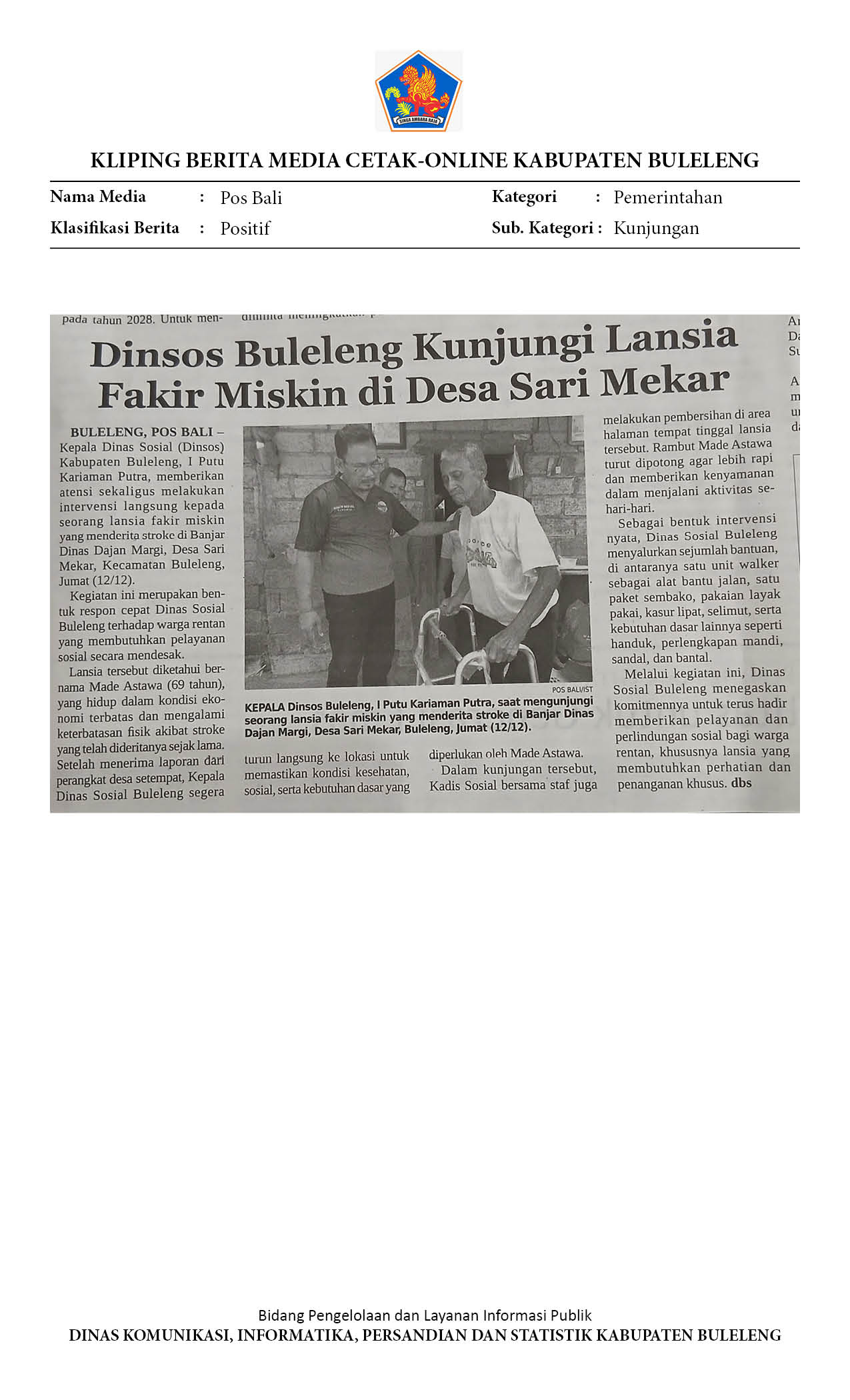 DINSOS BULELENG KUNJUNGI LANSIA FAKIR MISKIN DI DESA SARI MEKAR