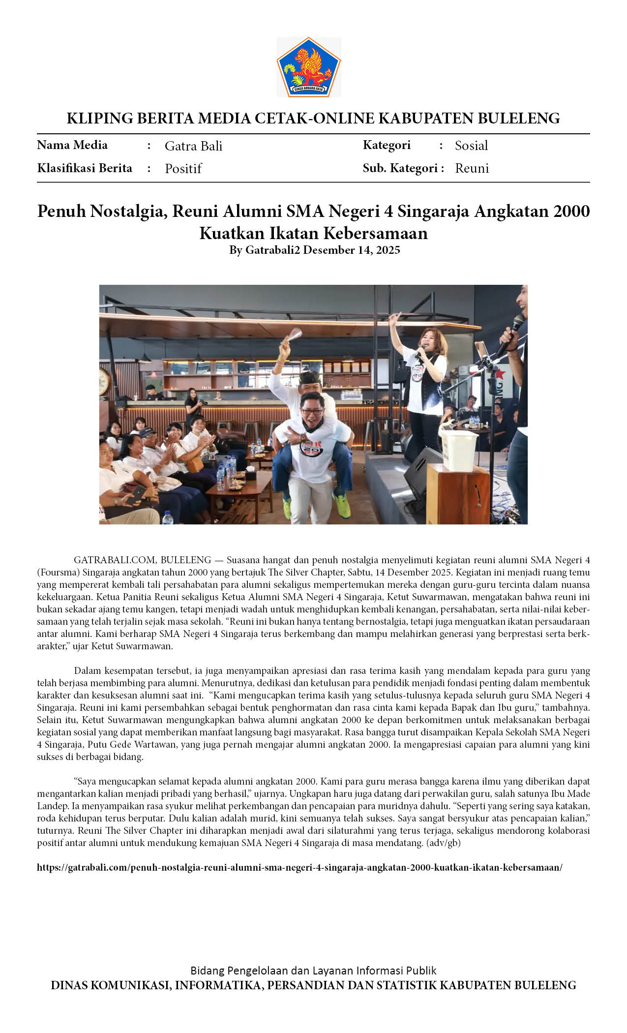 PENUH NOSTALGIA, REUNI ALUMNI SMA NEGERI 4 SINGARAJA ANGKATAN 2000 KUATKAN IKATAN KEBERSAMAAN