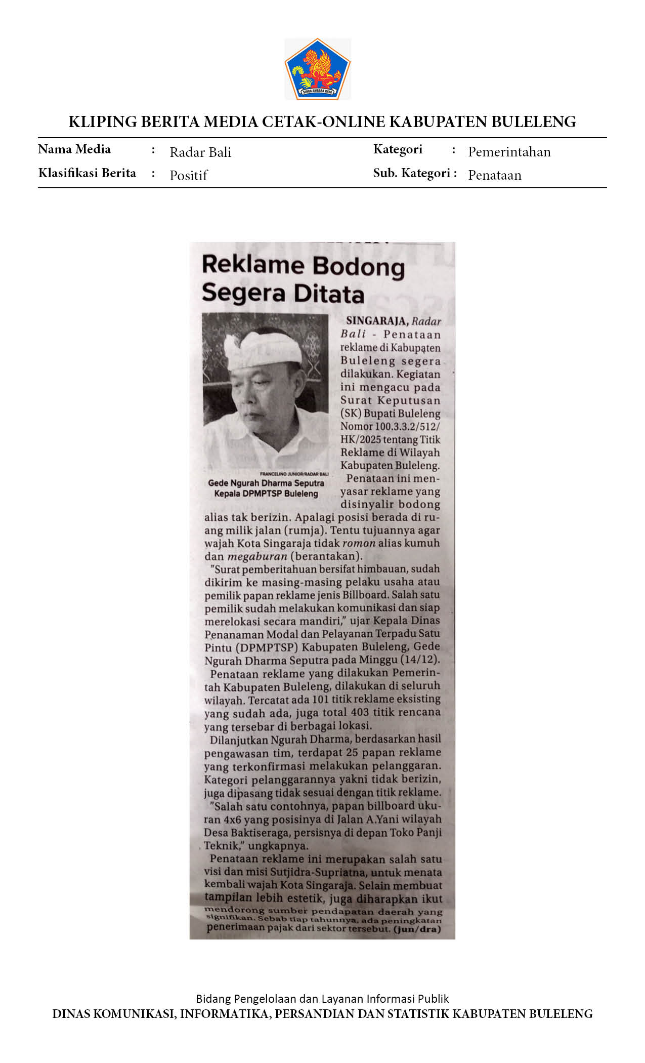 REKLAME BODONG SEGERA DITATA