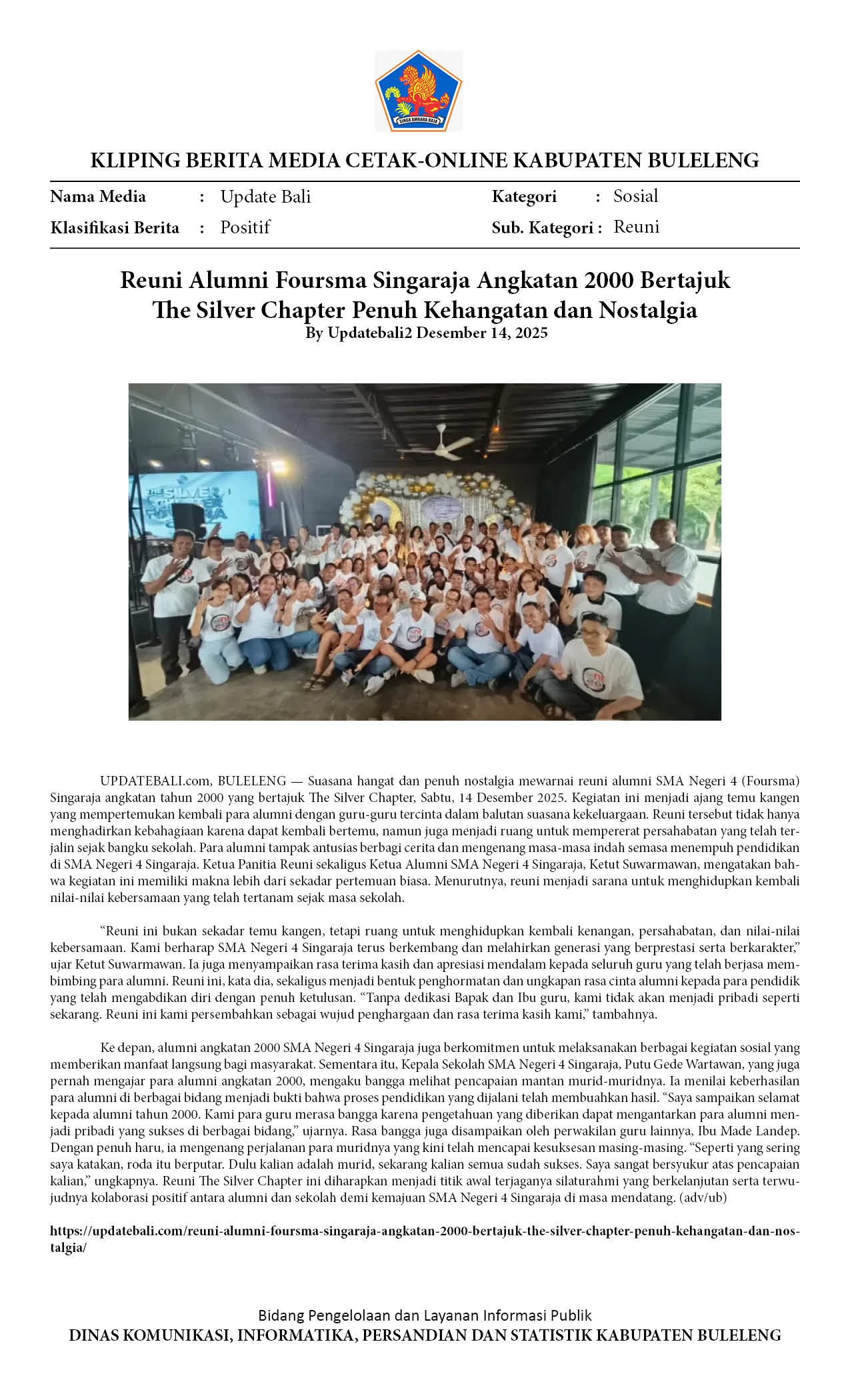 REUNI ALUMNI FOURSMA SINGARAJA ANGKATAN 2000 BERTAJUK THE SILVER CHAPTER PENUH KEHANGATAN DAN NOSTALGIA