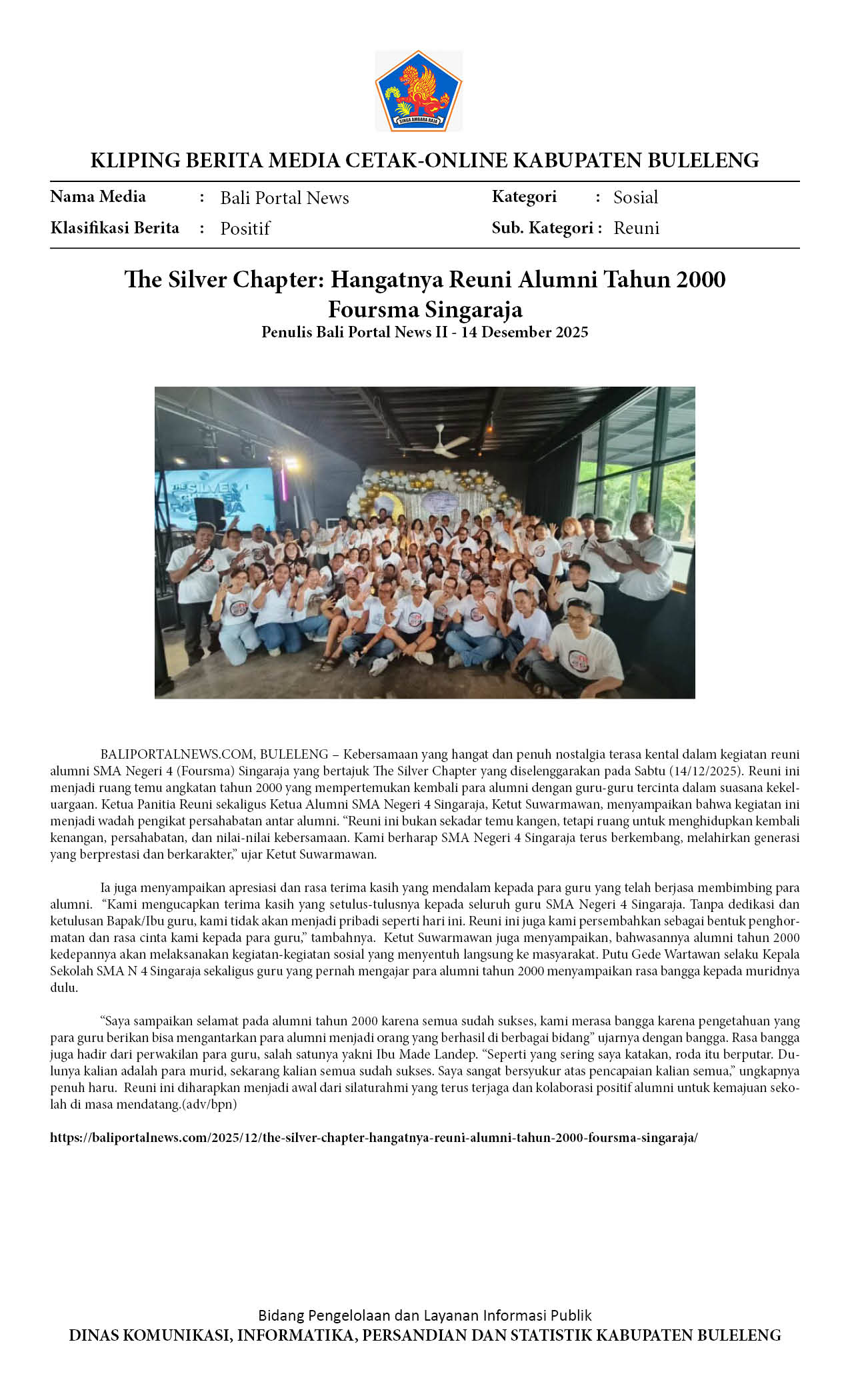 THE SILVER CHAPTER: HANGATNYA REUNI ALUMNI TAHUN 2000 FOURSMA SINGARAJA