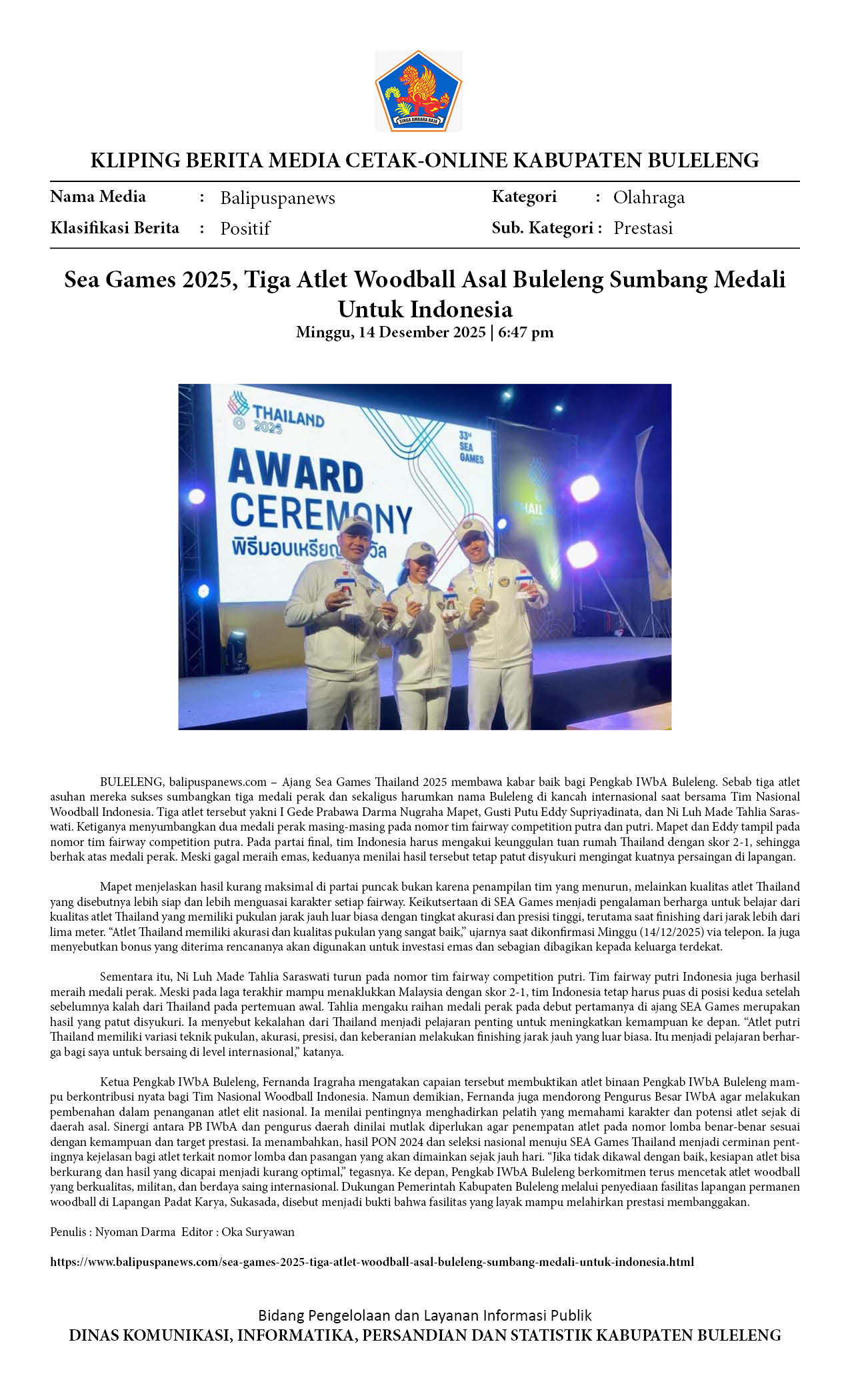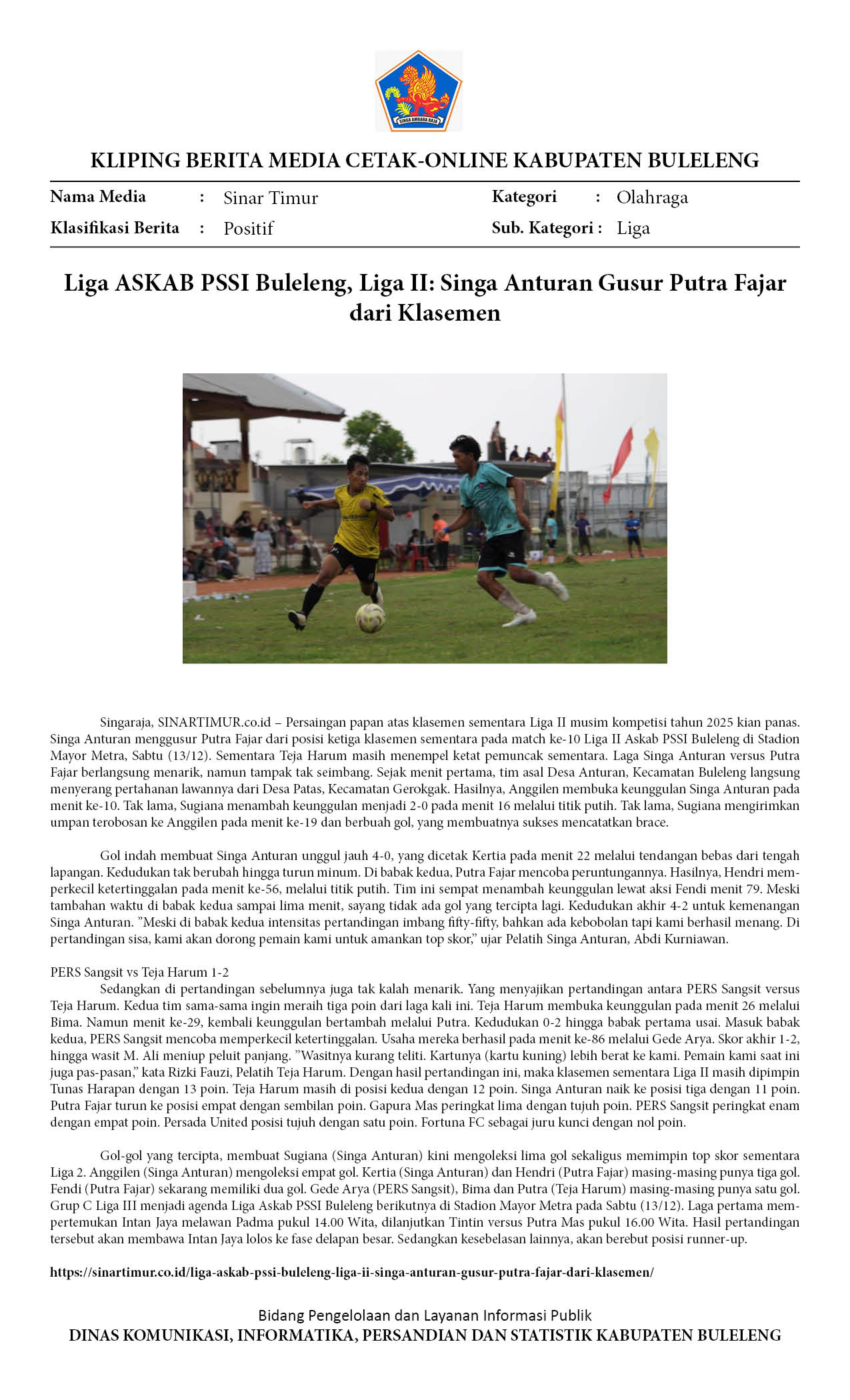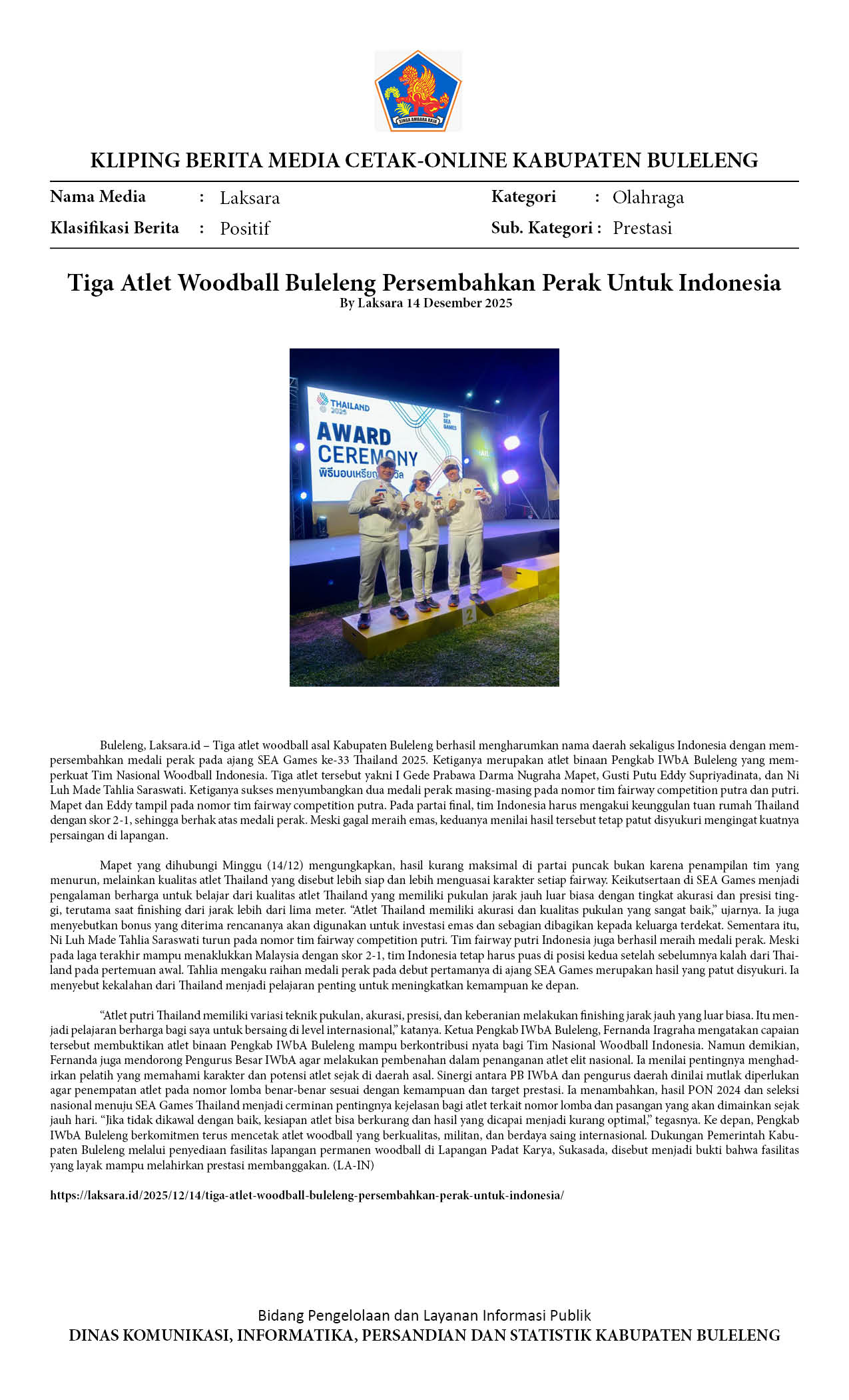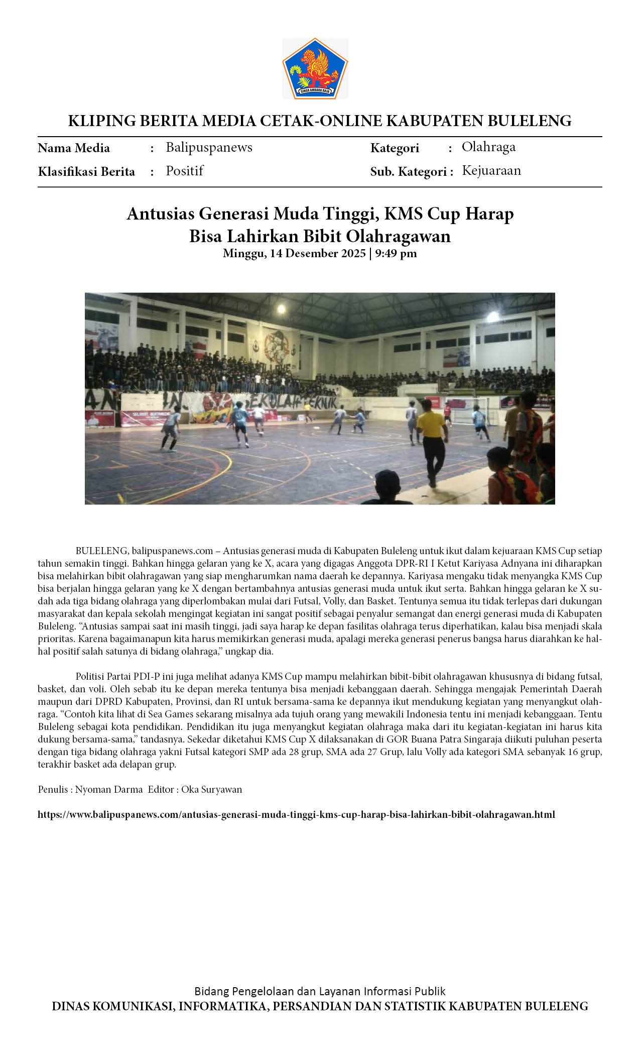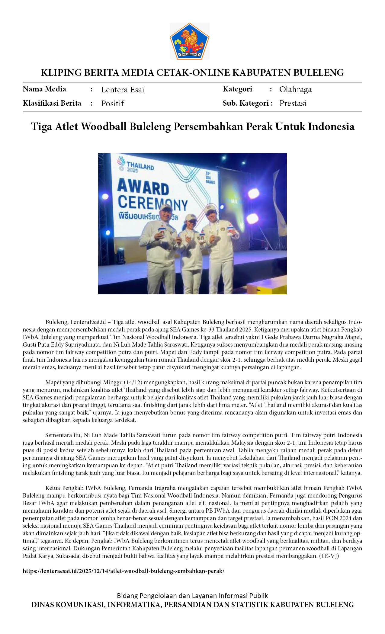 Kliping Kategori Olahraga Edisi 15 Desember 2025