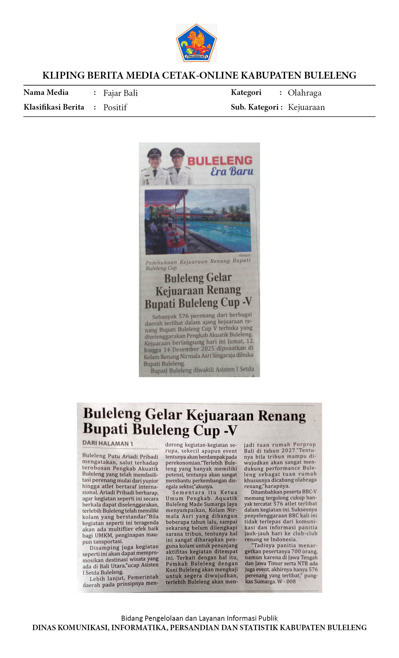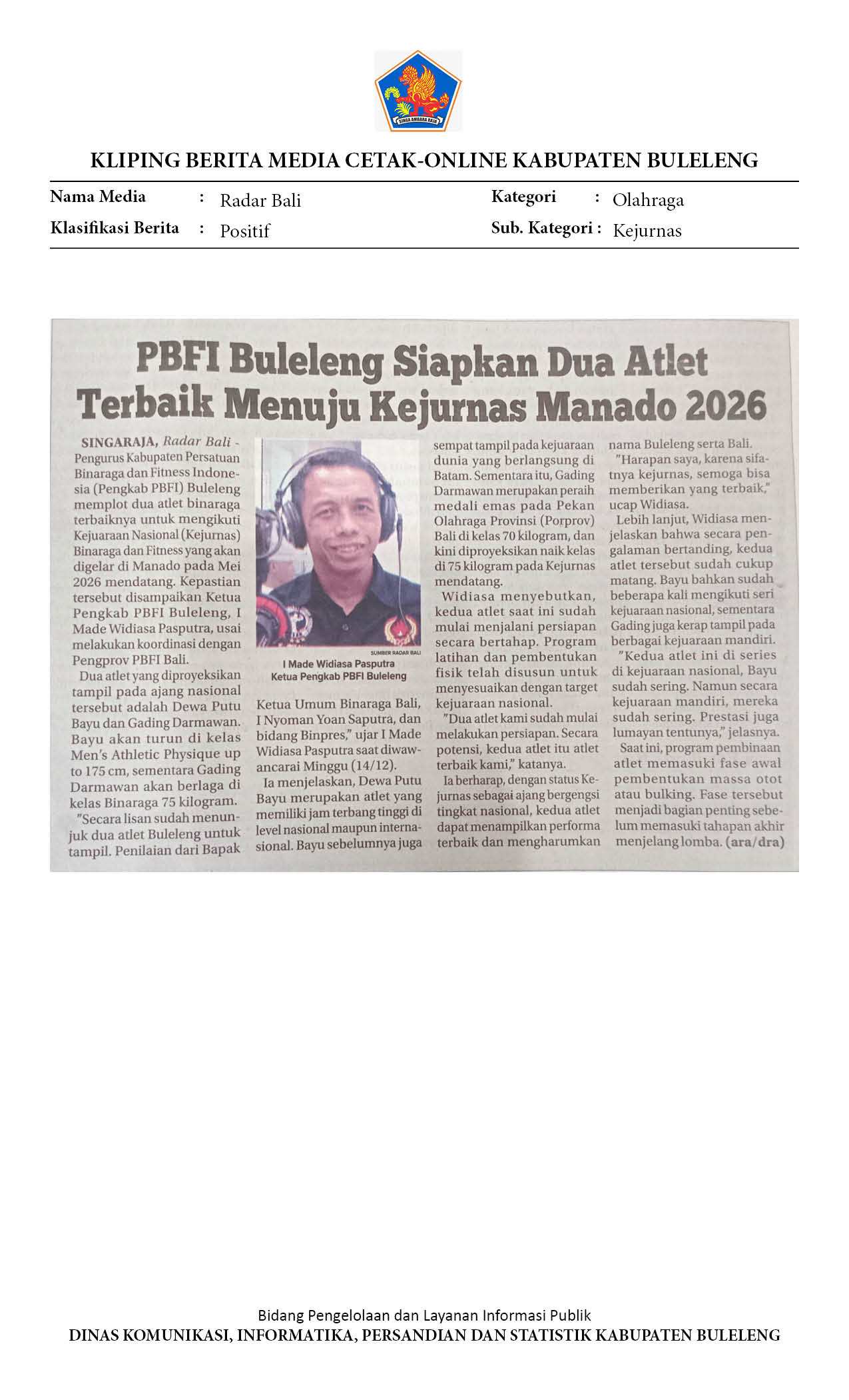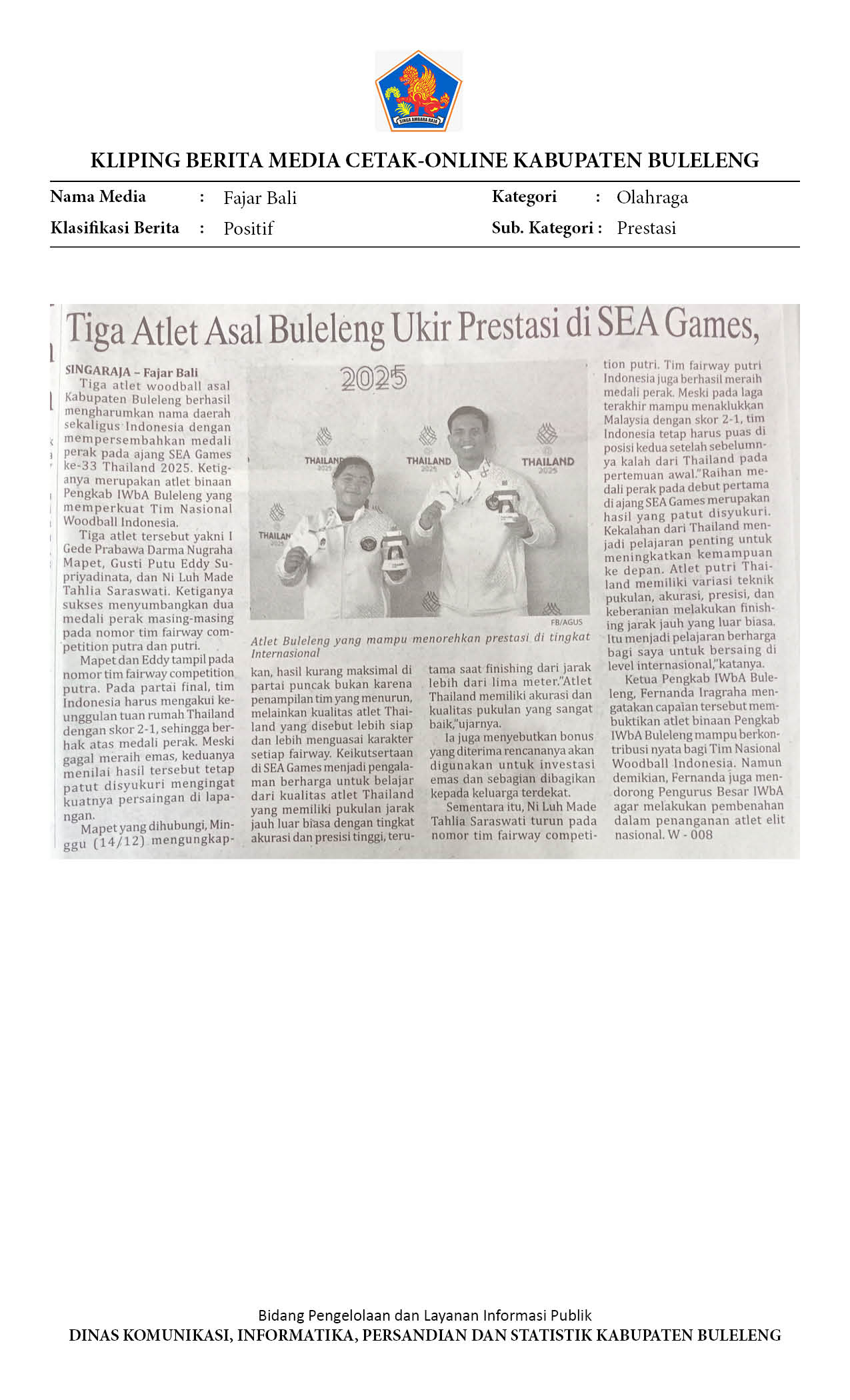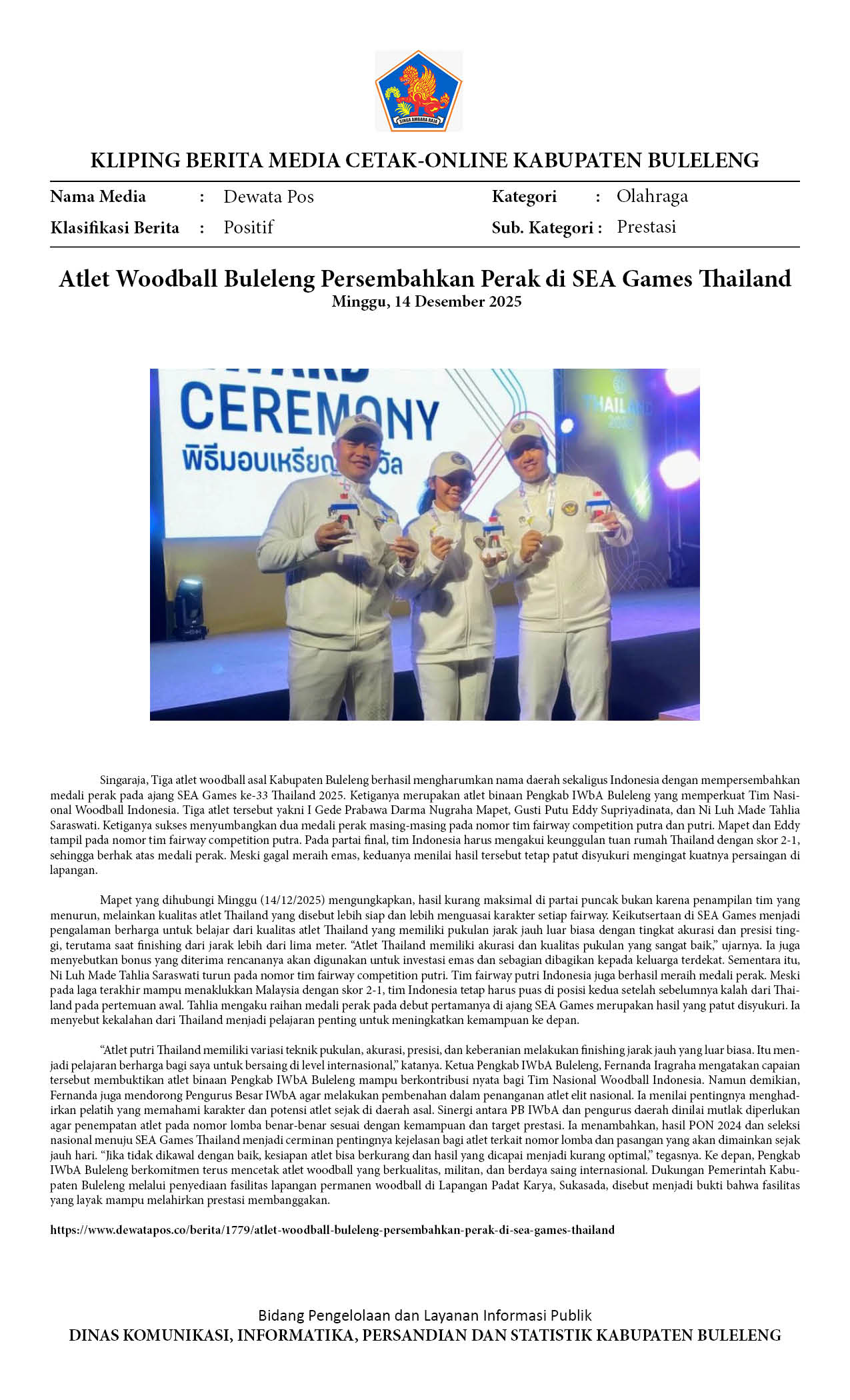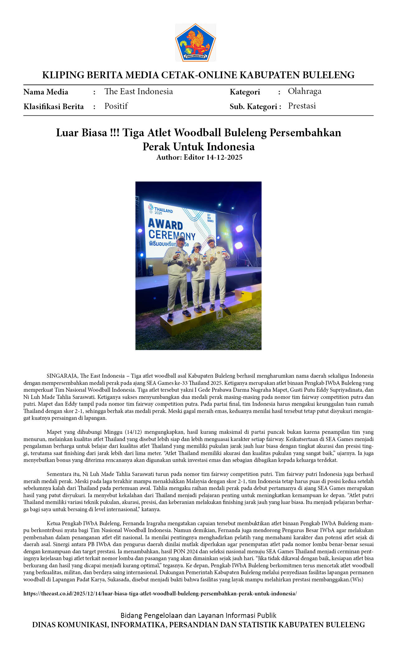 Kliping Kategori Olahraga Edisi 15 Desember 2025