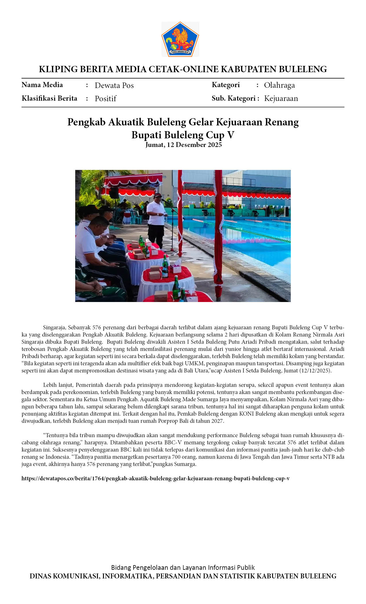 PENGKAB AKUATIK BULELENG GELAR KEJUARAAN RENANG BUPATI BULELENG CUP V