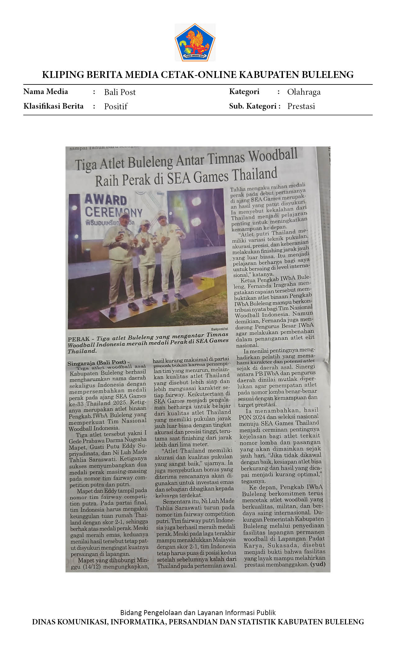 TIGA ATLET WOODBALL BULELENG PERSEMBAHKAN PERAK UNTUK INDONESIA