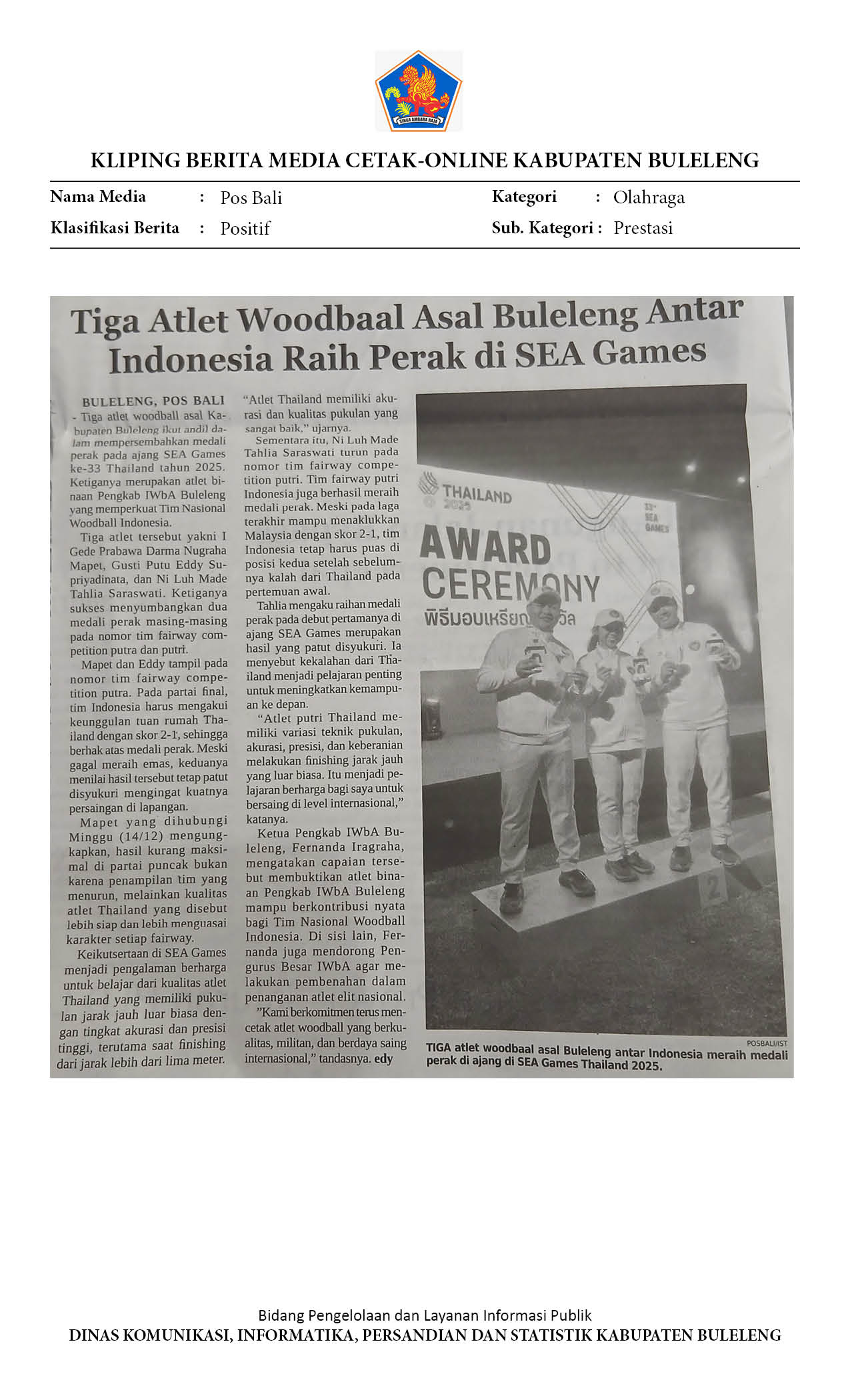 SEA GAMES 2025, TIGA ATLET WOODBALL ASAL BULELENG SUMBANG MEDALI UNTUK INDONESIA