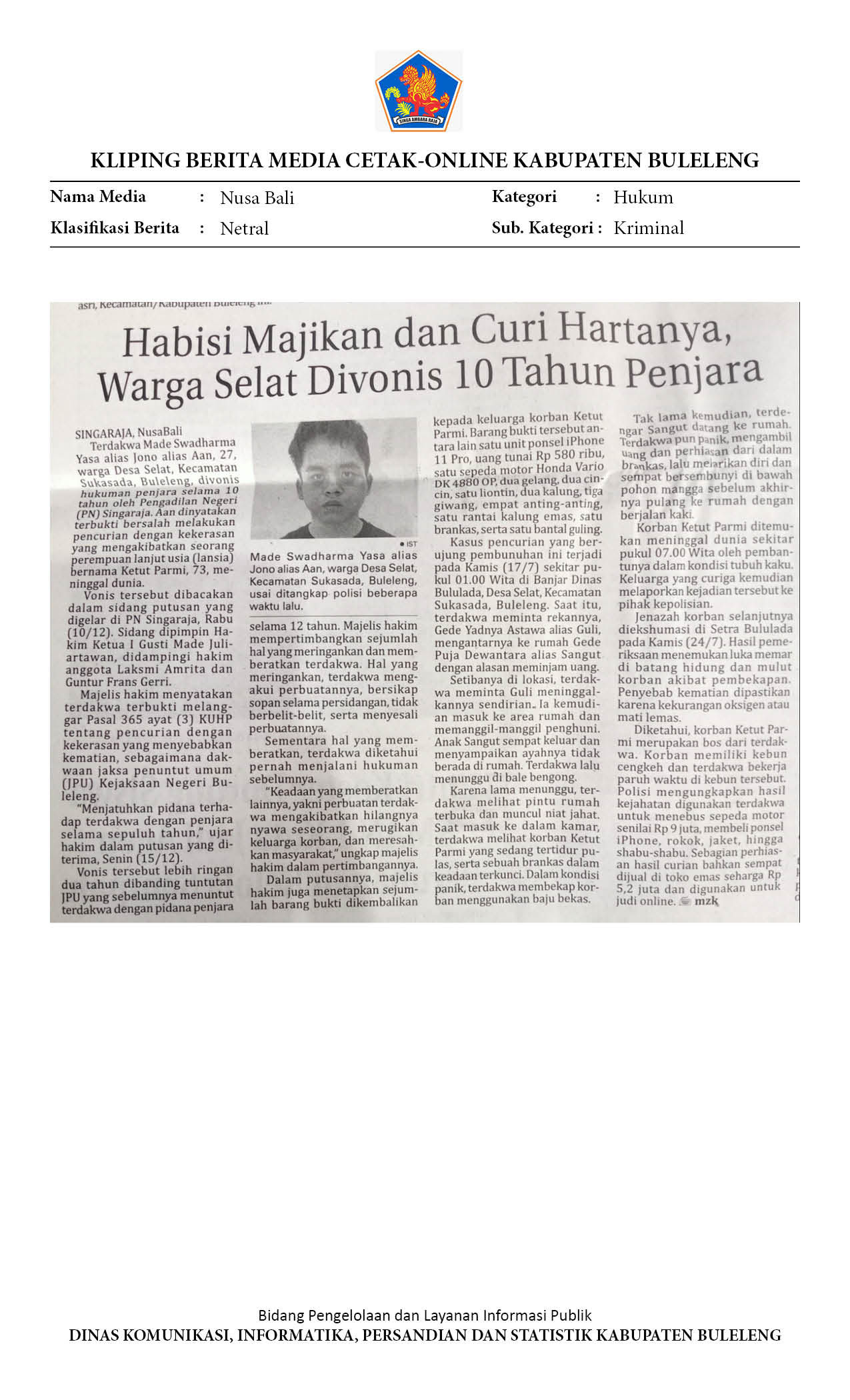 HABISI MAJIKAN DAN CURI HARTANYA, WARGA SELAT DIVONIS 10 TAHUN PENJARA