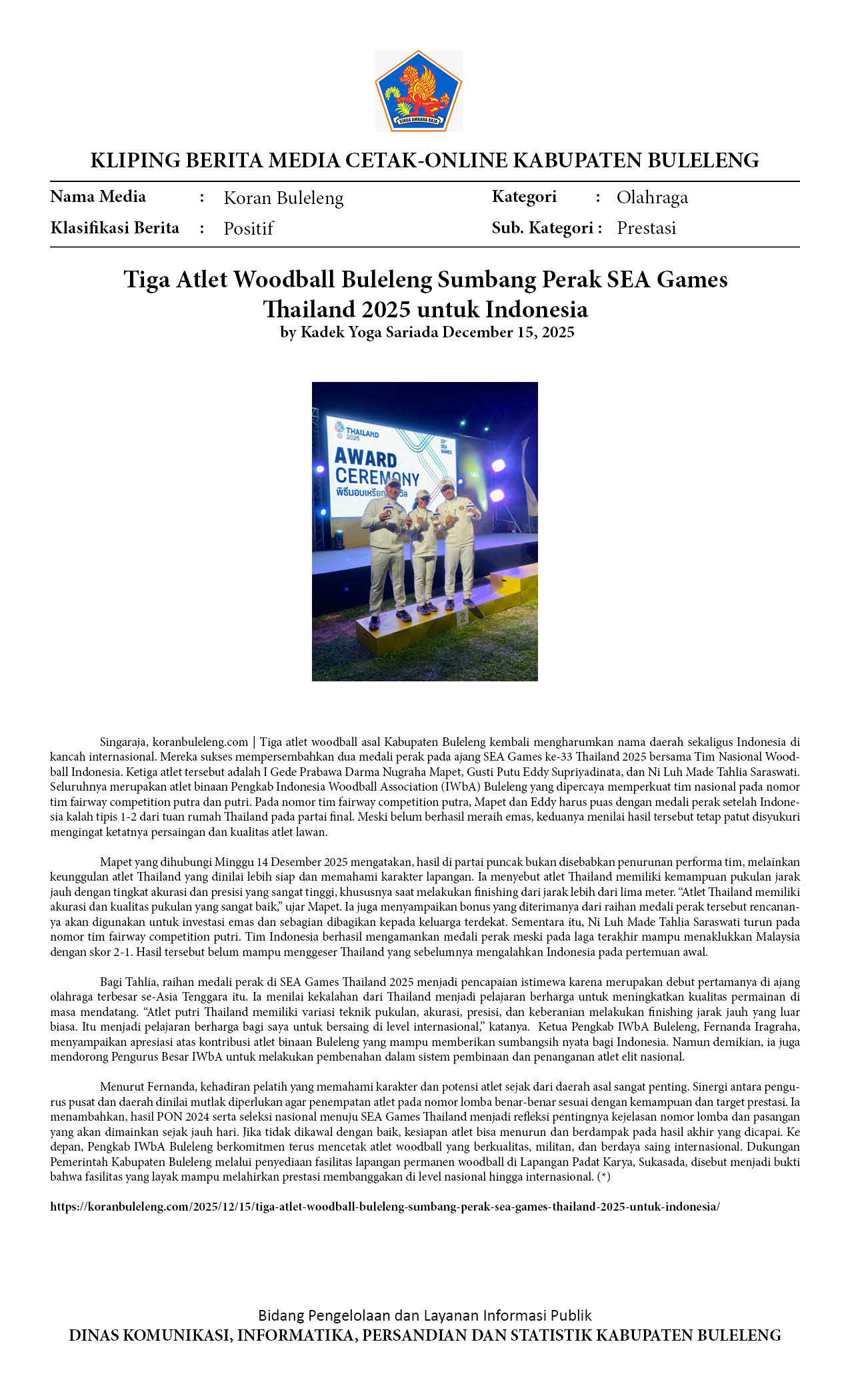 Kliping Kategori Olahraga Edisi 16 Desember 2025