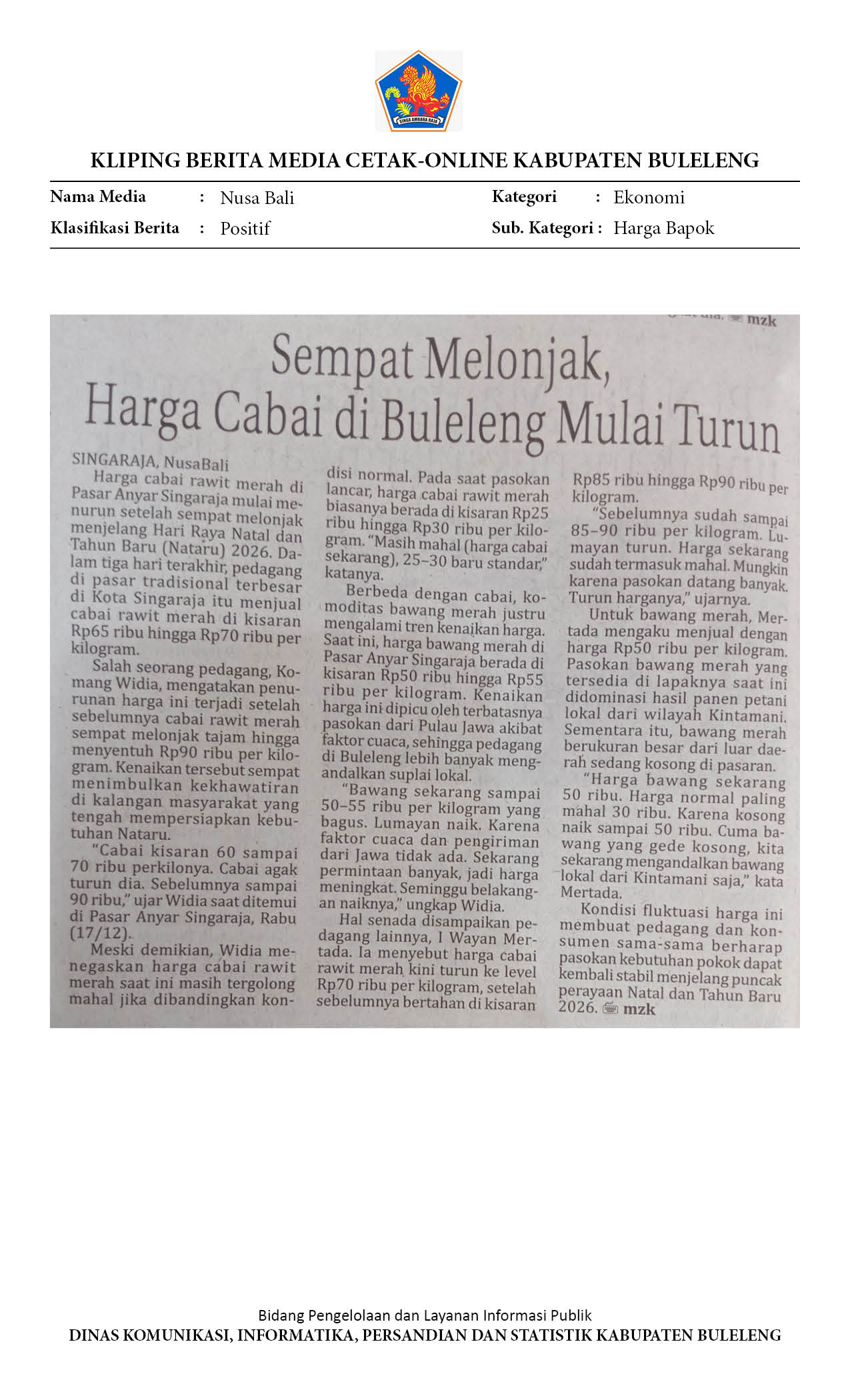 SEMPAT MELONJAK, HARGA CABAI DI BULELENG MULAI TURUN