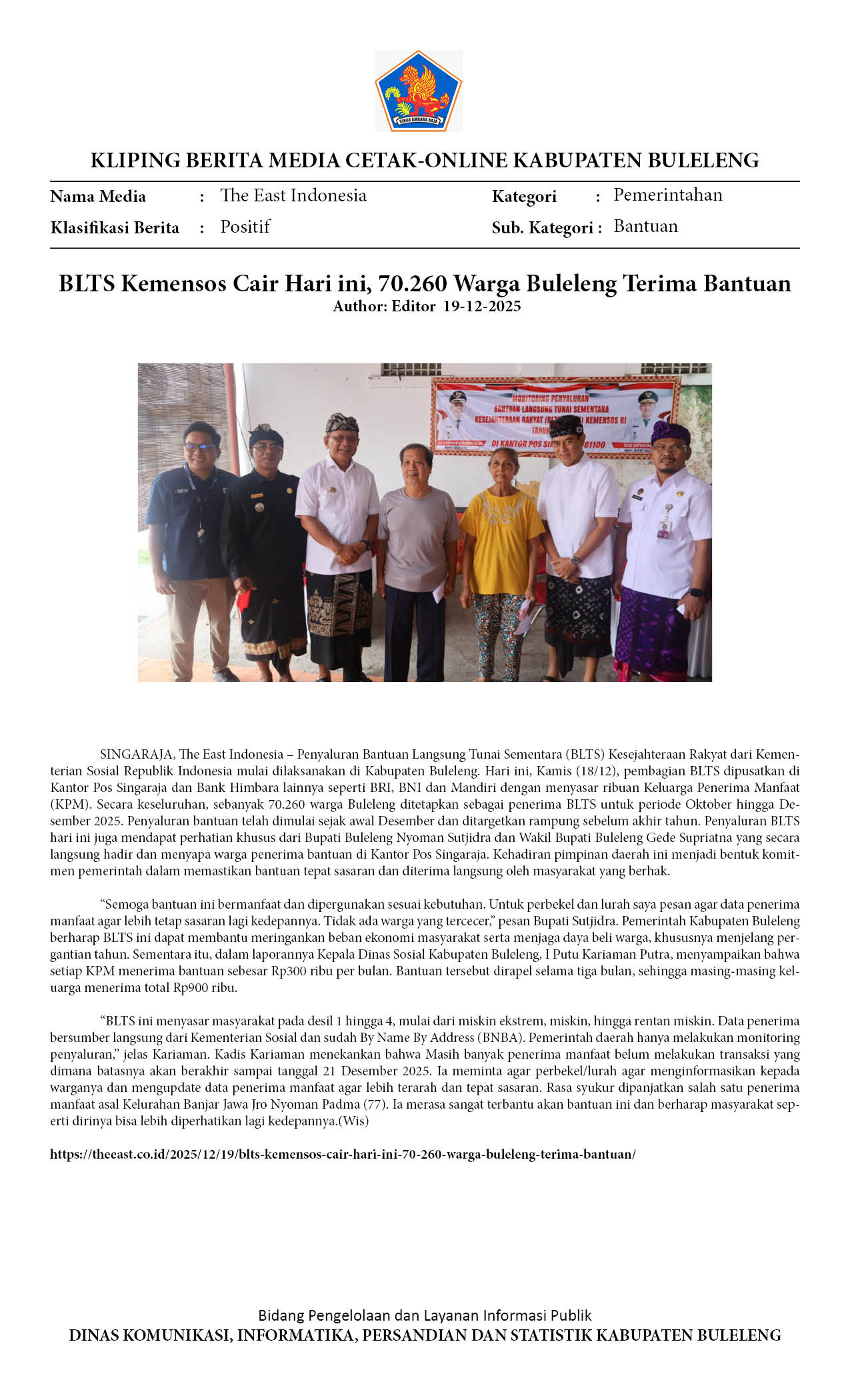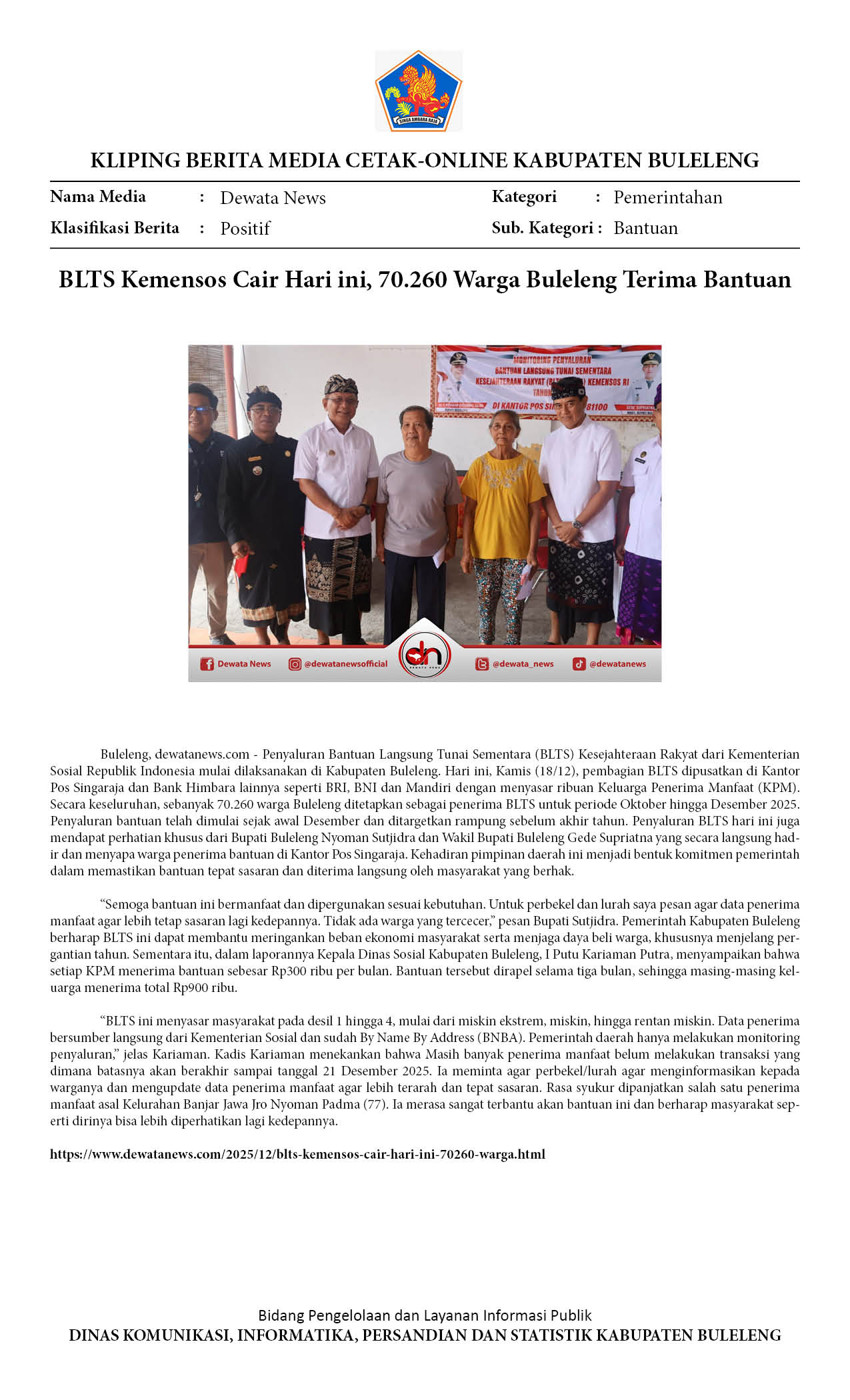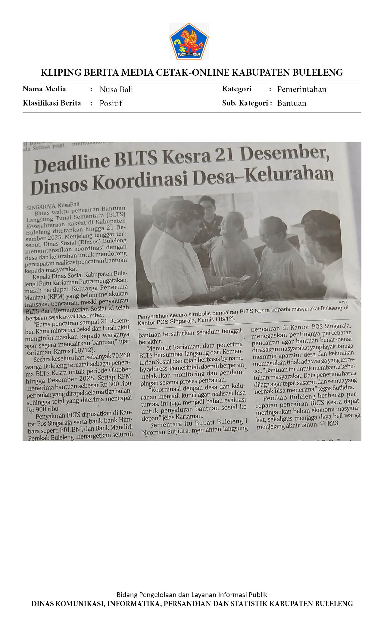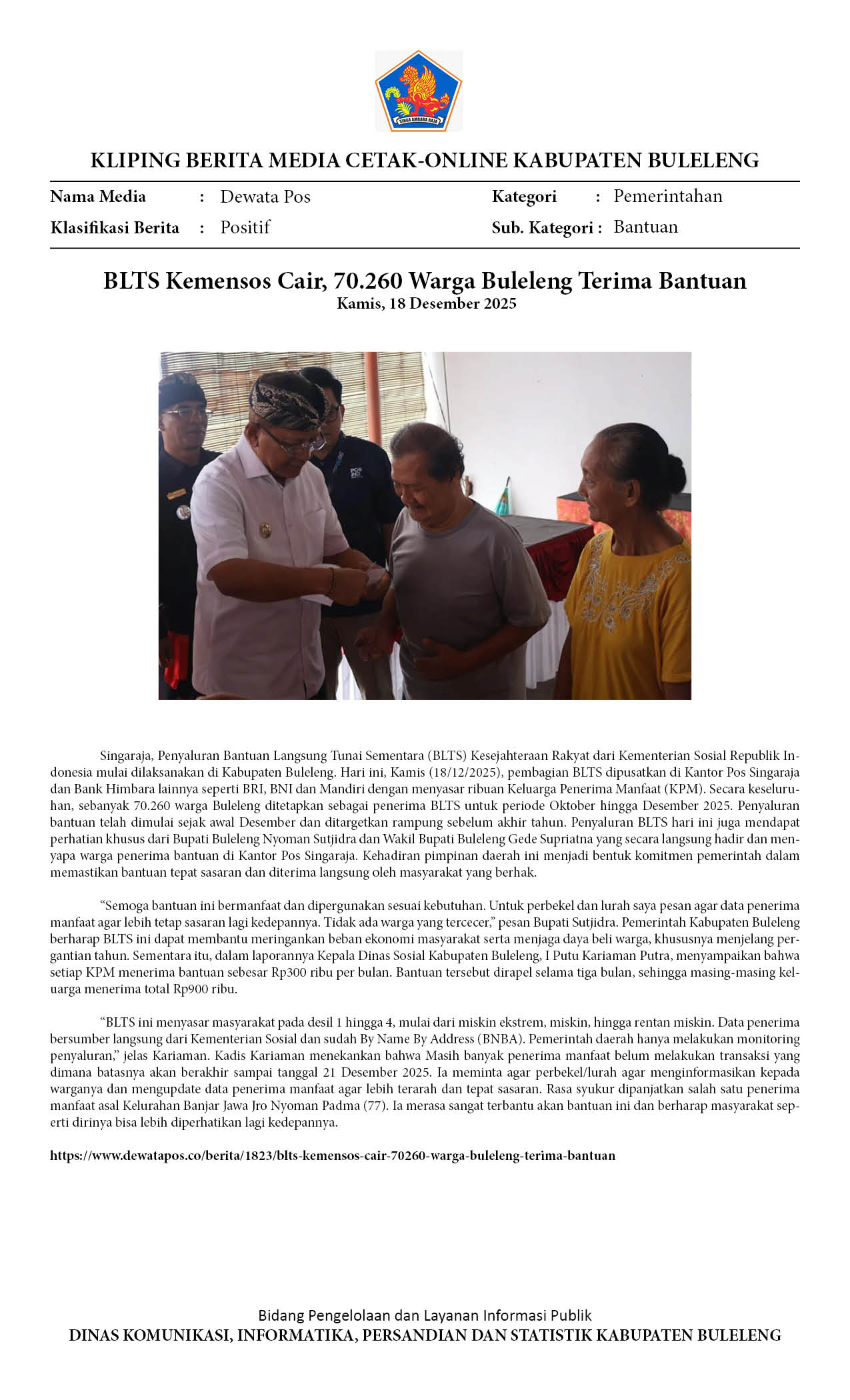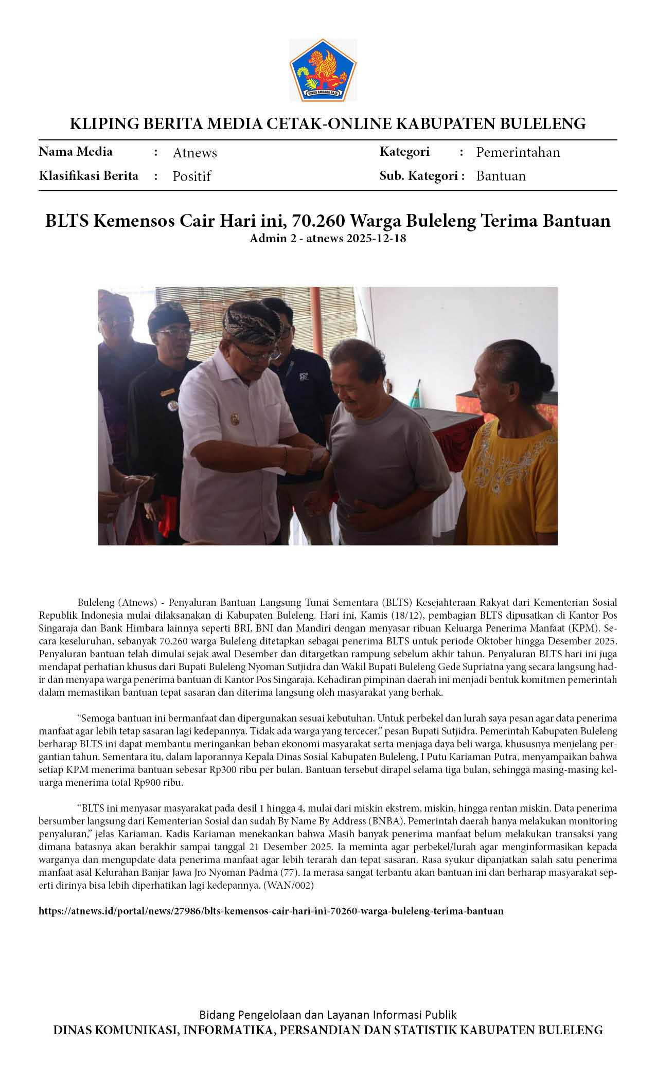 BLTS KEMENSOS CAIR HARI INI, 70.260 WARGA BULELENG TERIMA BANTUAN