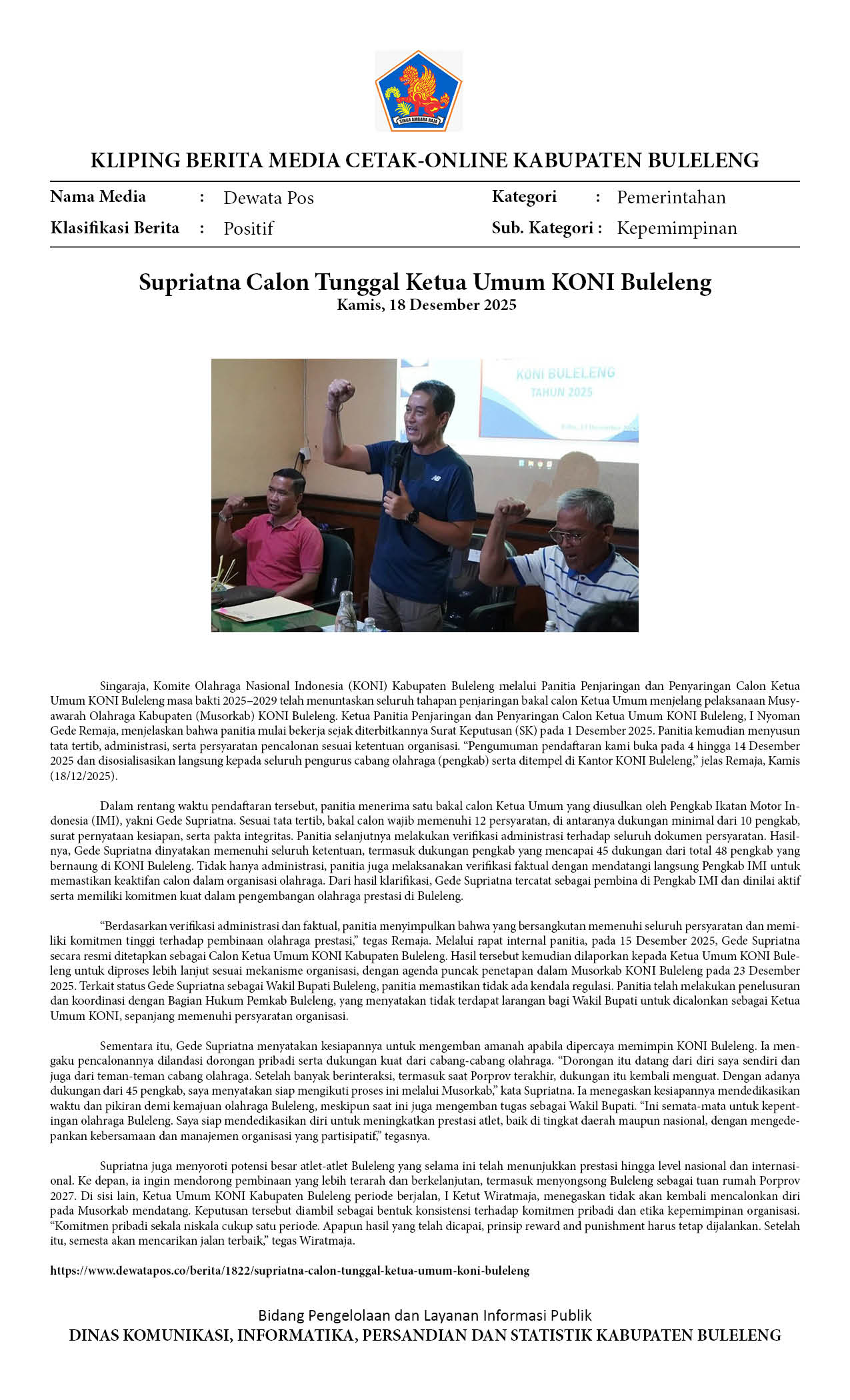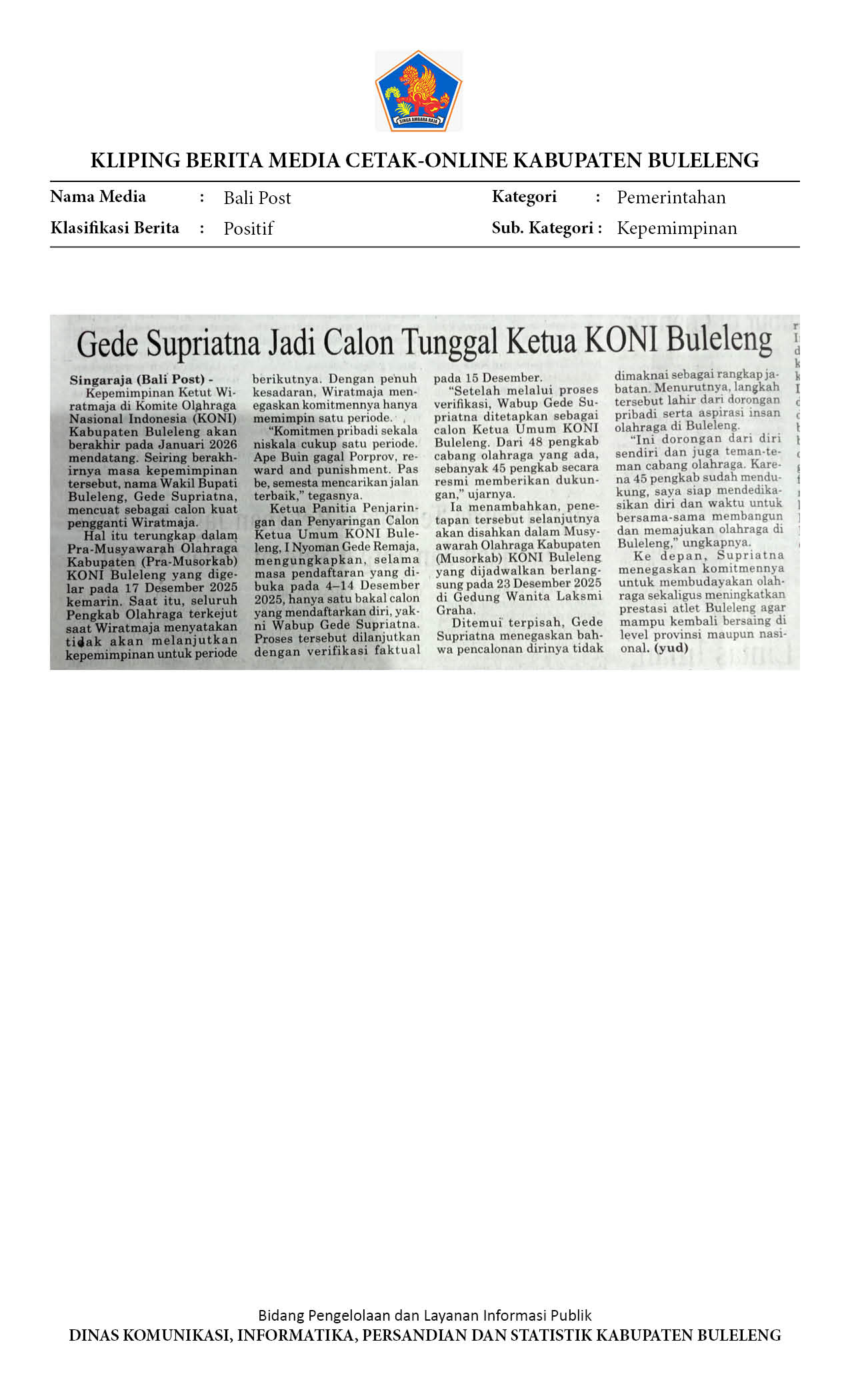 SUPRIATNA CALON TUNGGAL KETUA UMUM KONI BULELENG