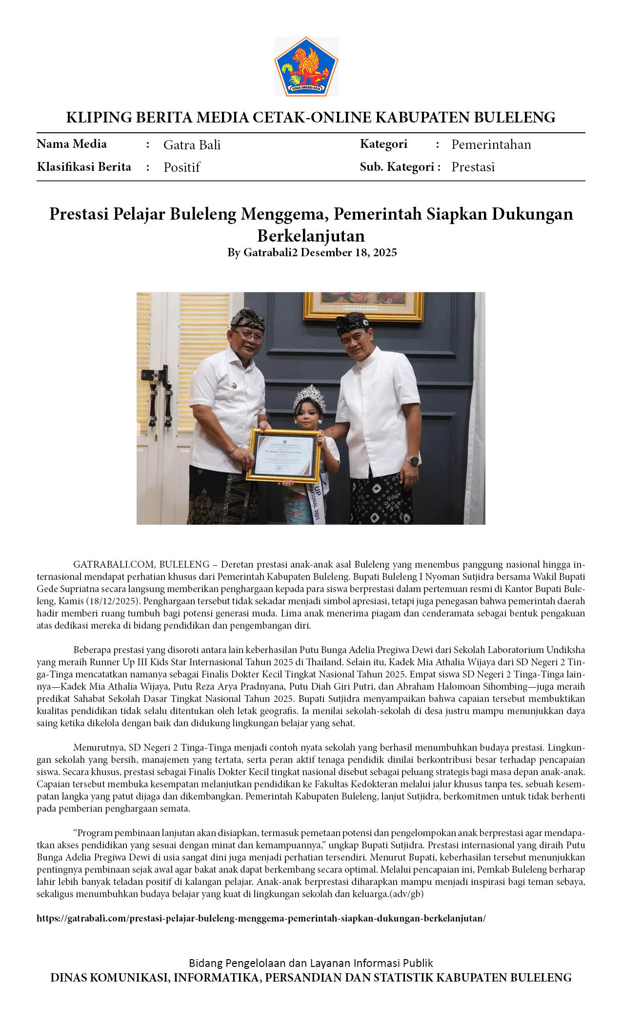 PRESTASI PELAJAR BULELENG MENGGEMA, PEMERINTAH SIAPKAN DUKUNGAN BERKELANJUTAN