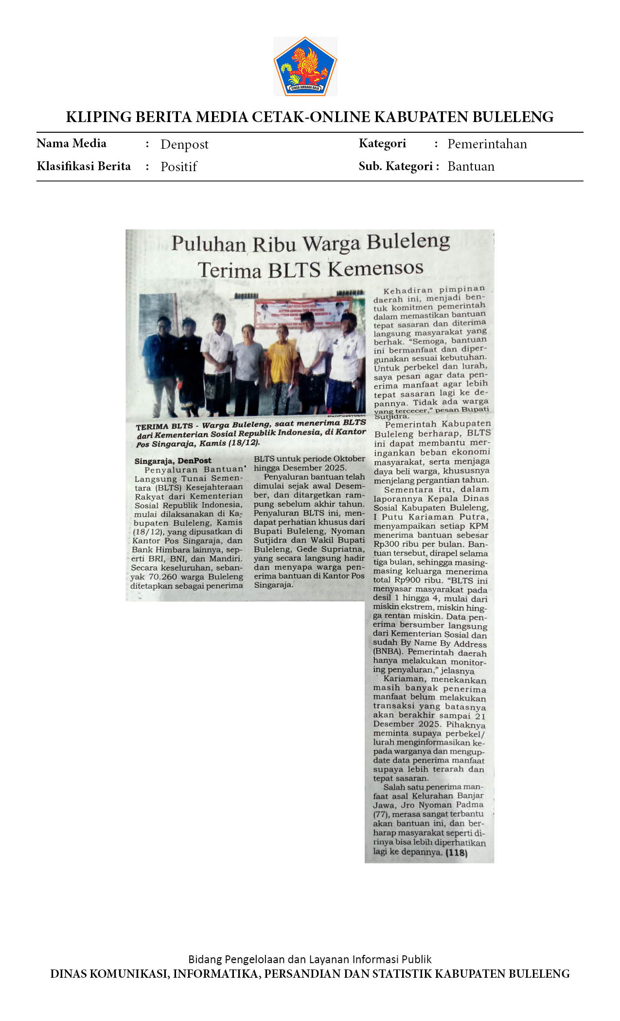 BLTS KEMENSOS CAIR, 70.260 WARGA BULELENG TERIMA BANTUAN