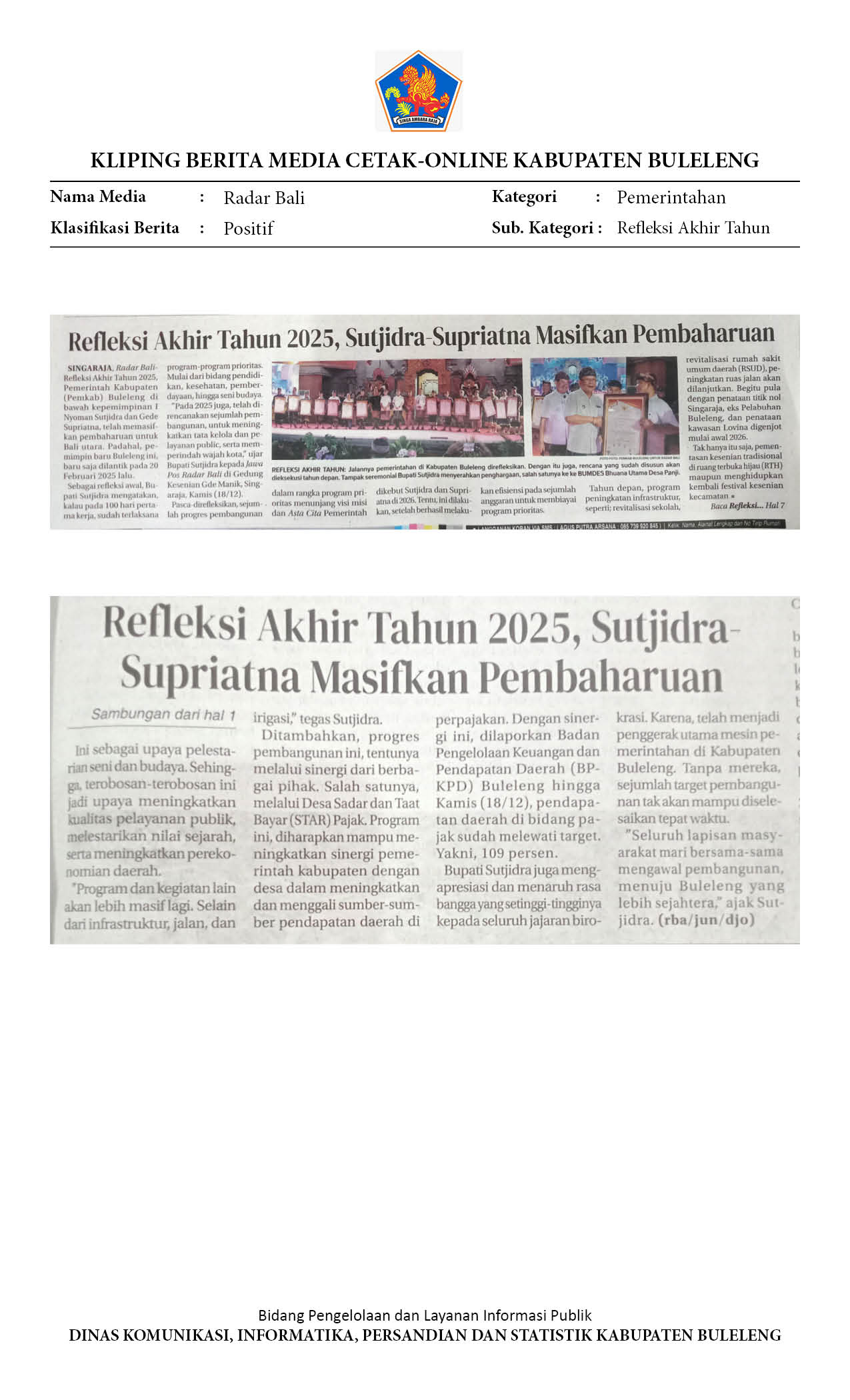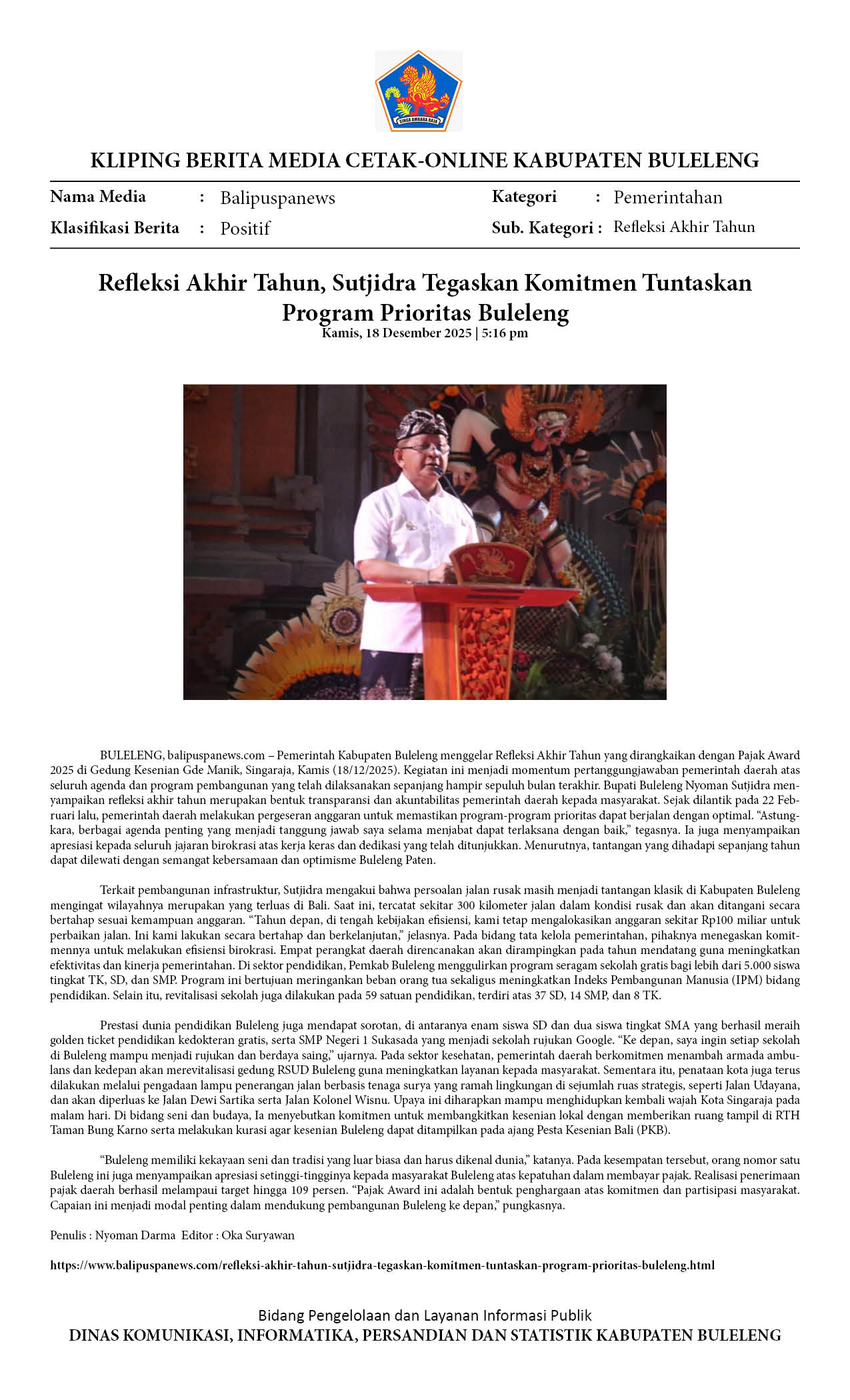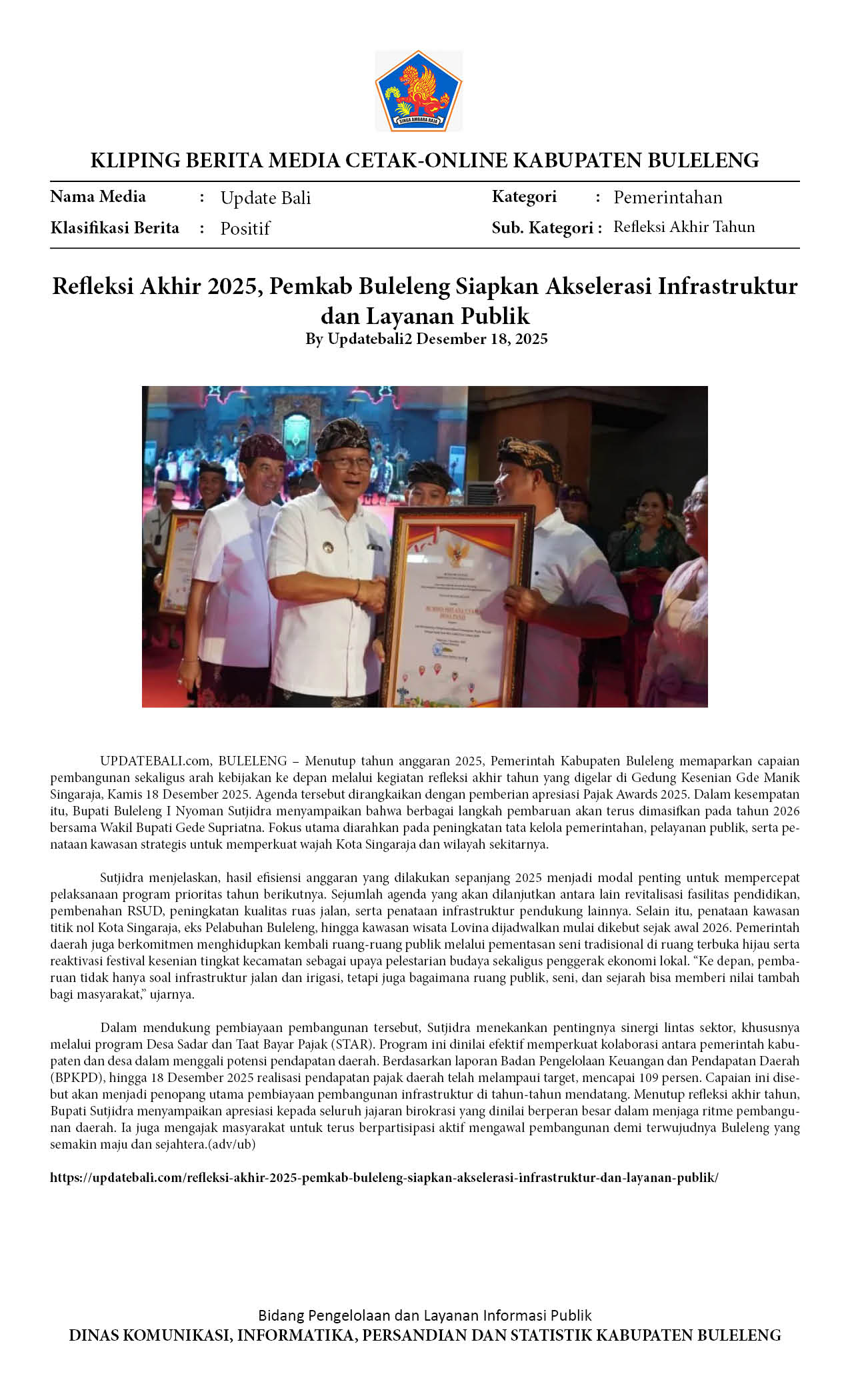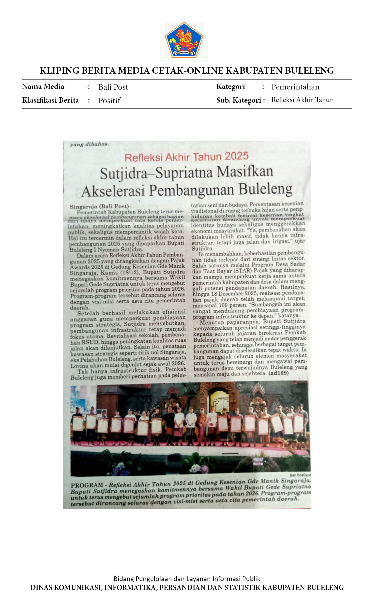REFLEKSI AKHIR 2025, PEMKAB BULELENG SIAPKAN AKSELERASI INFRASTRUKTUR DAN LAYANAN PUBLIK
