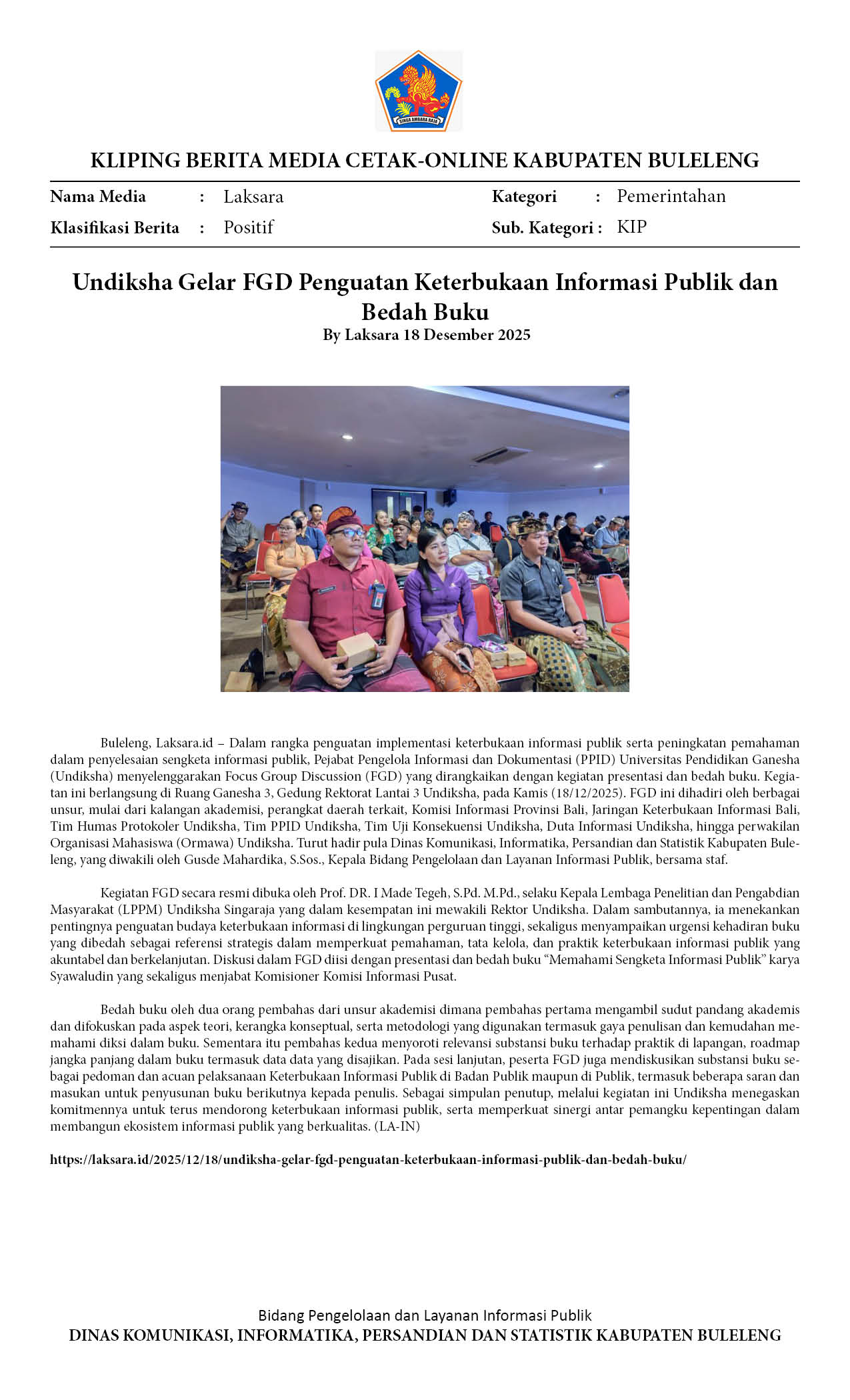 UNDIKSHA GELAR FGD PENGUATAN KETERBUKAAN INFORMASI PUBLIK DAN BEDAH BUKU