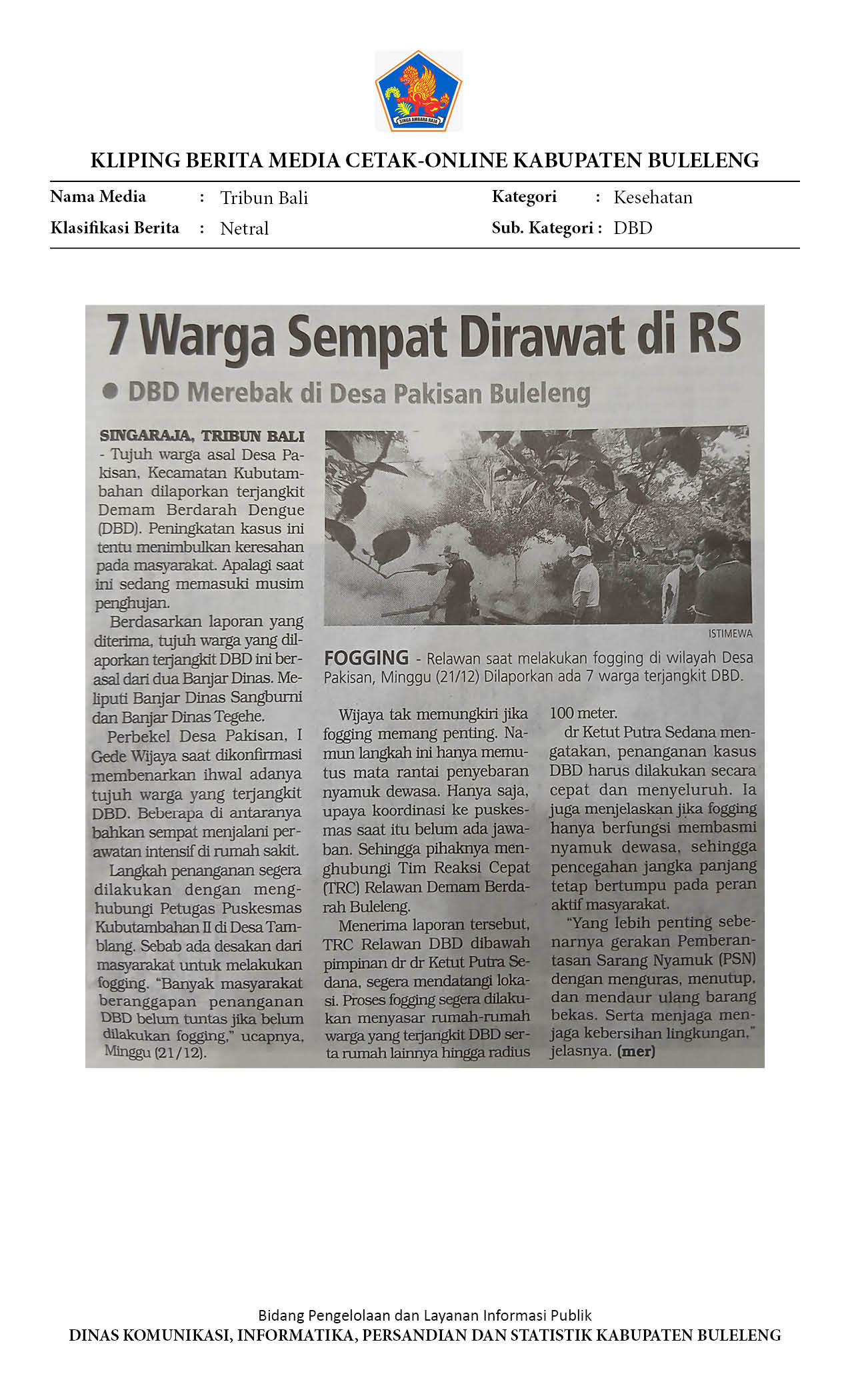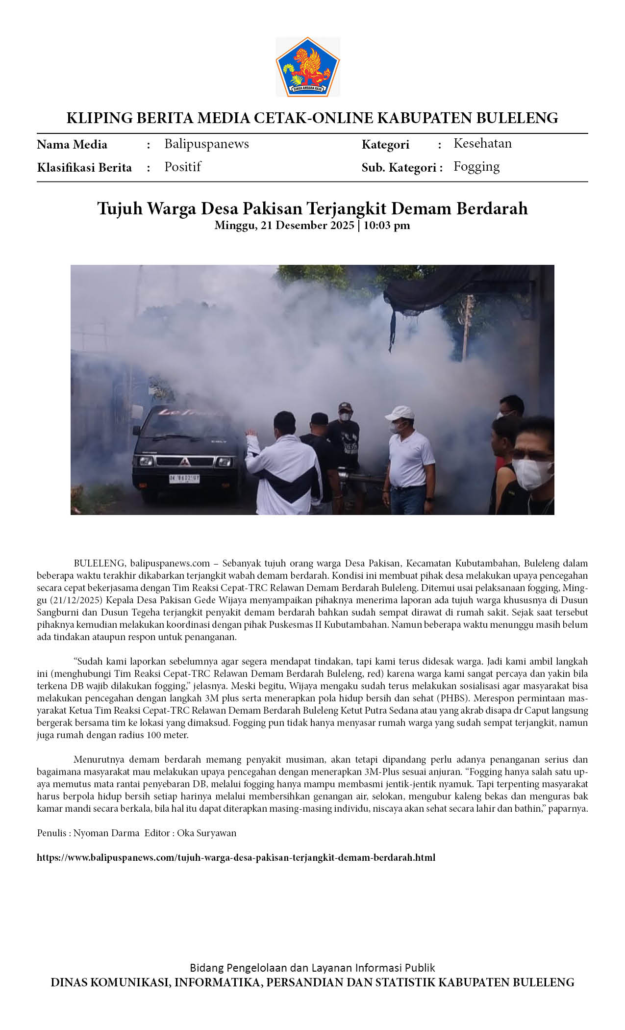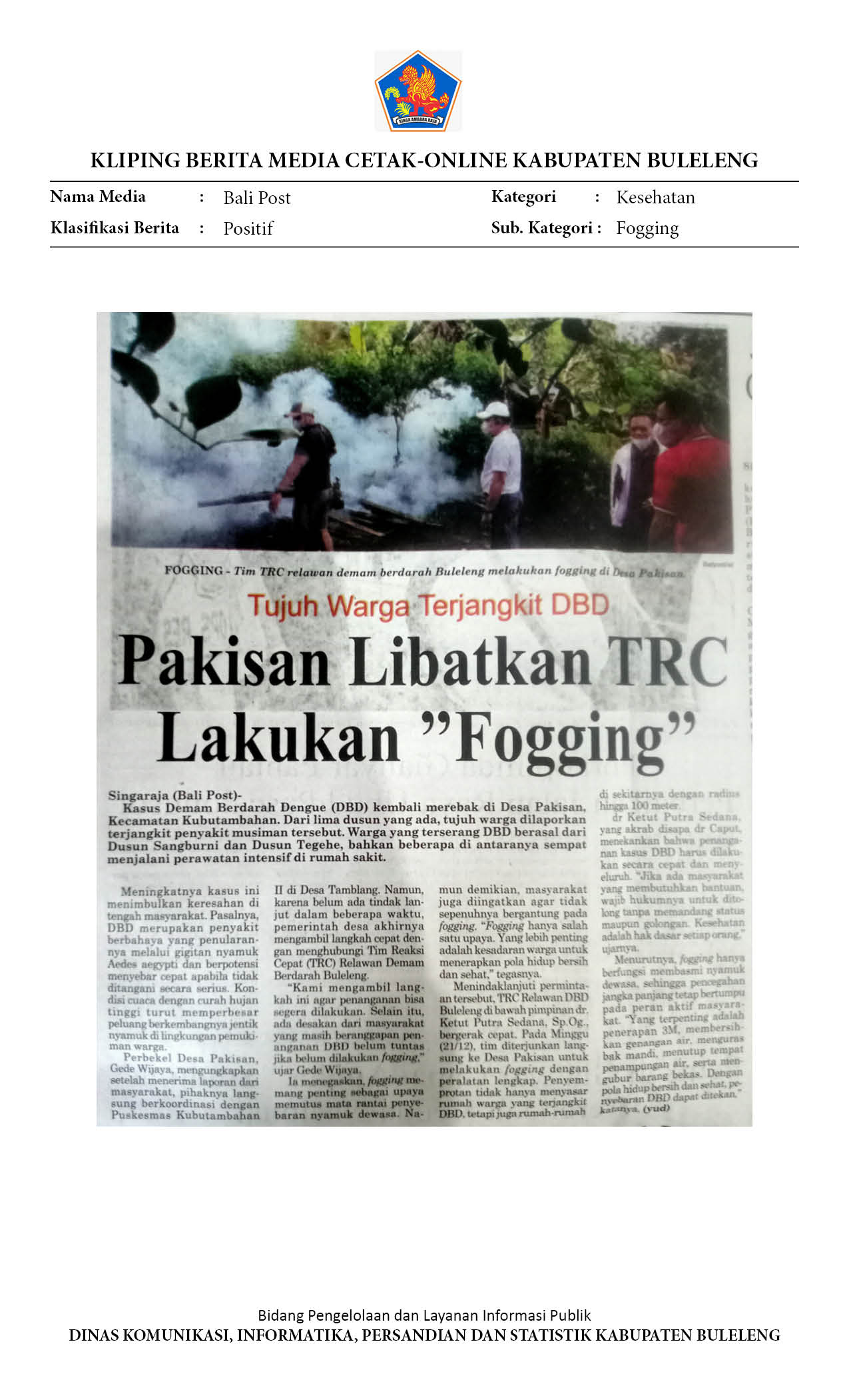 7 WARGA TERJANGKIT DEMAM BERDARAH, TRC DEMAM BERDARAH BULELENG LAKUKAN FOGGING DI DESA PAKISAN