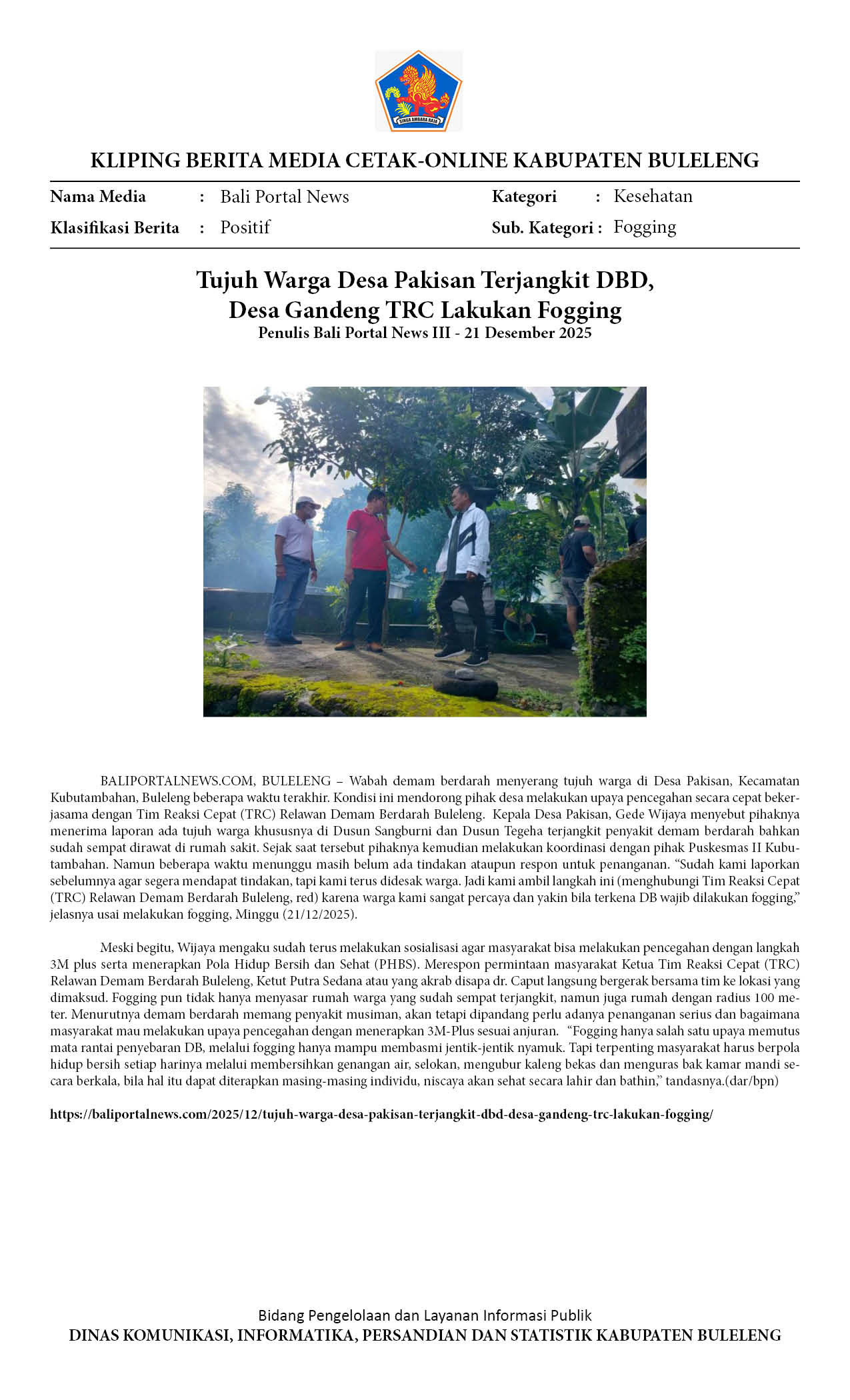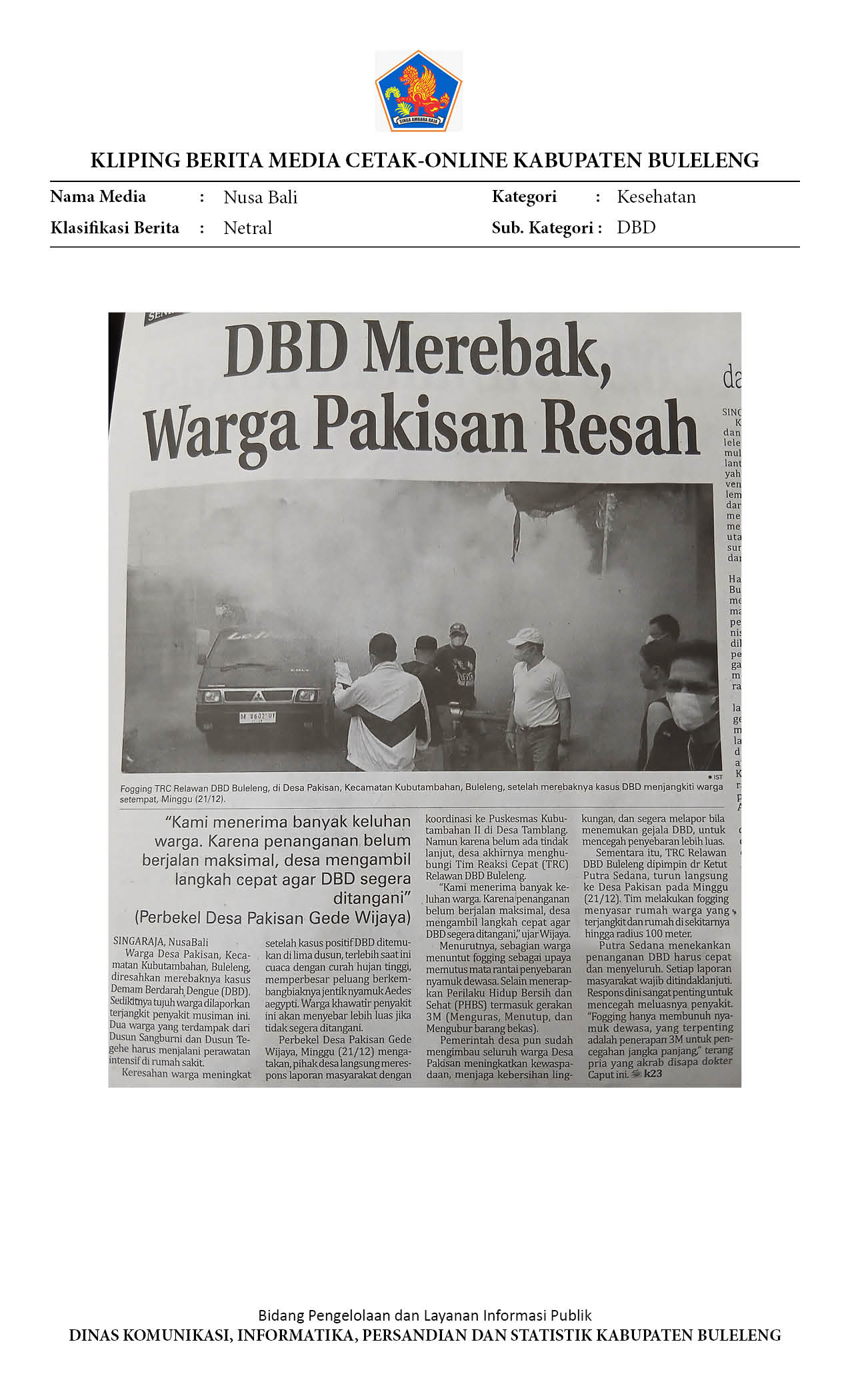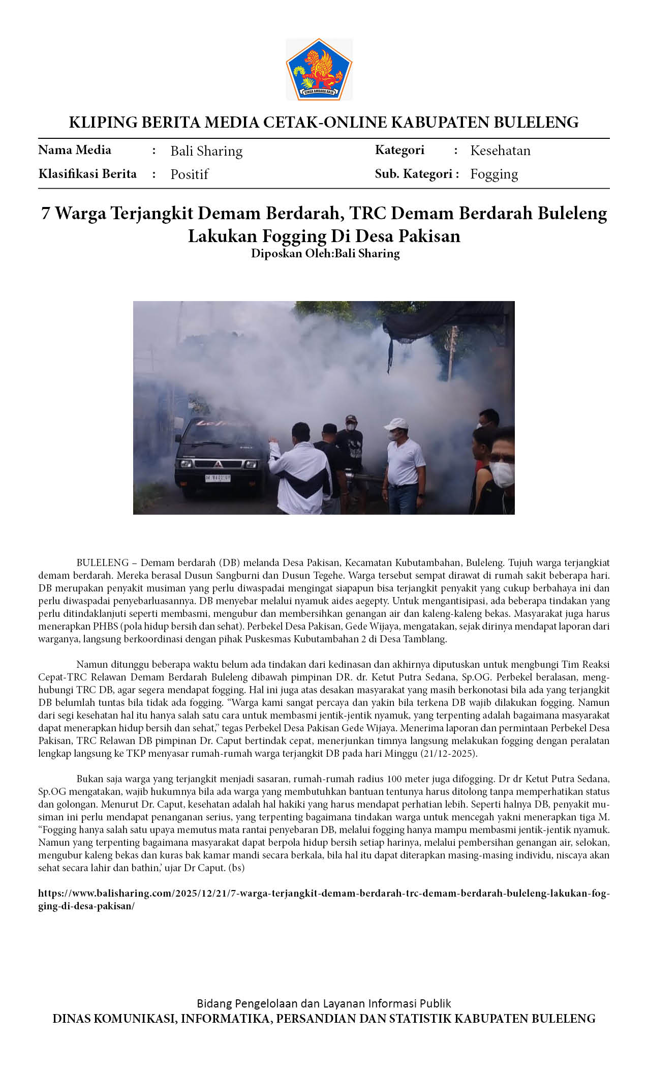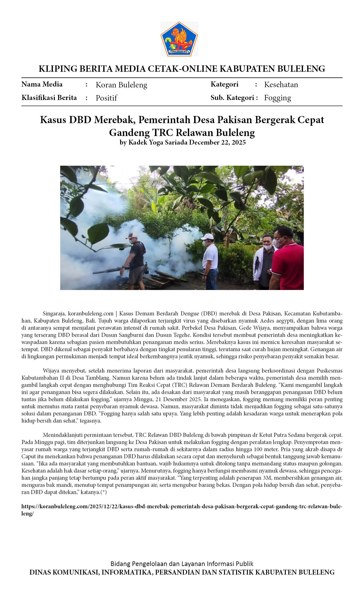 KASUS DBD MEREBAK, PEMERINTAH DESA PAKISAN BERGERAK CEPAT GANDENG TRC RELAWAN BULELENG