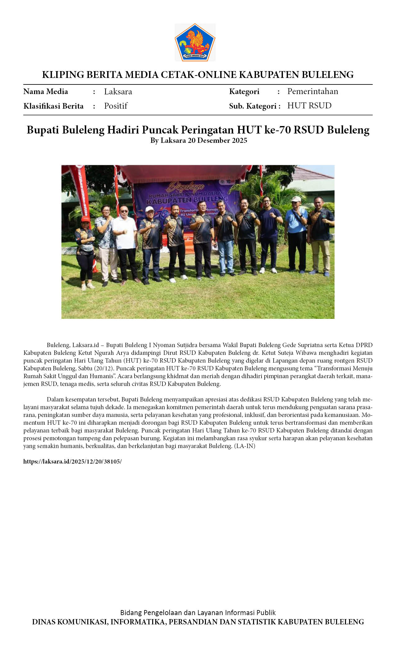 BUPATI BULELENG HADIRI PUNCAK PERINGATAN HUT KE-70 RSUD BULELENG