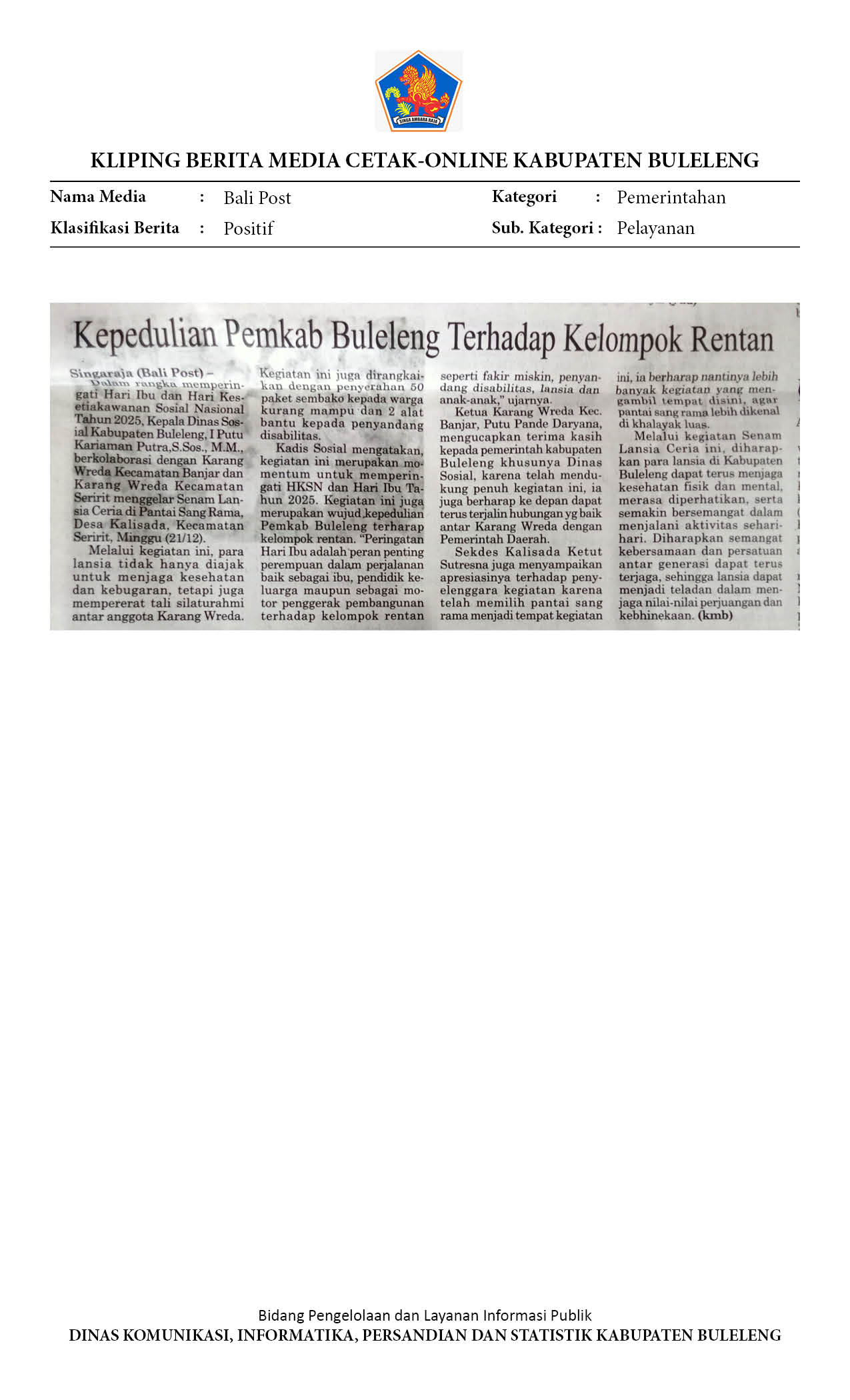 KEPEDULIAN PEMKAB BULELENG TERHADAP KELOMPOK RENTAN