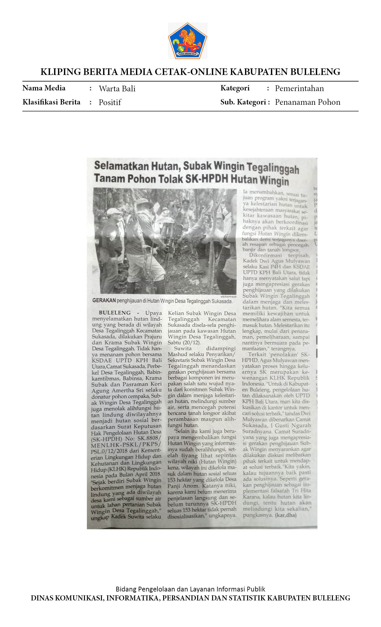 SELAMATKAN HUTAN, SUBAK WINGIN TEGALLINGGAH TANAM POHON TOLAK SK-HPDH HUTAN WINGIN