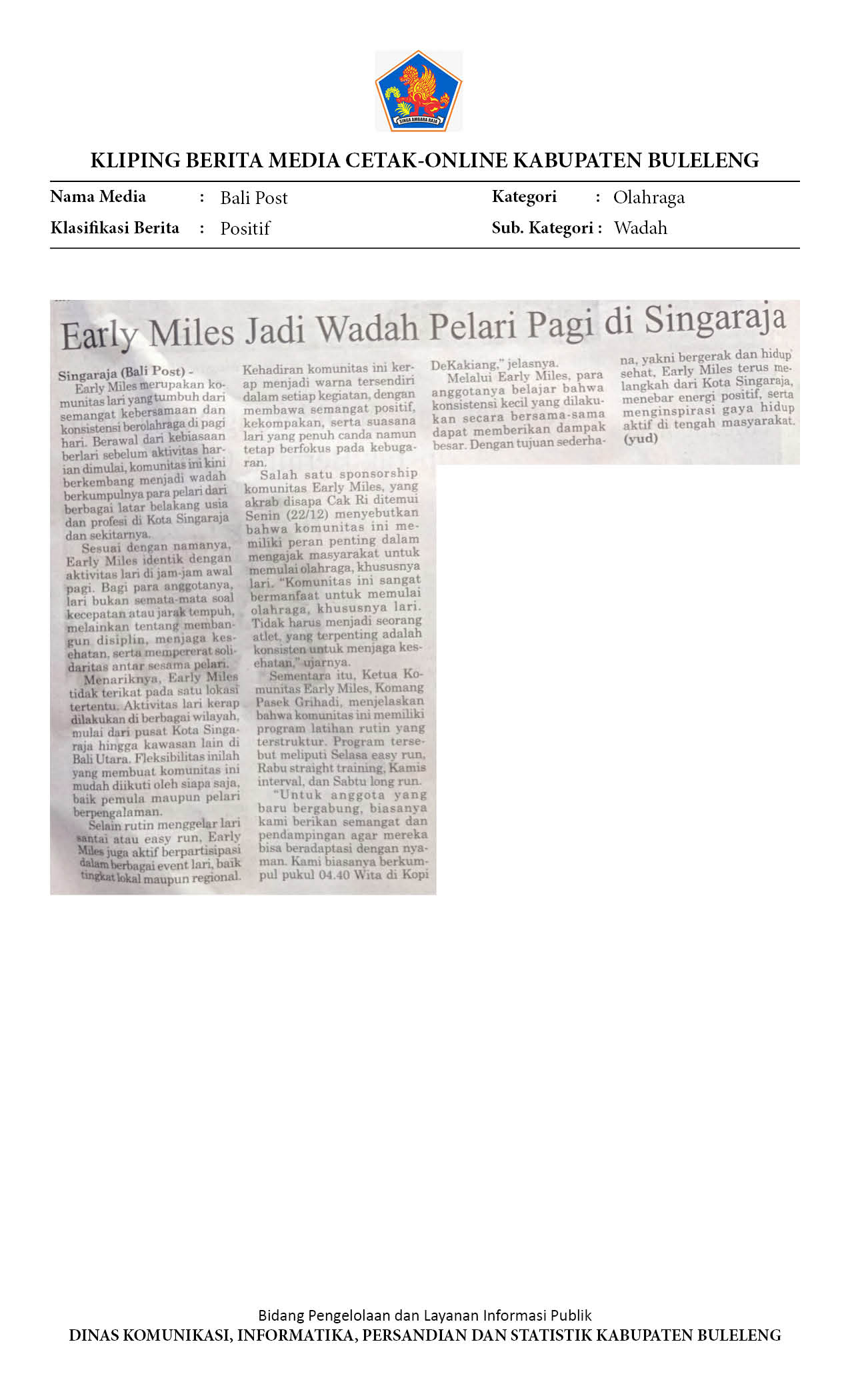 EARLY MILES JADI WADAH PELARI PAGI DI SINGARAJA