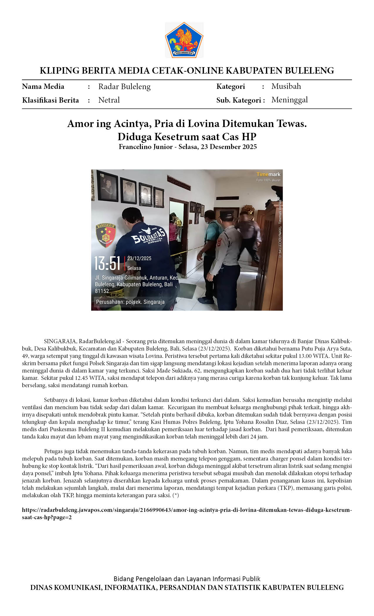 AMOR ING ACINTYA, PRIA DI LOVINA DITEMUKAN TEWAS. DIDUGA KESETRUM SAAT CAS HP