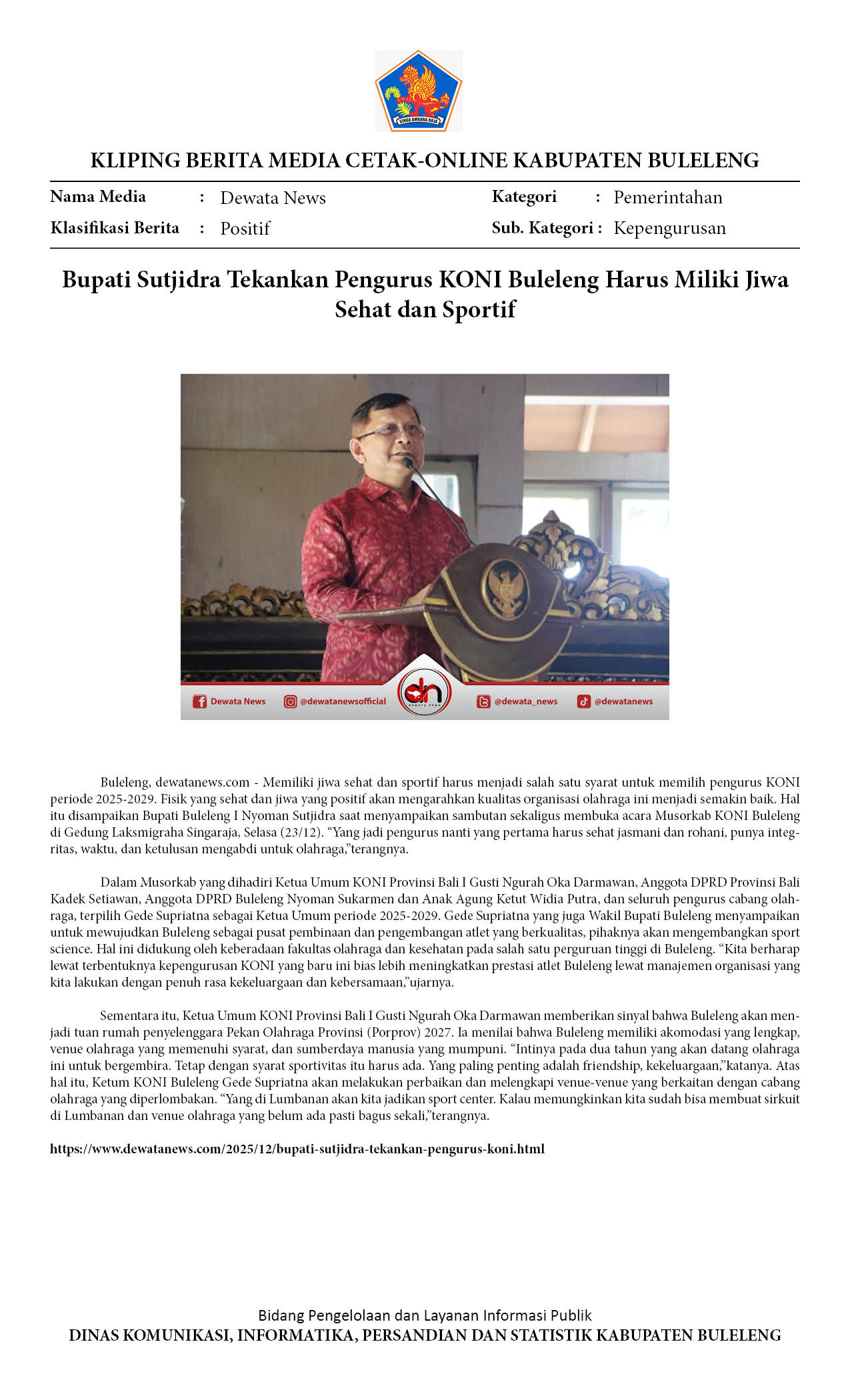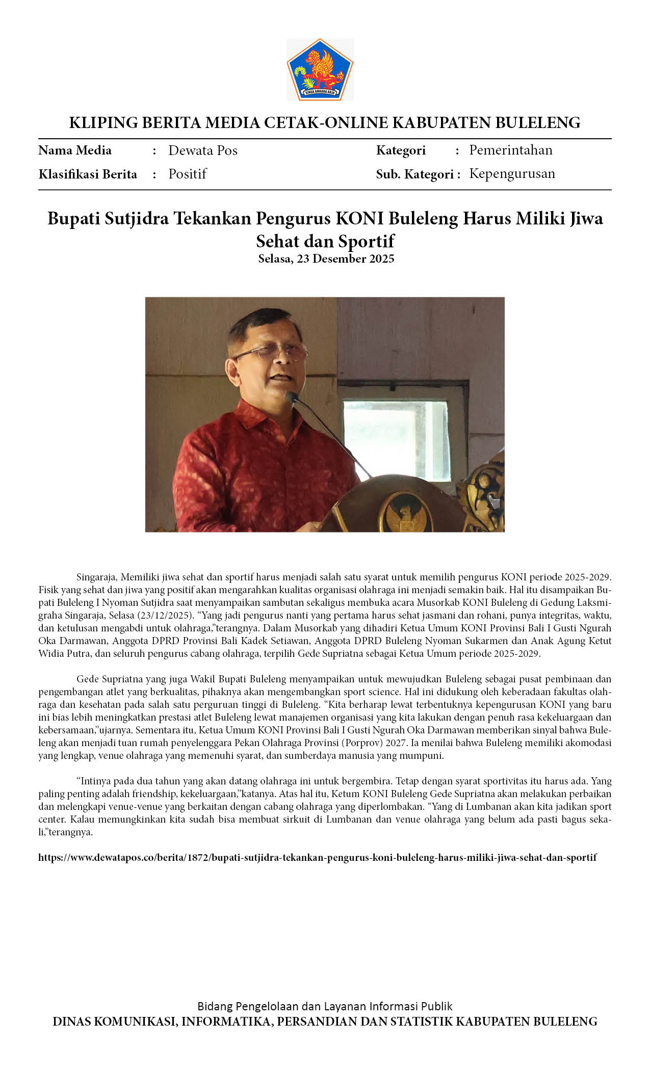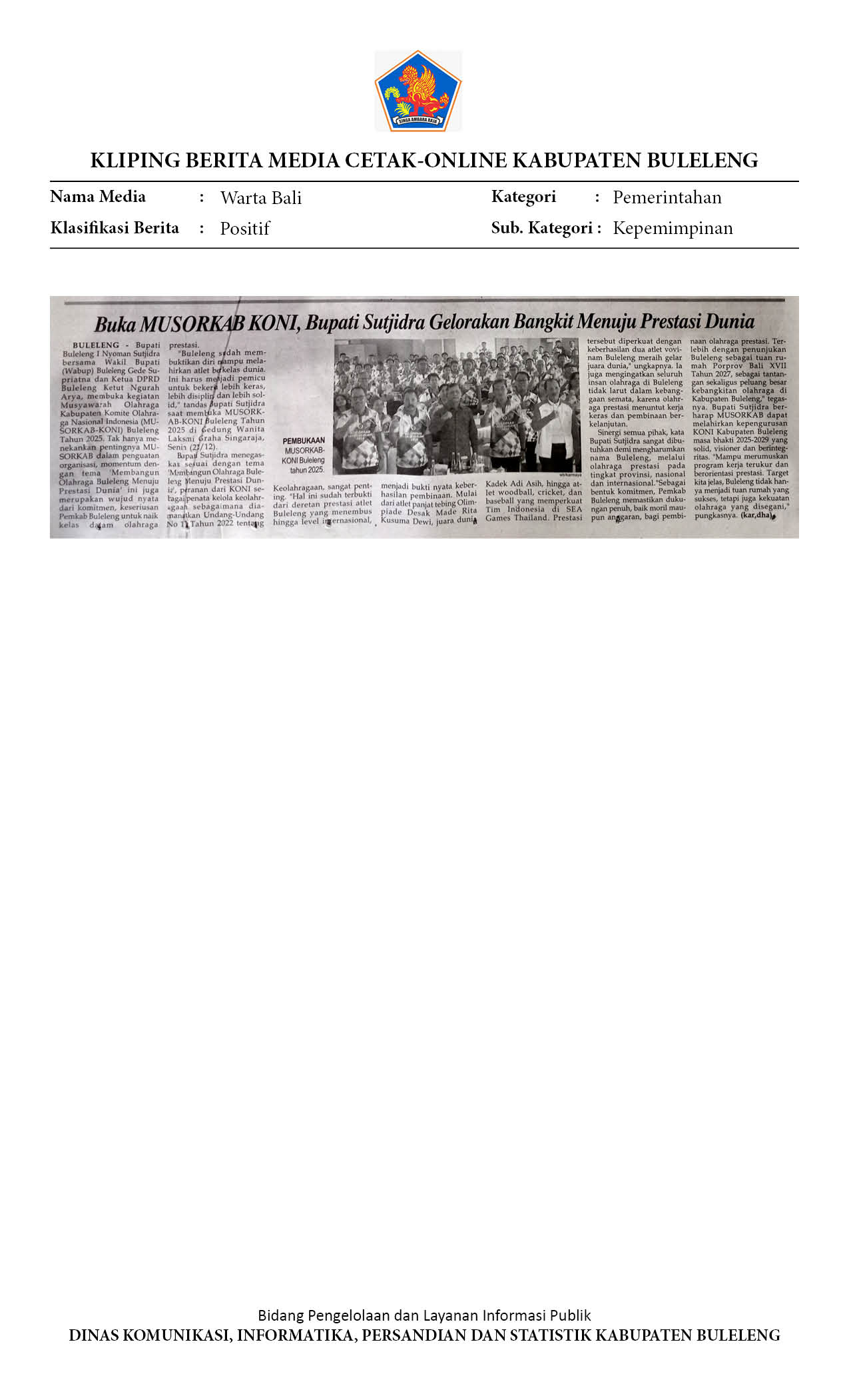 GEDE SUPRIATNA TERPILIH SEBAGAI KETUA UMUM KONI BULELENG PERIODE 2025–2029 SECARA AKLAMASI