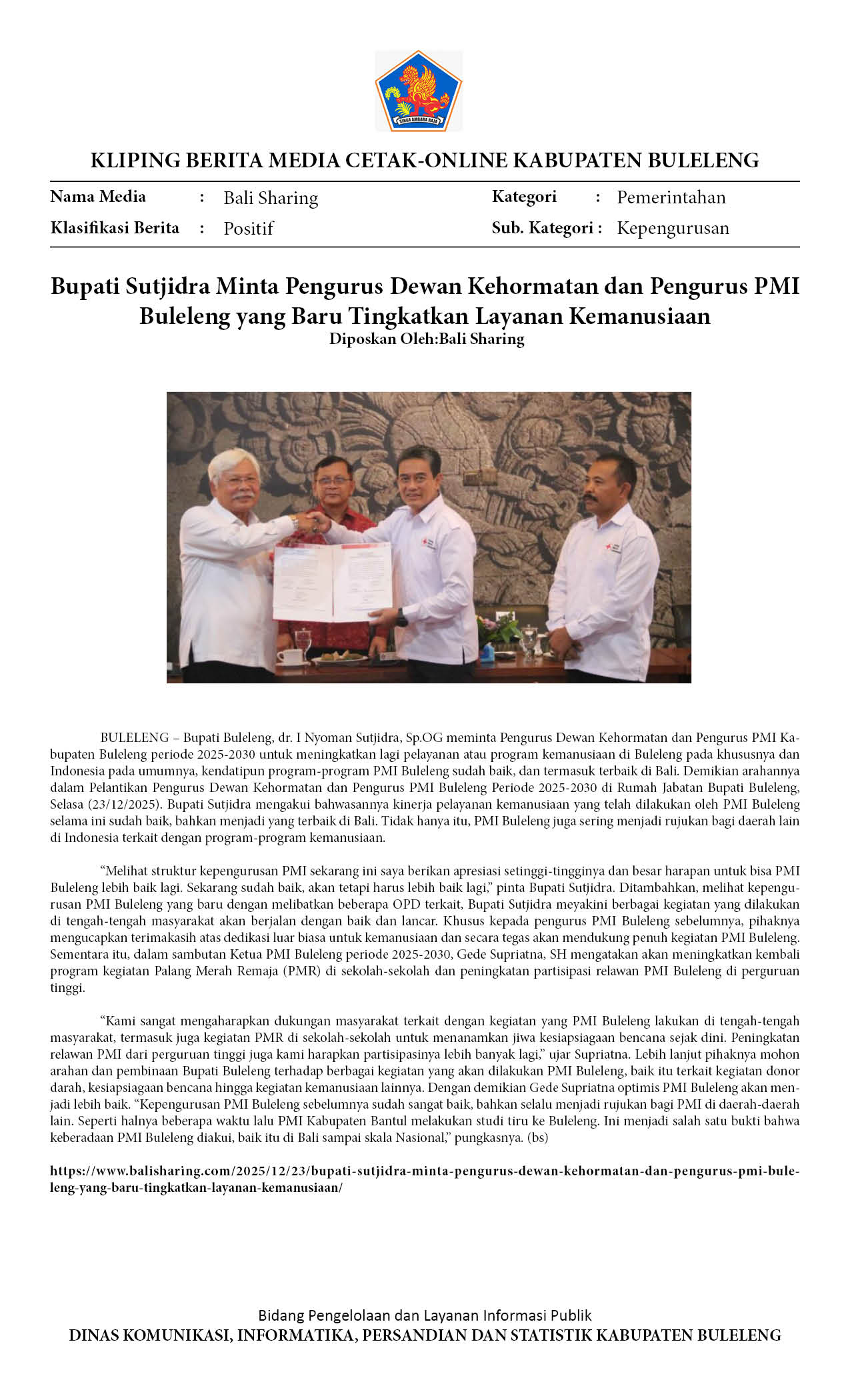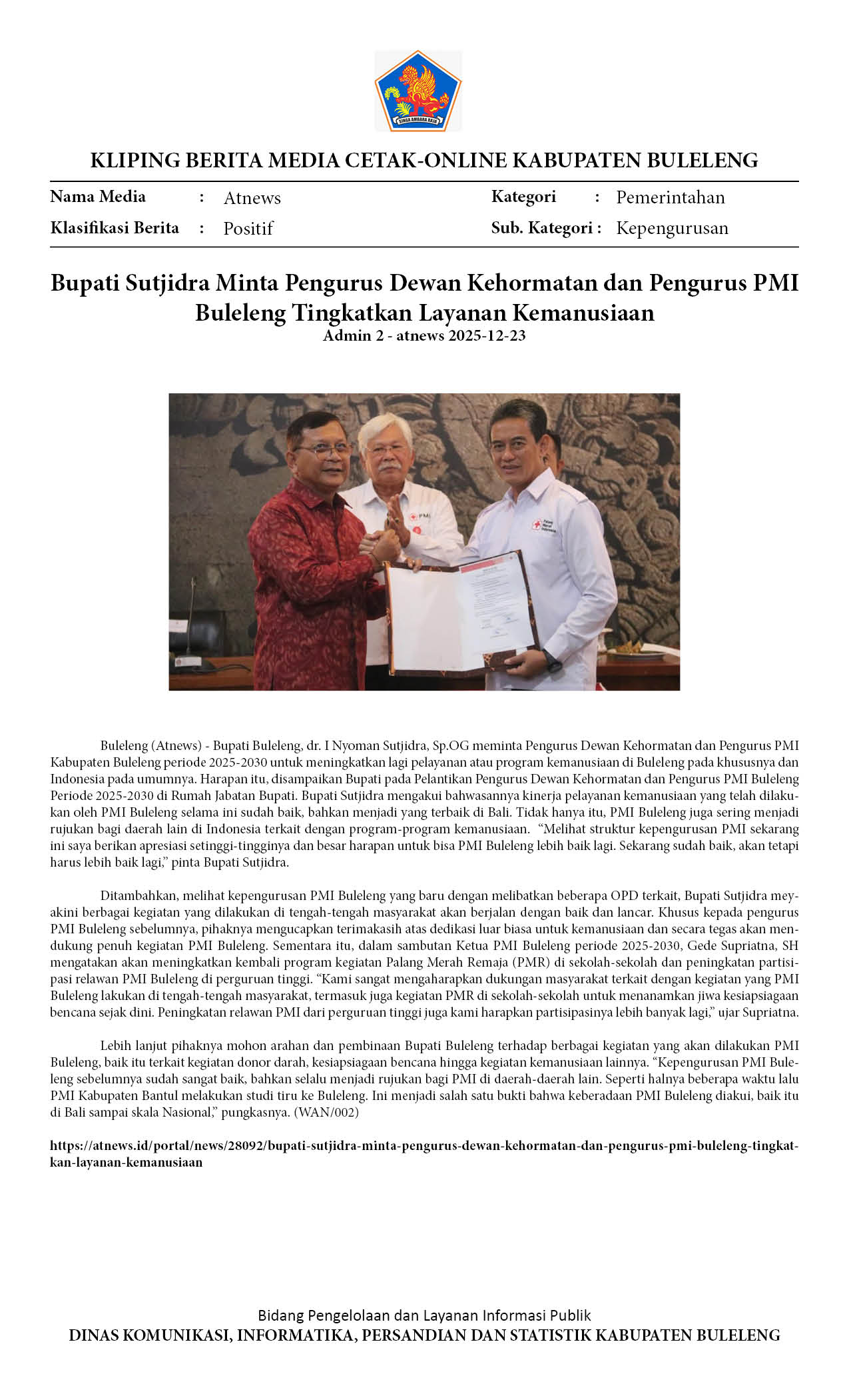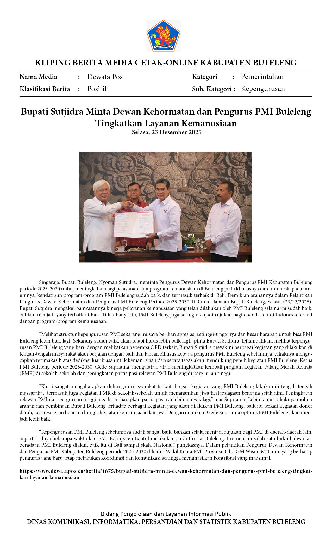 BUPATI SUTJIDRA MINTA DEWAN KEHORMATAN DAN PENGURUS PMI BULELENG TINGKATKAN LAYANAN KEMANUSIAAN