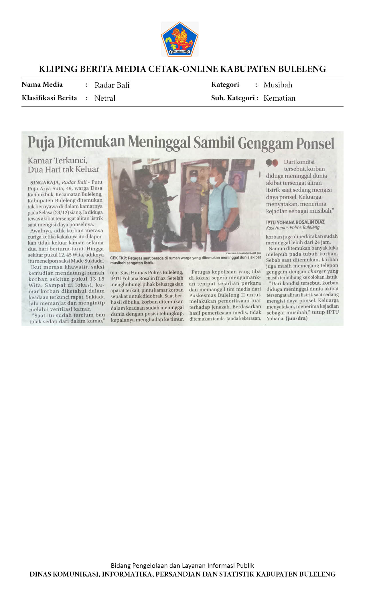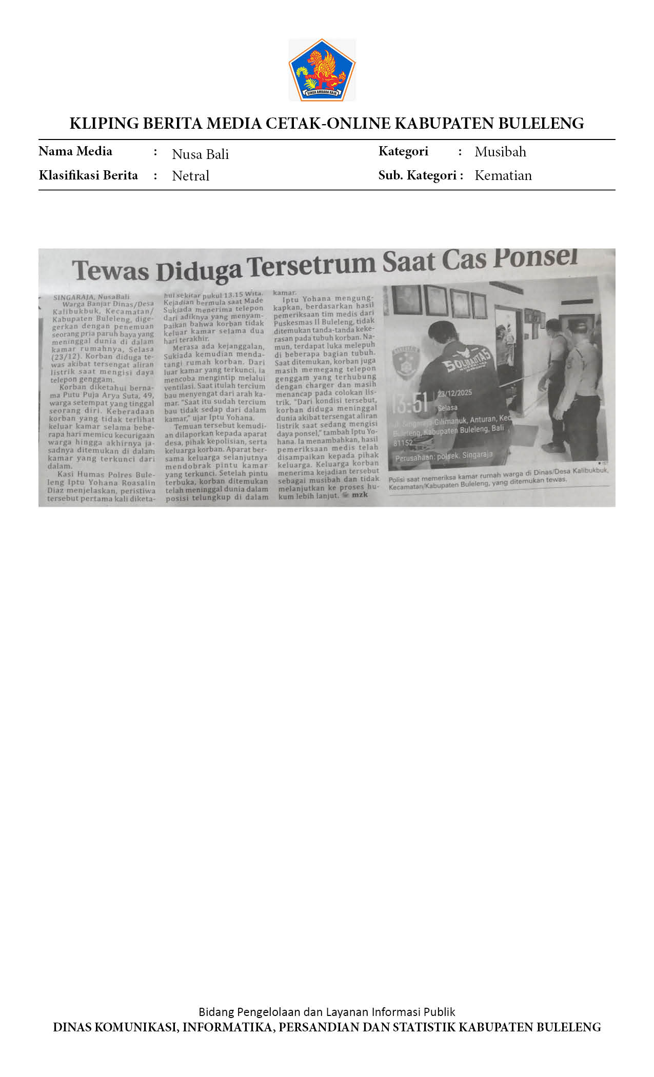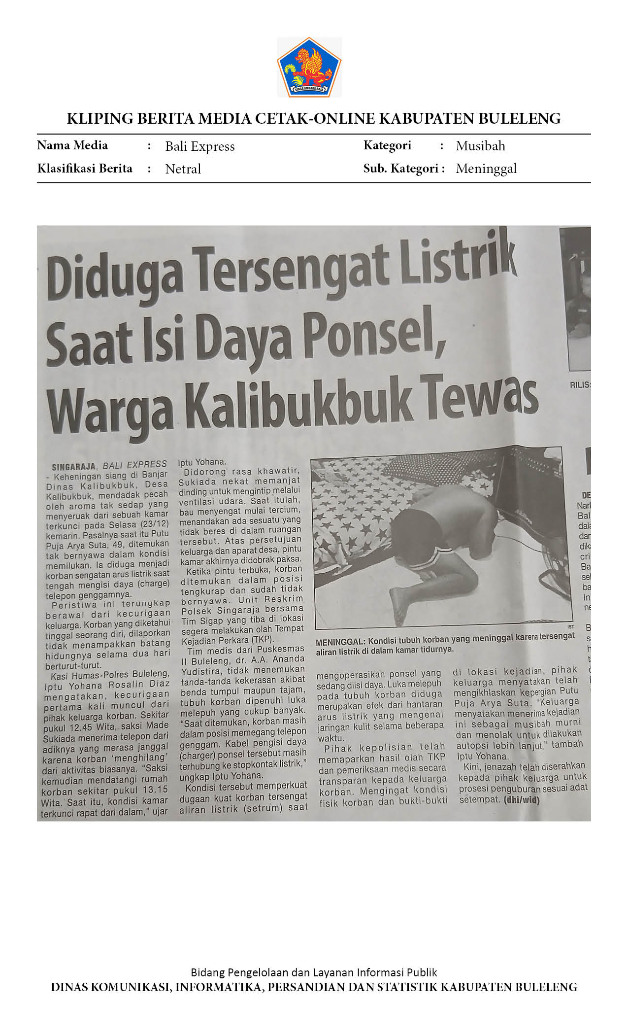 DIDUGA TERSENGAT LISTRIK SAAT ISI DAYA PONSEL, WARGA KALIBUKBUK TEWAS