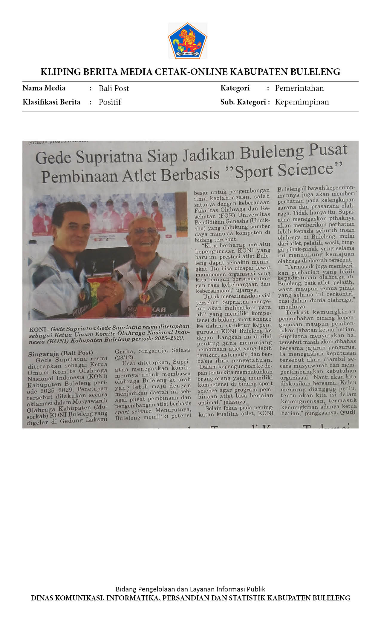 GEDE SUPRIATNA SIAP JADIKAN BULELENG PUSAT PEMBINAAN ATLET BERBASIS SPORT SCIENCE