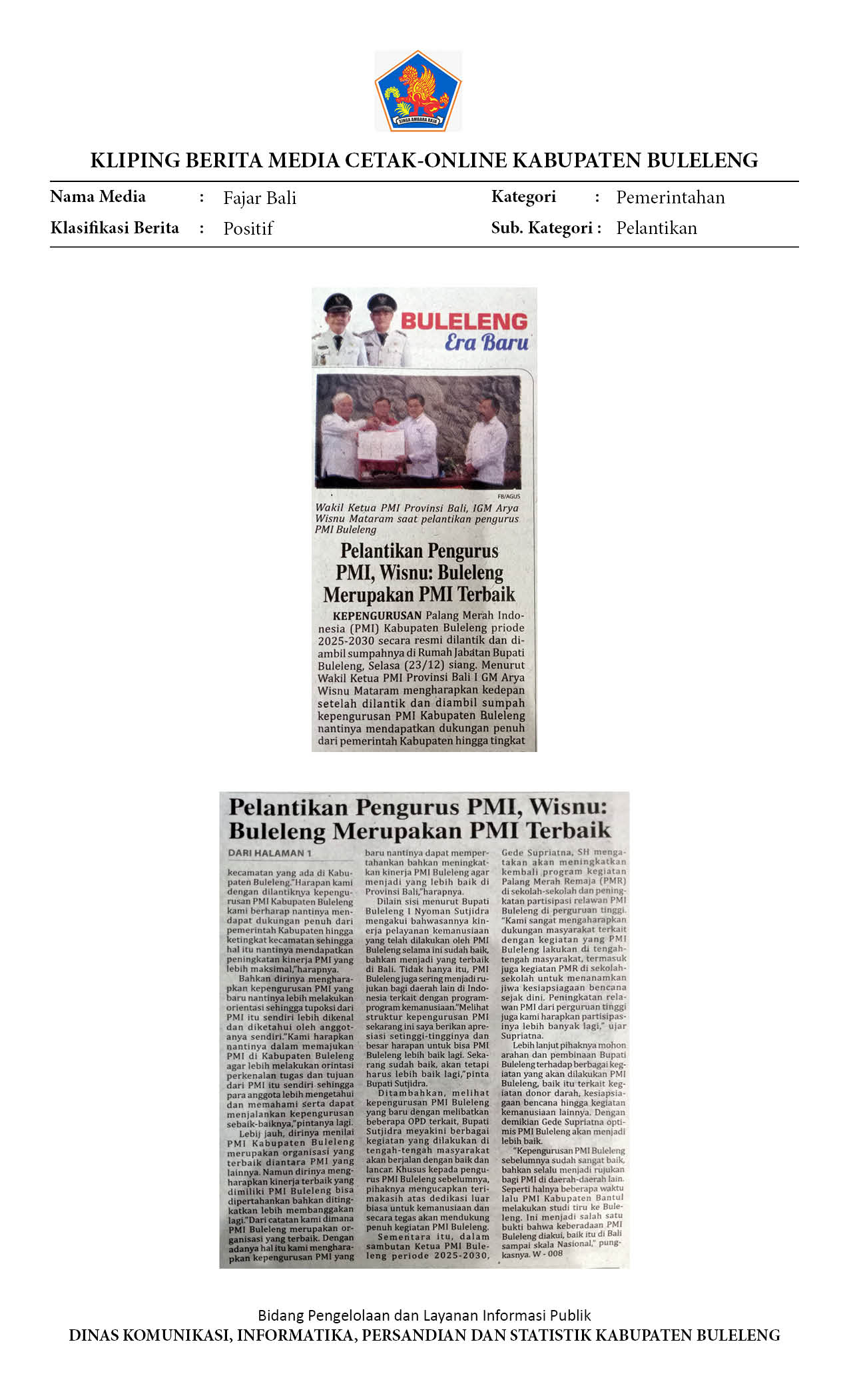 PELANTIKAN PENGURUS PMI, WISNU : BULELENG MERUPAKAN PMI TERBAIK