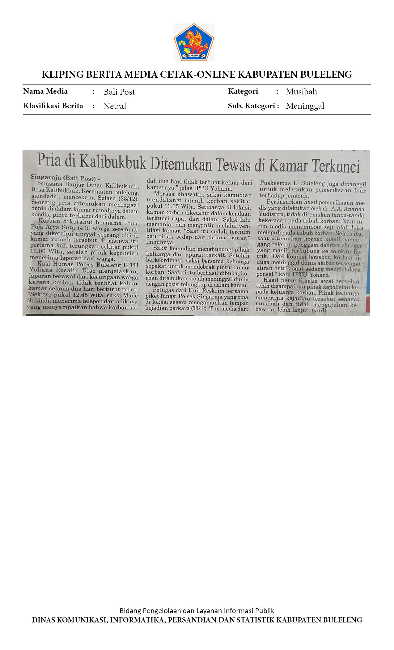 PRIA DI KALIBUKBUK DITEMUKAN TEWAS SI KAMAR TERKUNCI