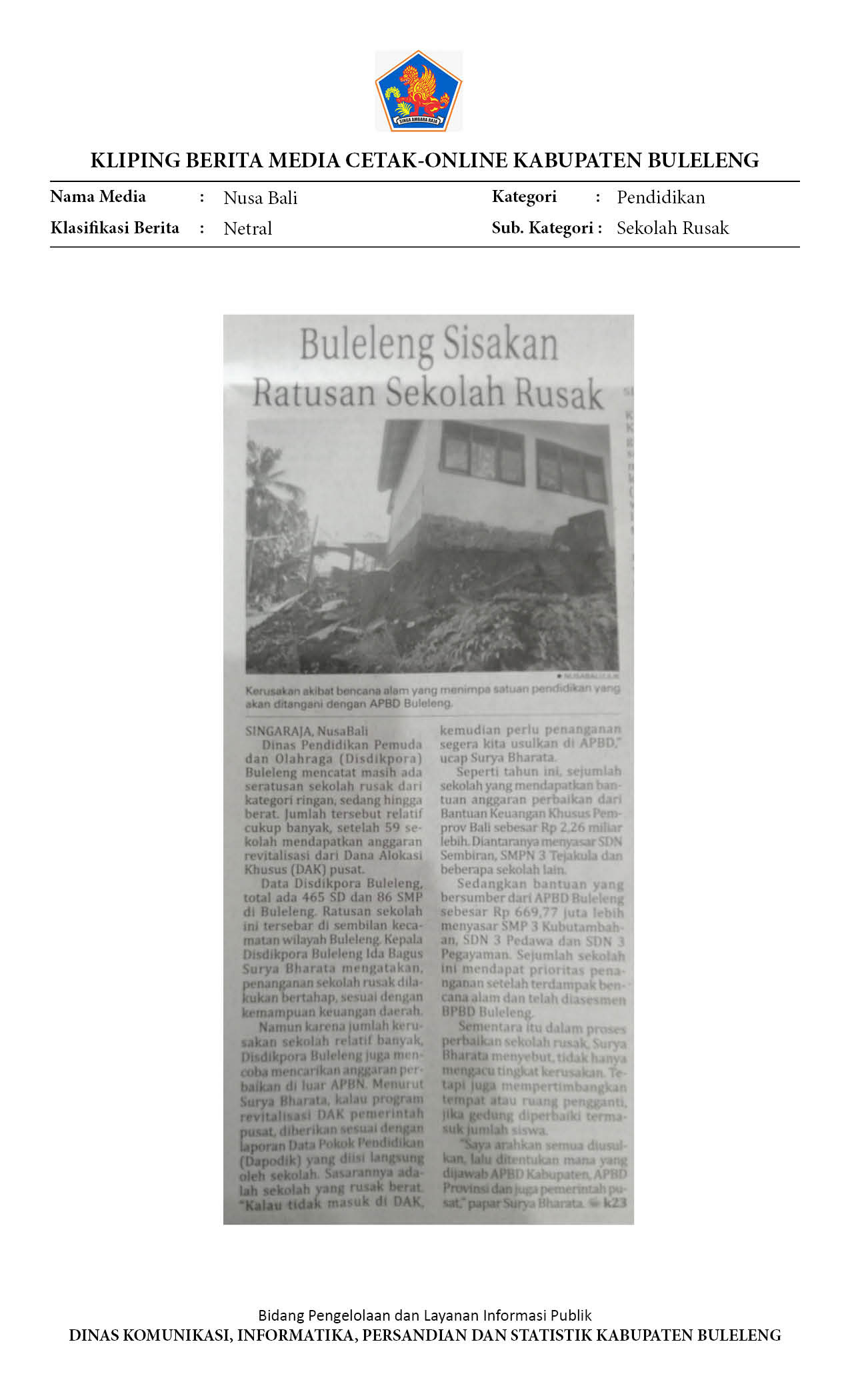 BULELENG SISAKAN RATUSAN SEKOLAH RUSAK