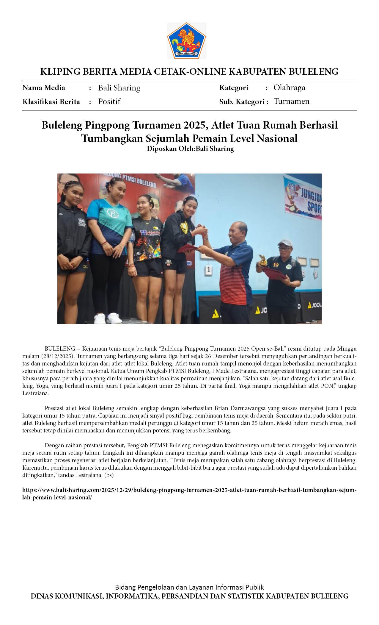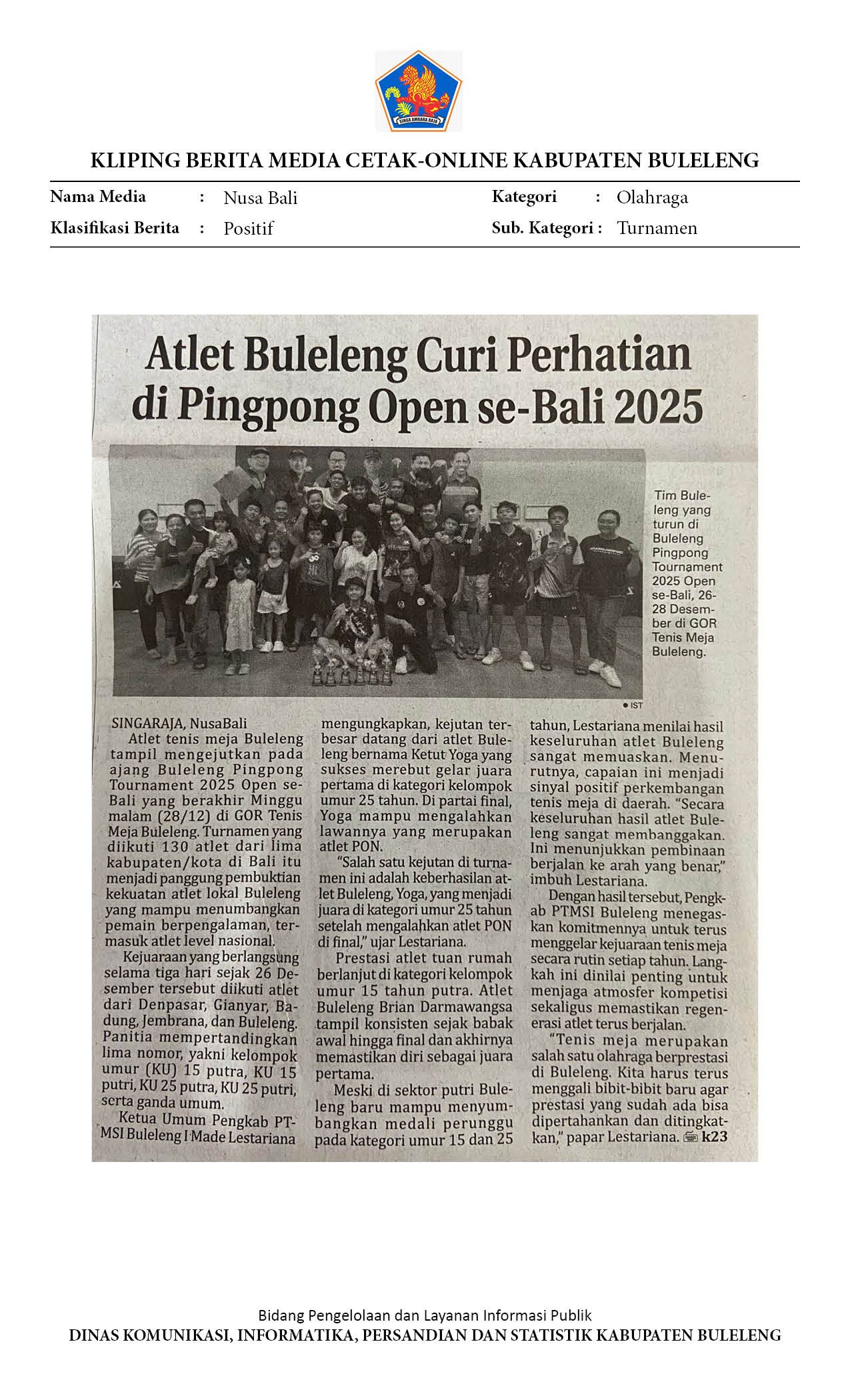 ATLET BULELENG CURI PERHATIAN DI PINGPONG OPEN SE-BALI 2025
