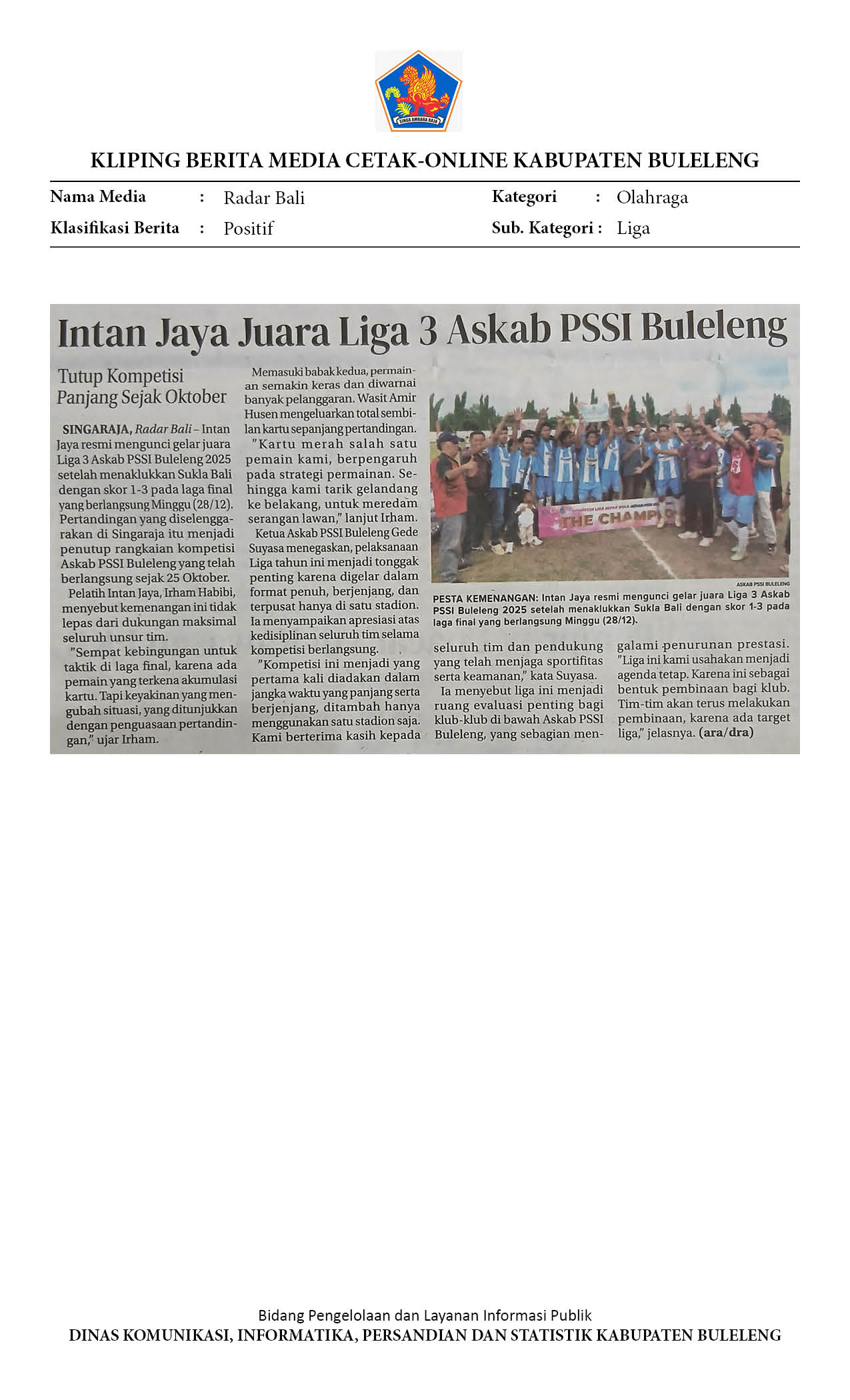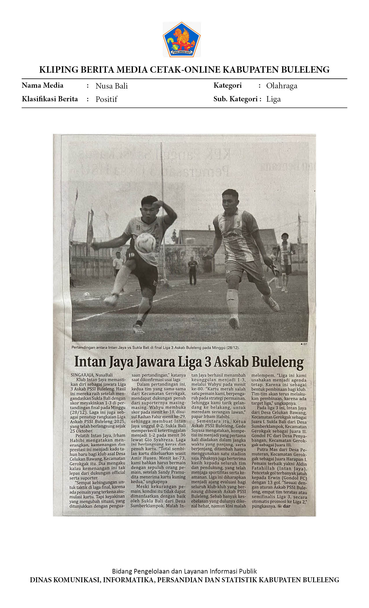 INTAN JAYA JUARA LIGA 3 ASKAB PSSI BULELENG