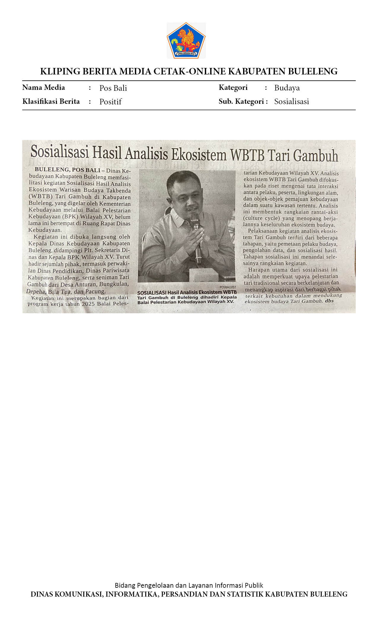 SOSIALISASI HASIL ANALISIS EKOSISTEM WBTB TARI GAMBUH